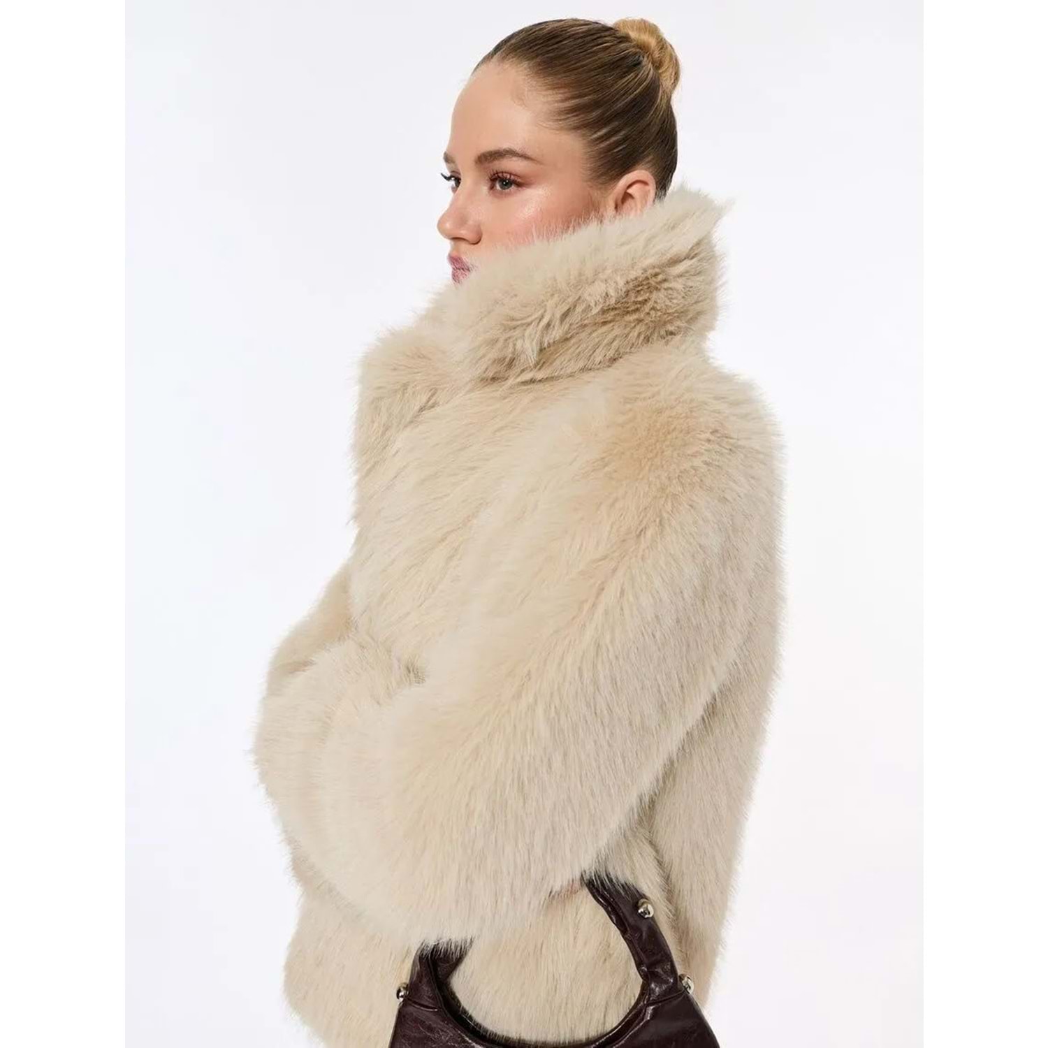 Kadın Giyim Suni Kürk Kaban Kruvaze Uzun Kollu - KOTON - 6WAK00009EW - BEJ - 34