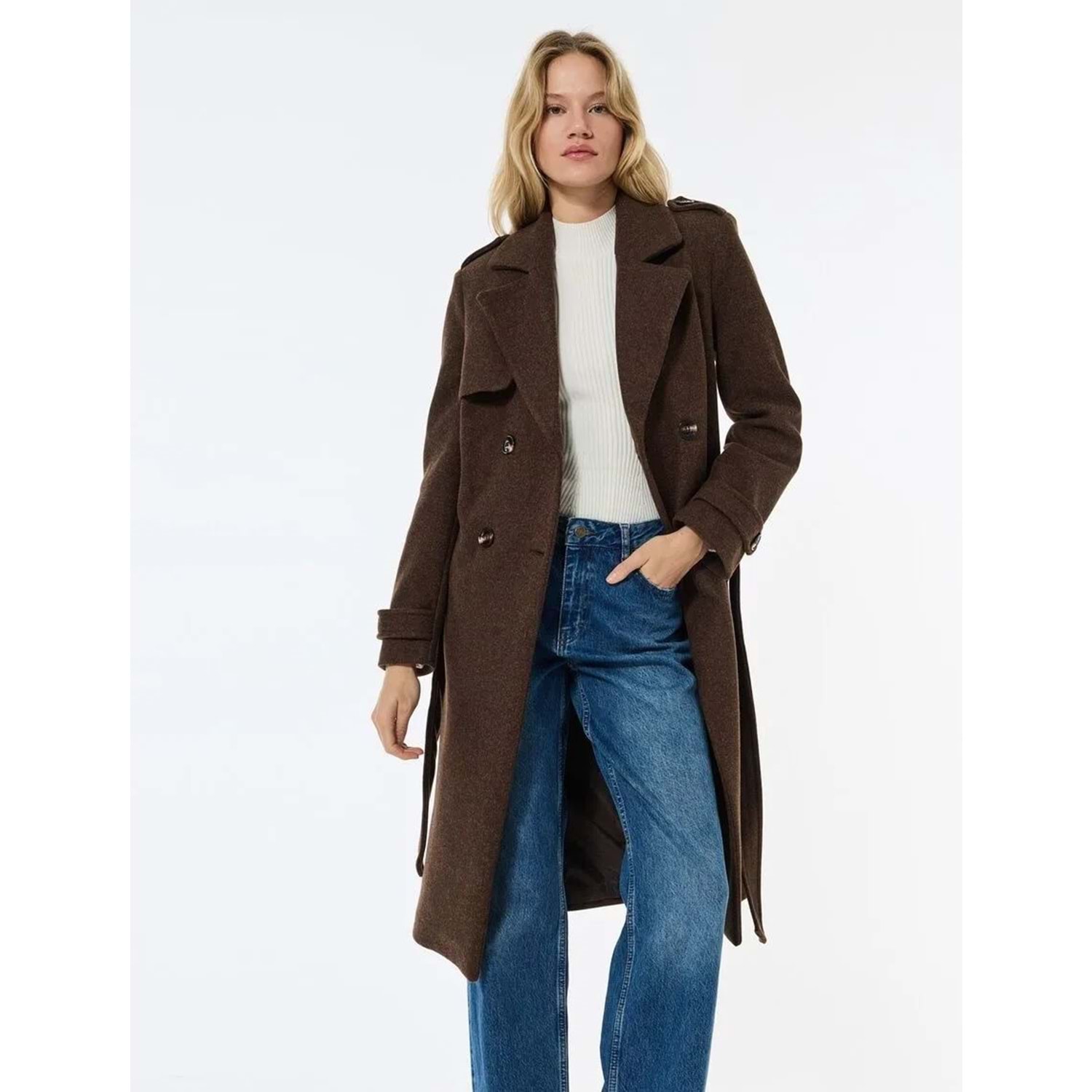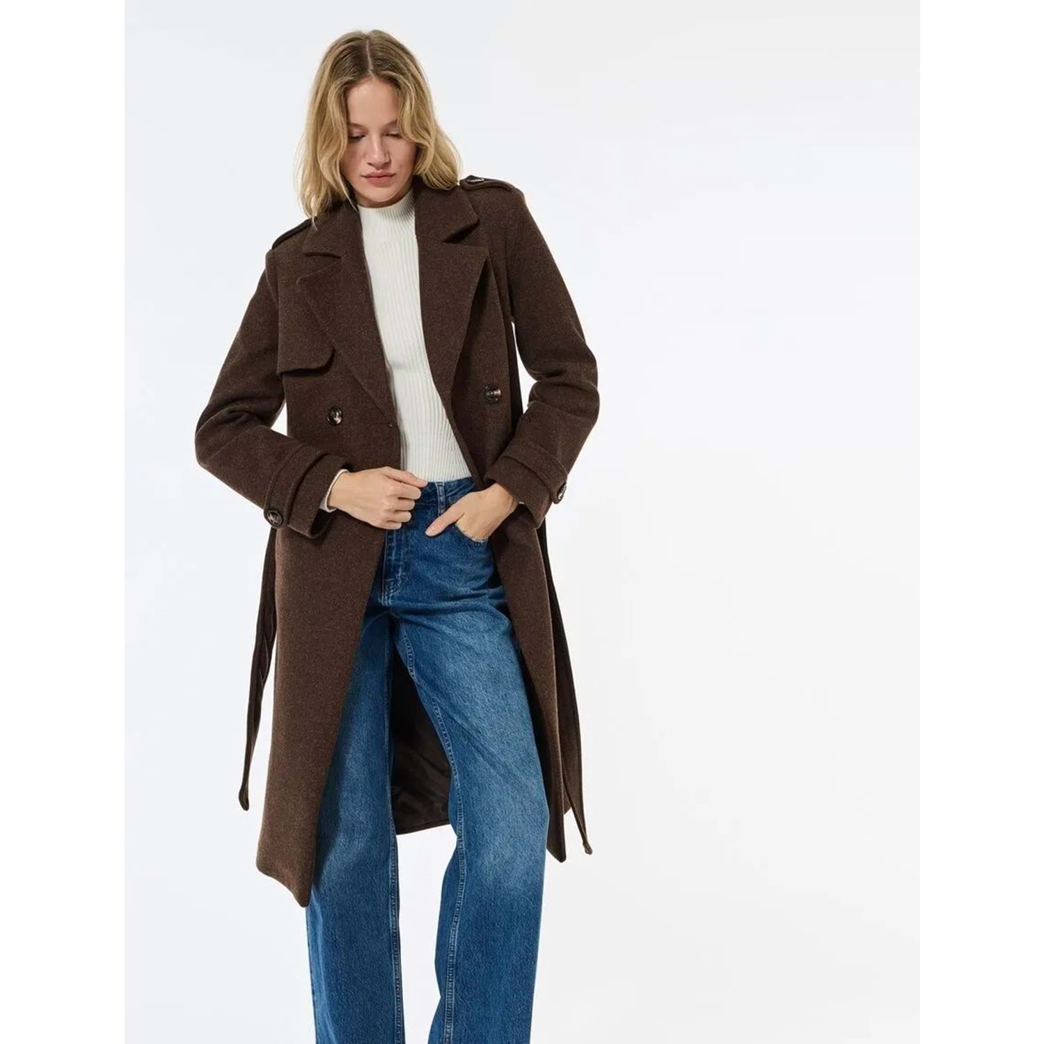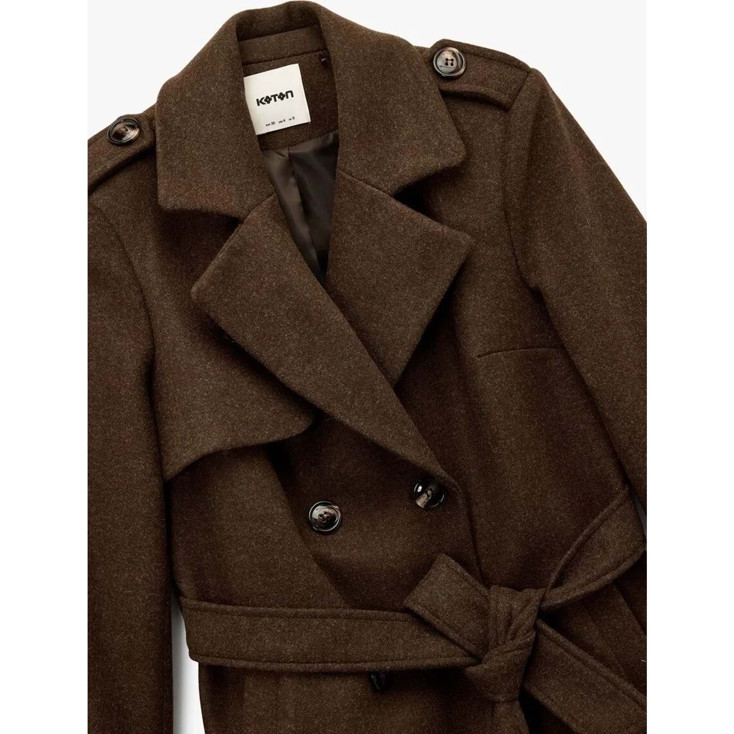 Kadın Giyim Trenç Kaban Kaşe Cepli Kemerli Kruvaze Uzun Kollu - KOTON - 6WAK00237EW - KAHVERENGİ - 34