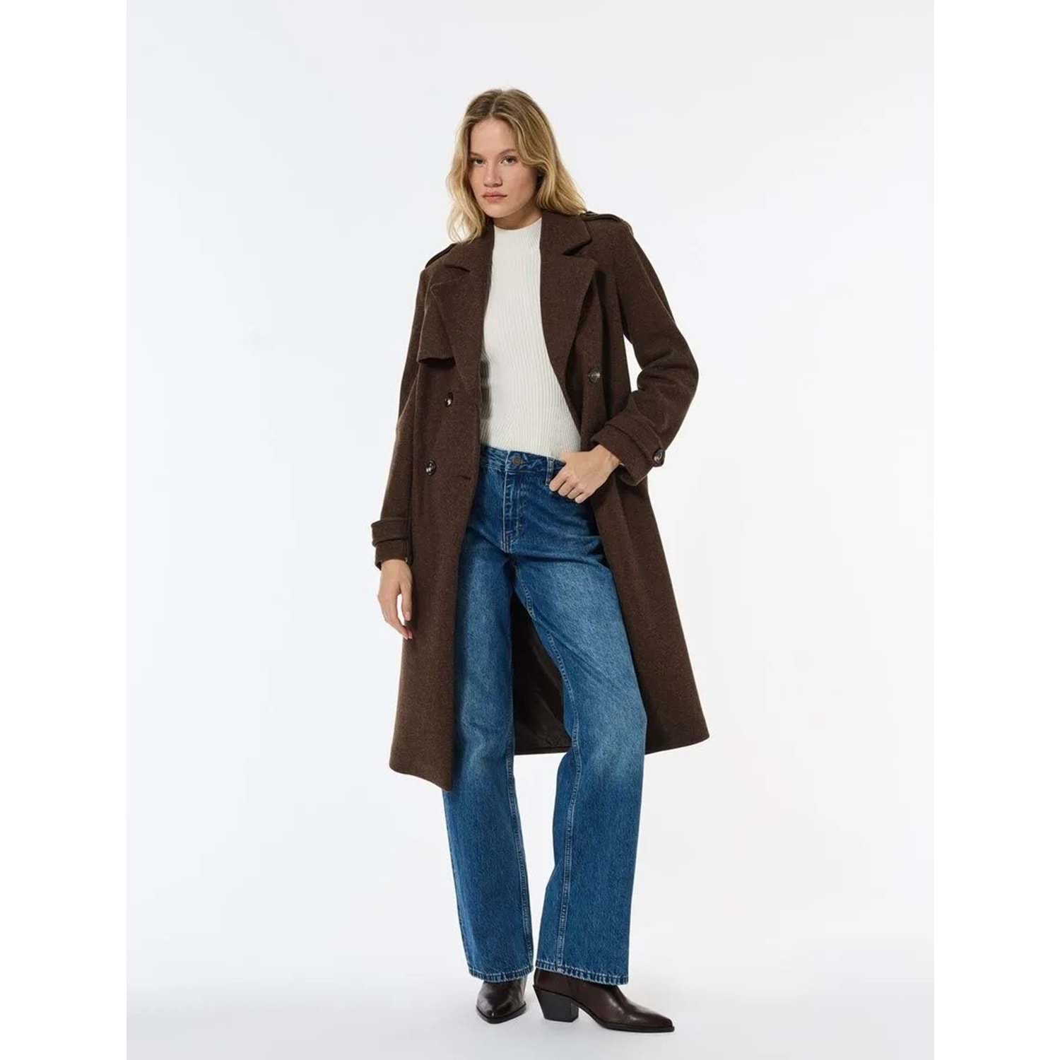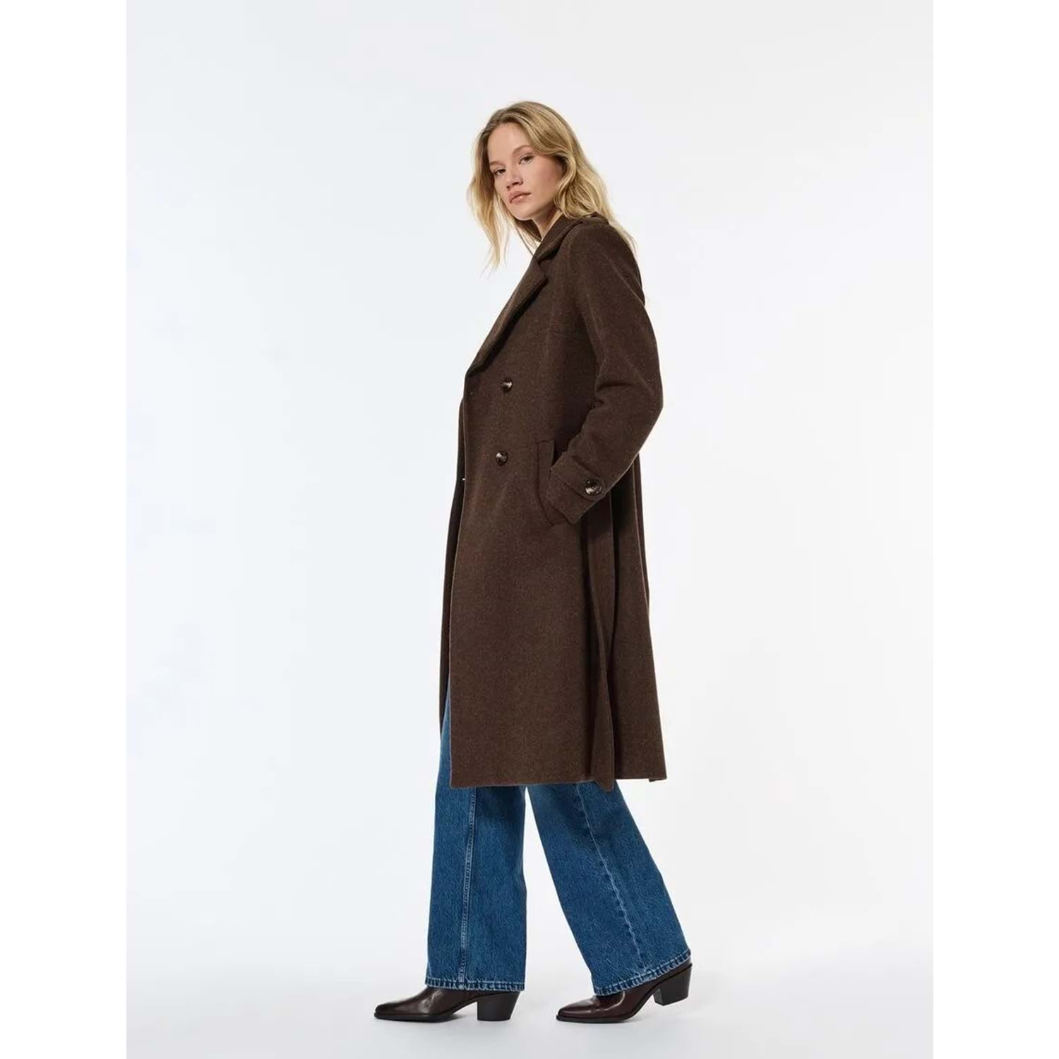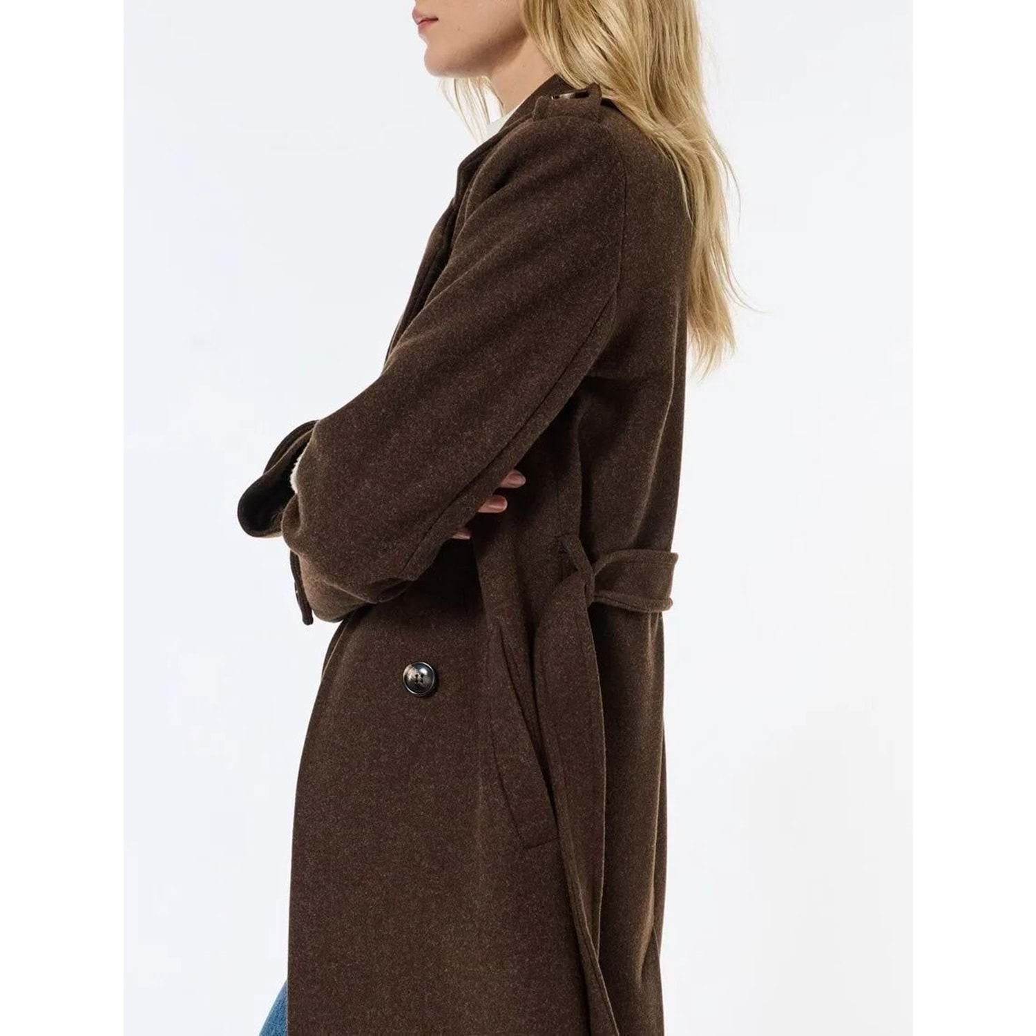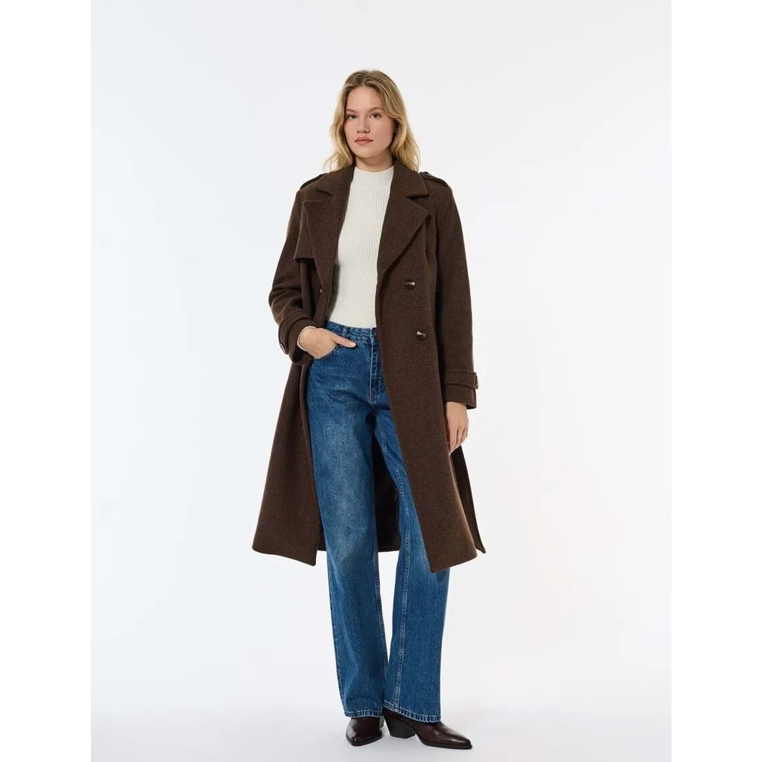 Kadın Giyim Trenç Kaban Kaşe Cepli Kemerli Kruvaze Uzun Kollu - KOTON - 6WAK00237EW - KAHVERENGİ - 34