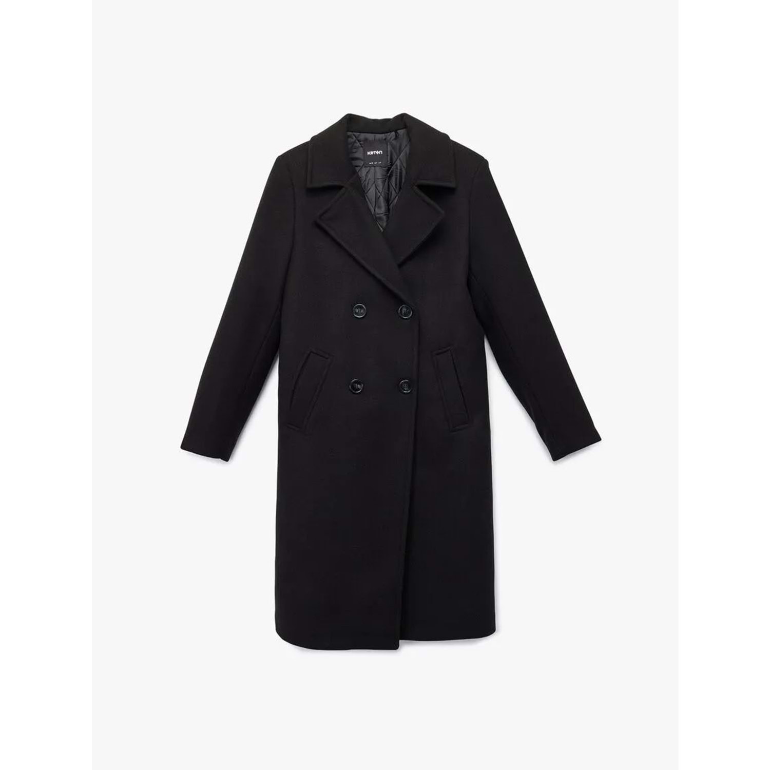Kadın Giyim Uzun Kollu Düğmeli Kruvaze Kaşe Kaban - KOTON - 6WAK00109EW - SİYAH - 36