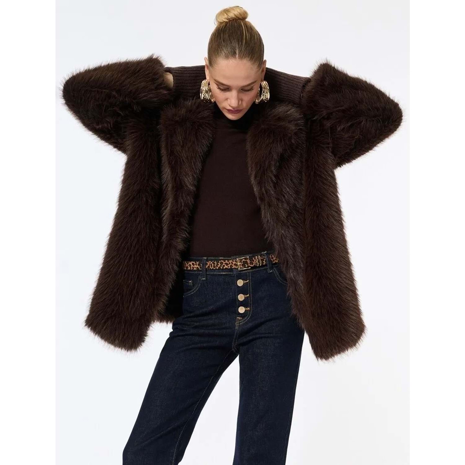Suni Kürk Kaban Kruvaze Uzun Kollu - KOTON - 6WAK00009EW - KAHVERENGİ - 44
