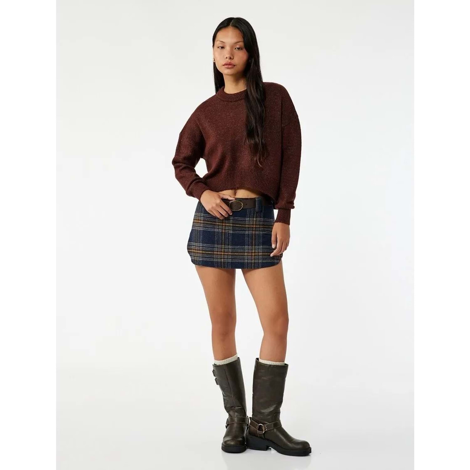 Kadın Giyim Asimetrik Kesim Triko Kazak - KOTON - 6WAL90041HT - KAHVERENGİ - S