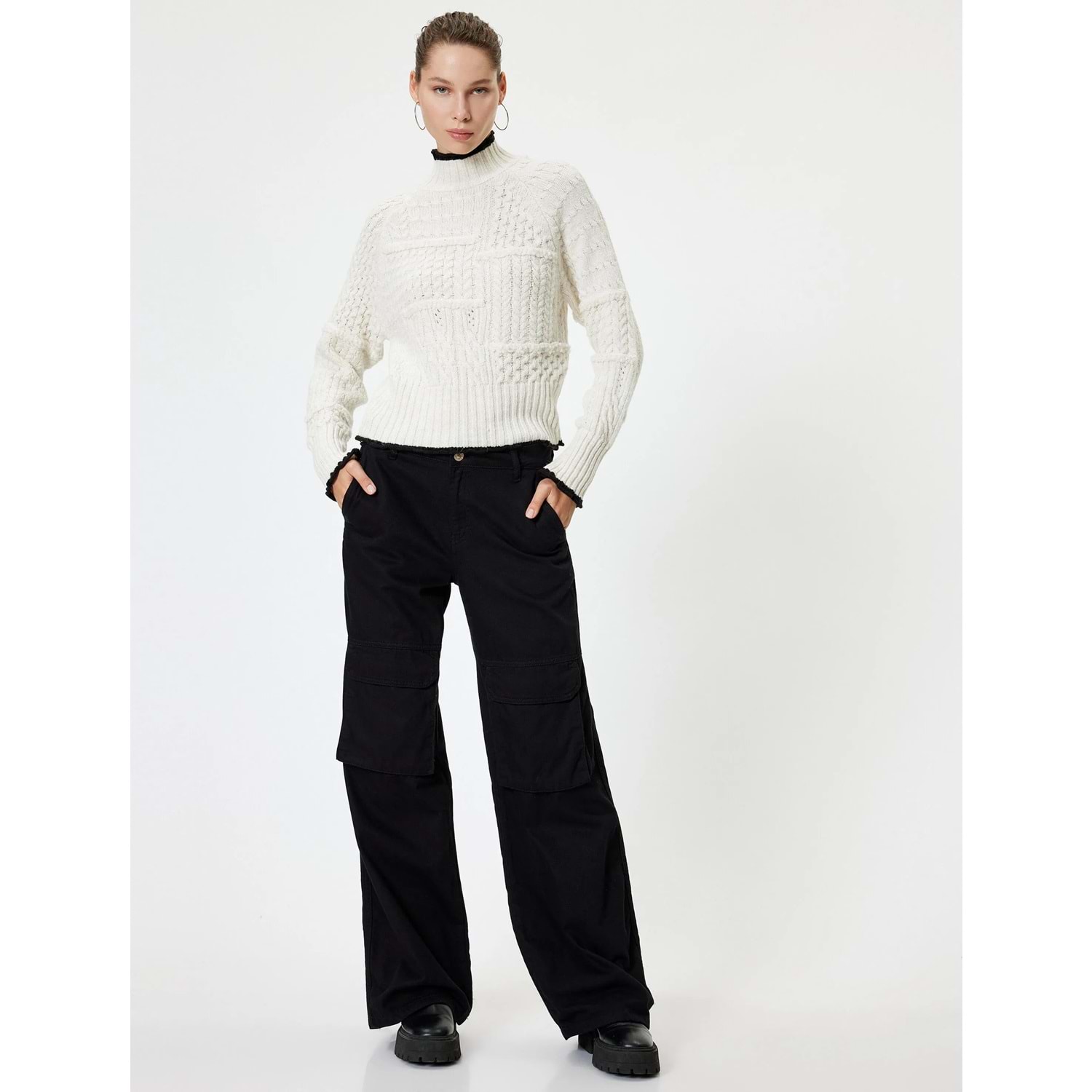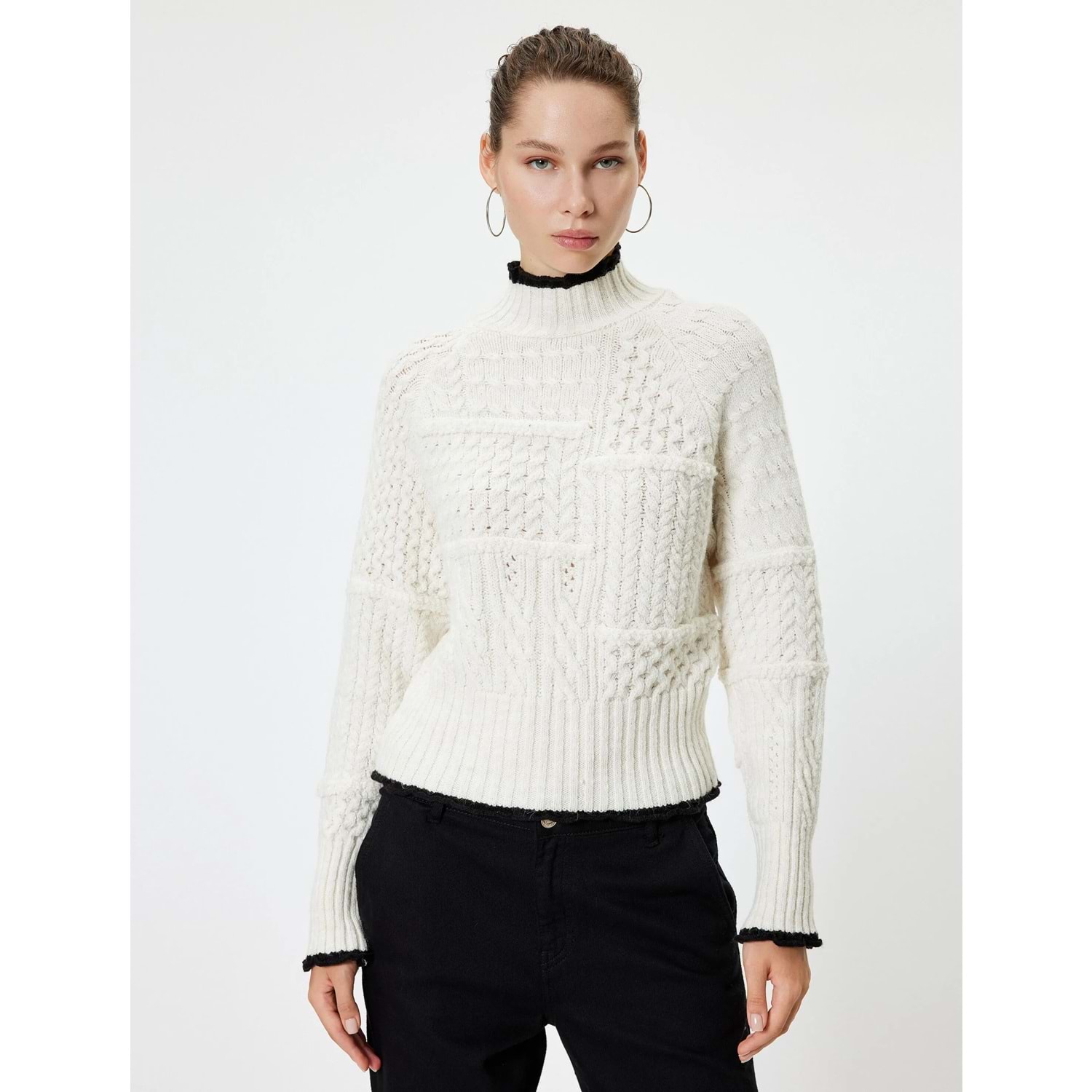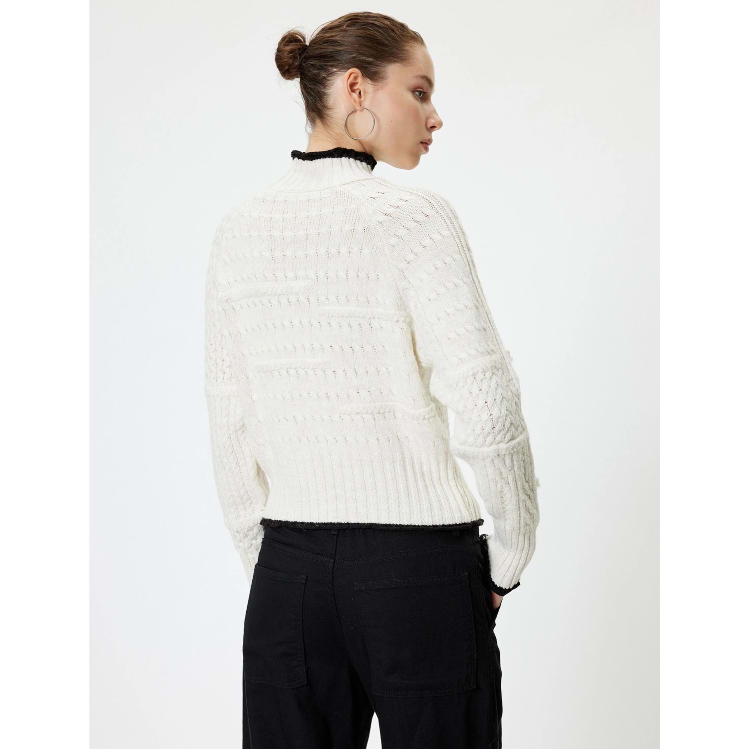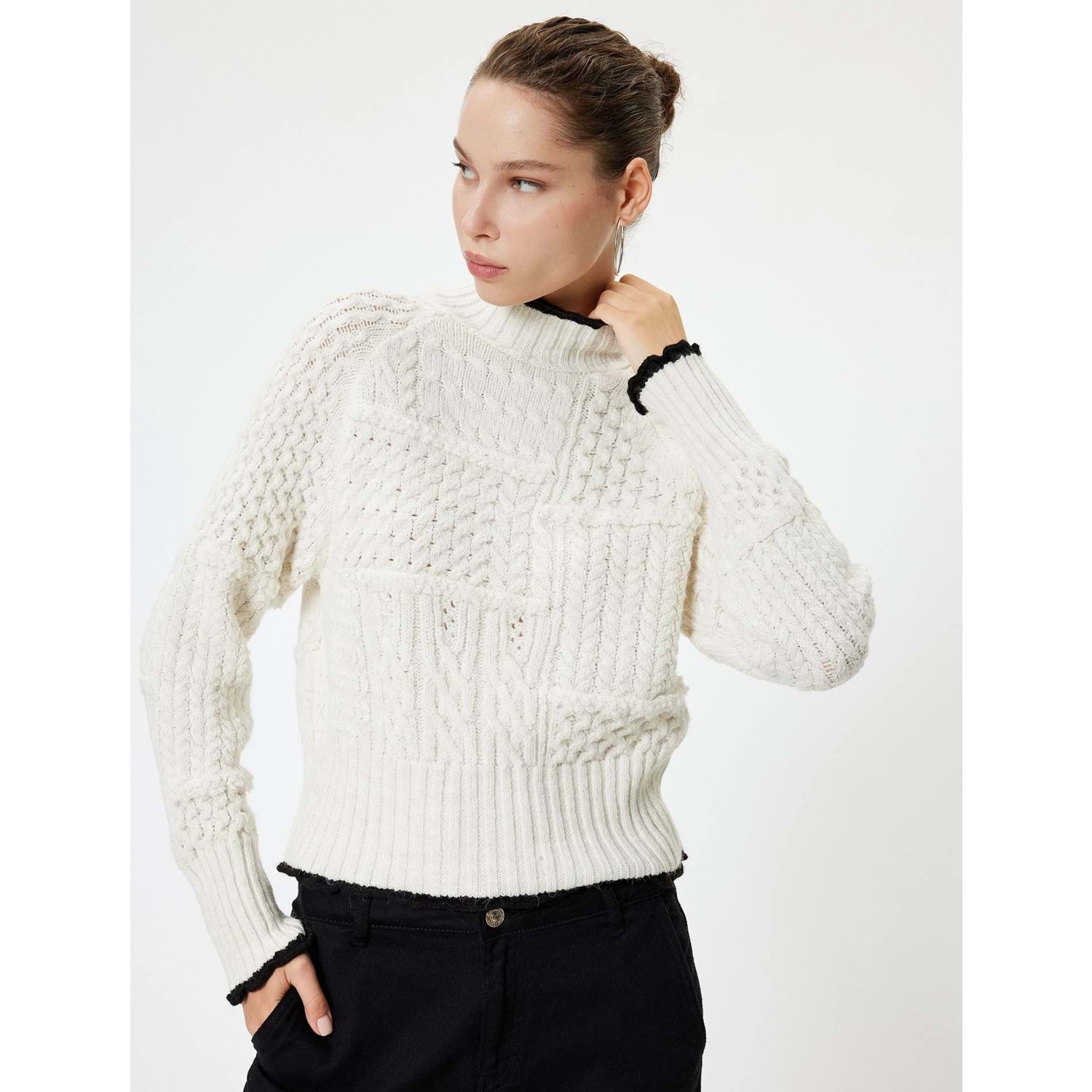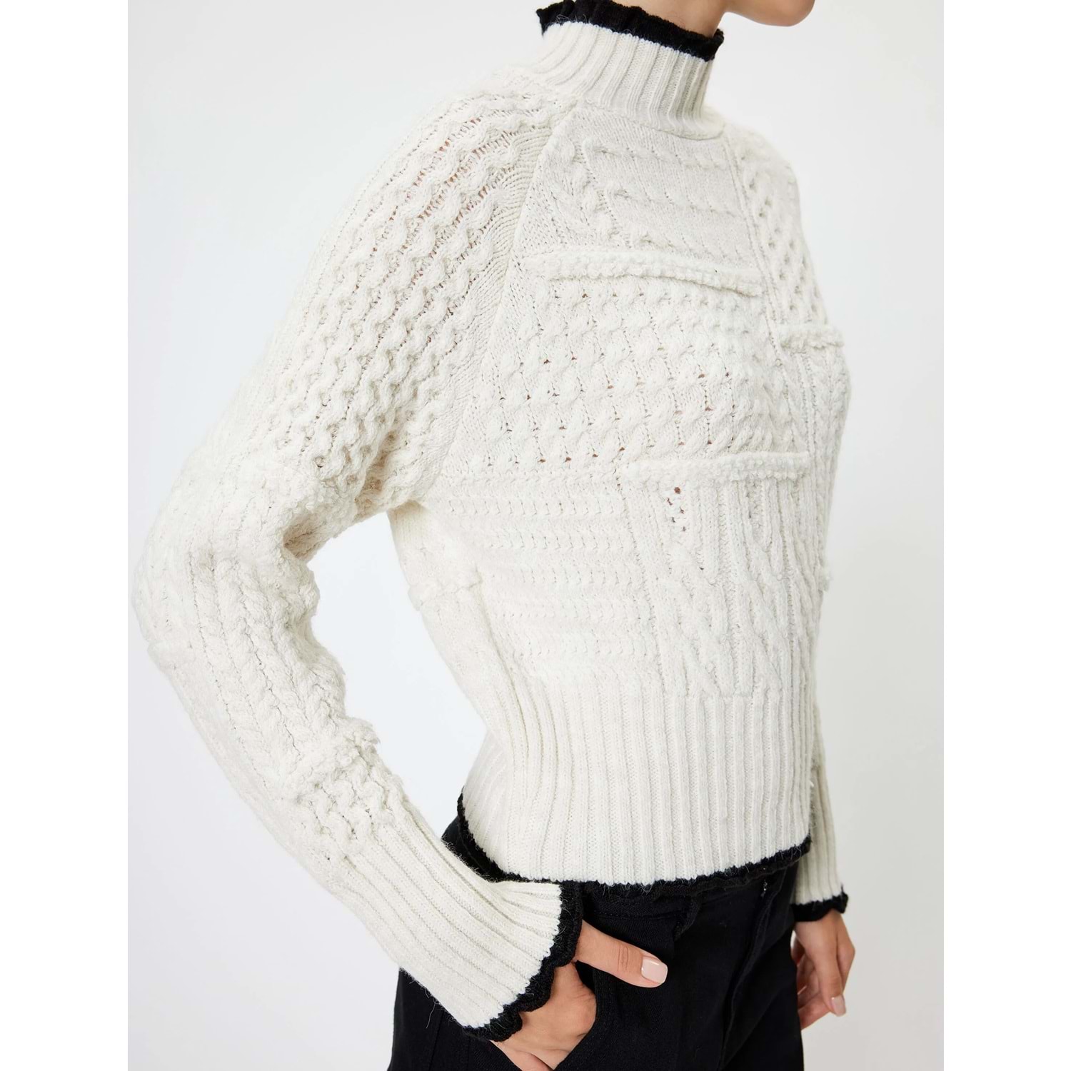 Günlük giyimde ya da ofiste kullanabileceğiniz dik yaka, örgü dokulu, biyeli kazak zamansız bir parça olarak öne çıkıyor!