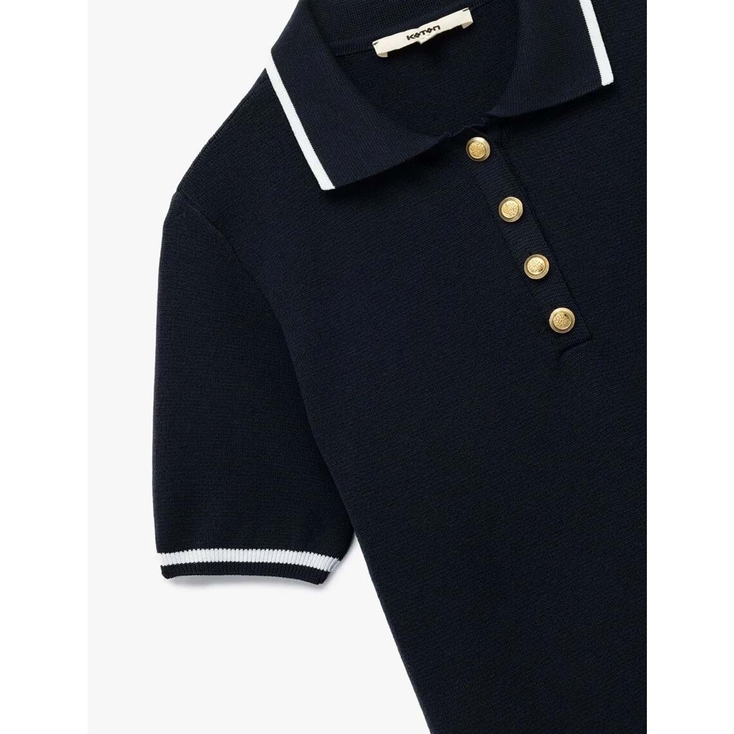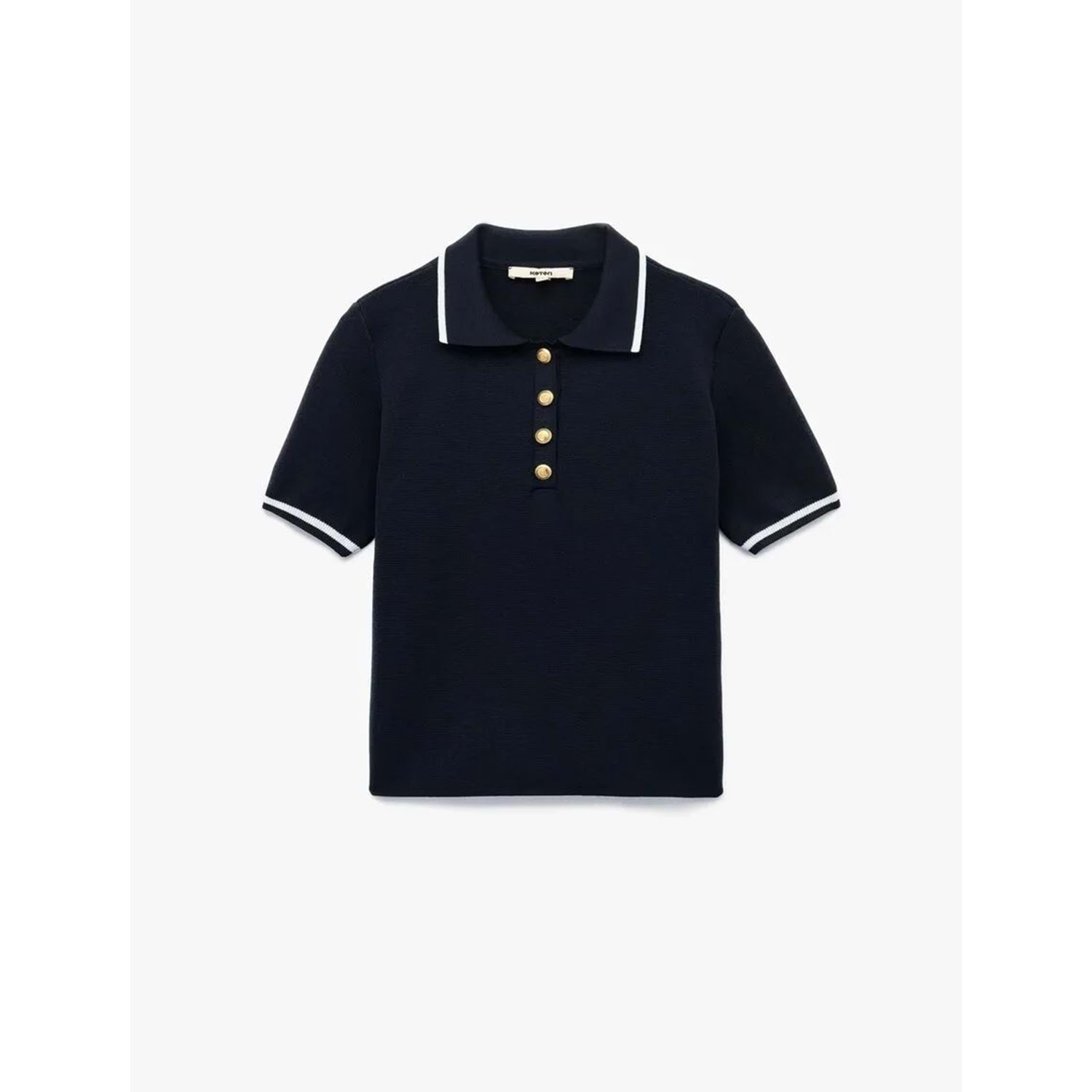 Kadın Giyim Düğmeli Kısa Kollu Polo Yaka Triko Kazak - KOTON - 6WAK90247HT - LACİVERT - M