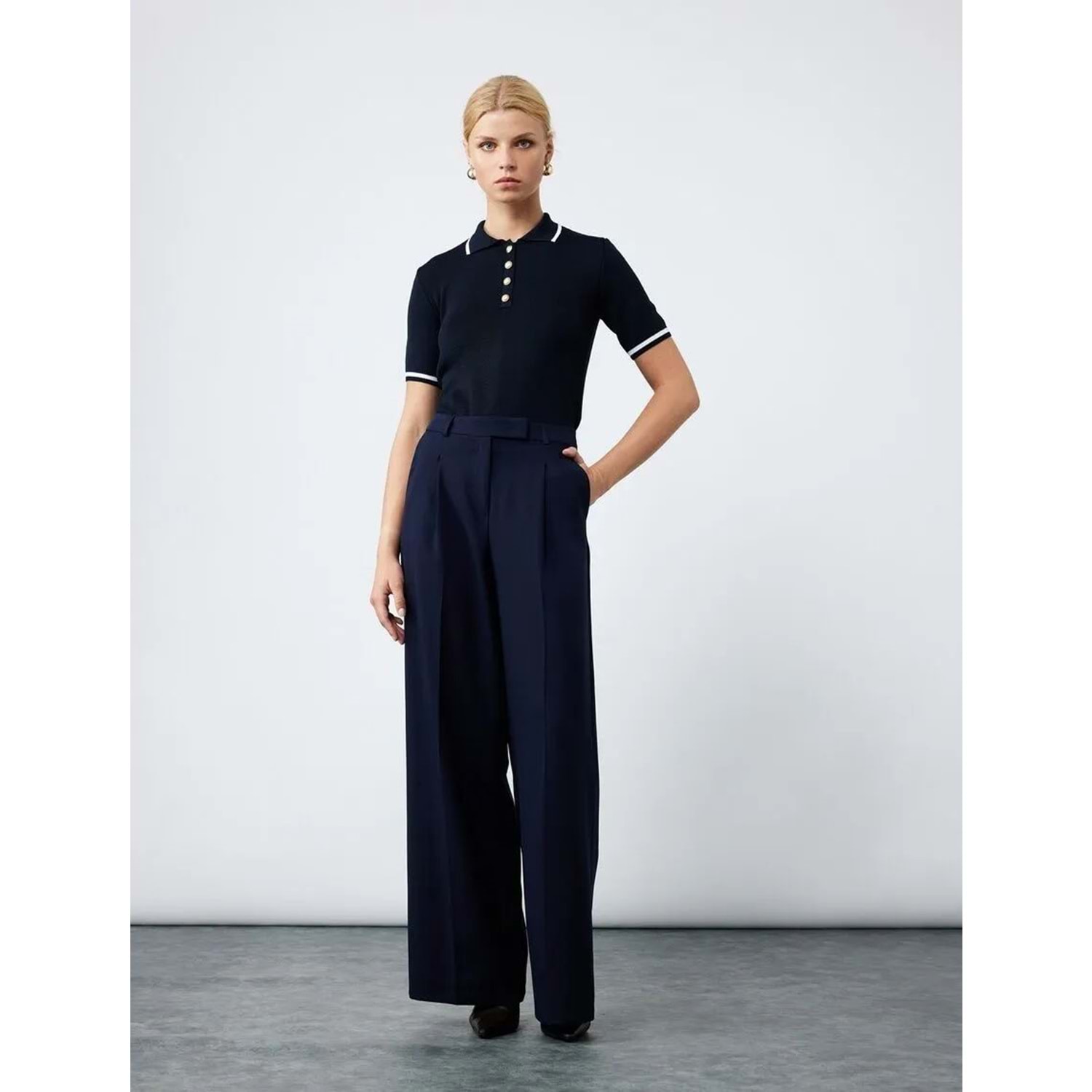 Kadın Giyim Düğmeli Kısa Kollu Polo Yaka Triko Kazak - KOTON - 6WAK90247HT - LACİVERT - S