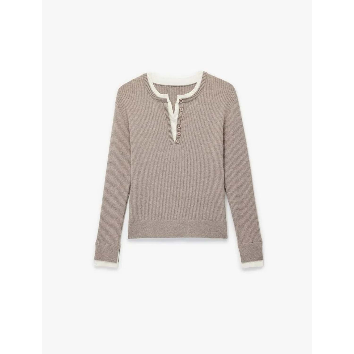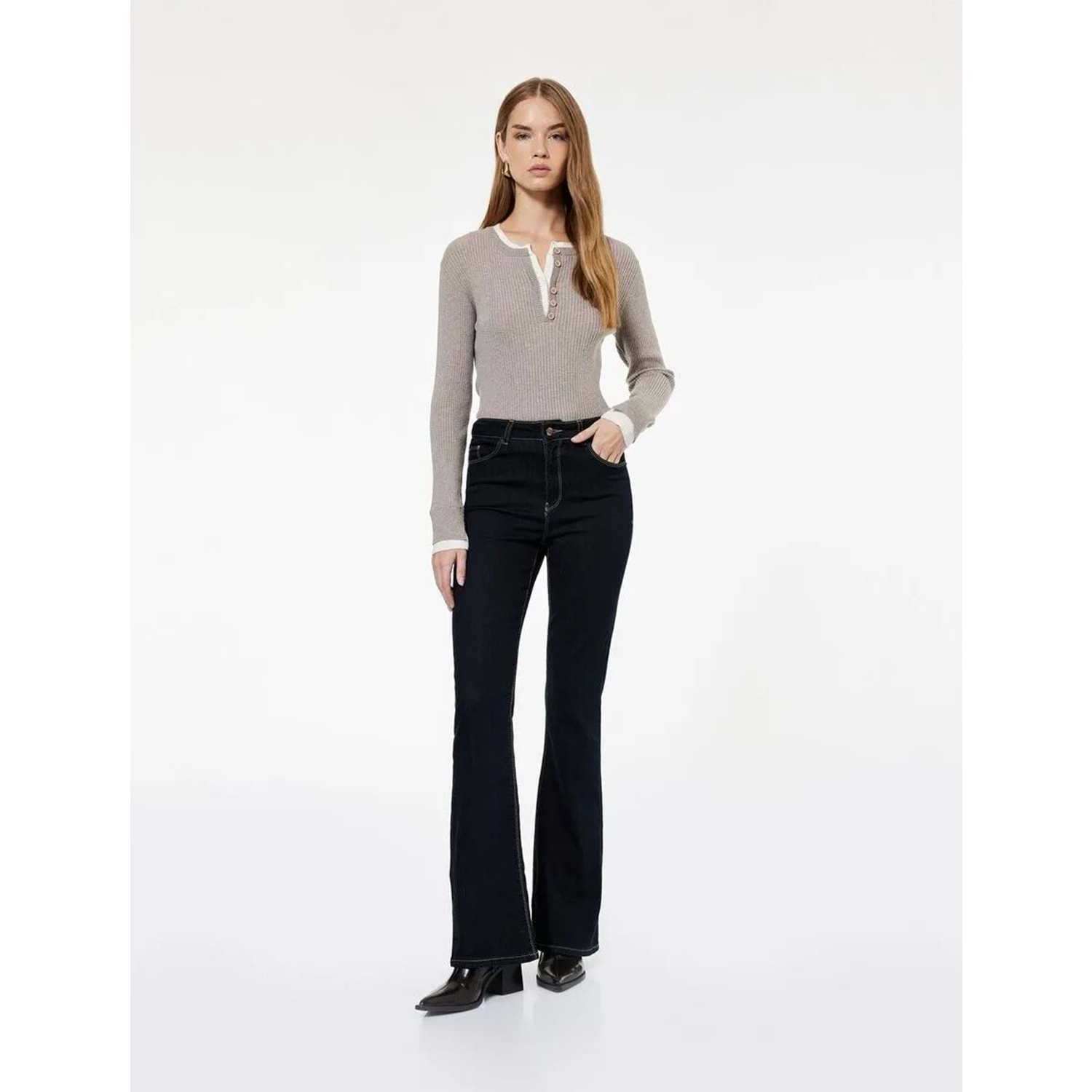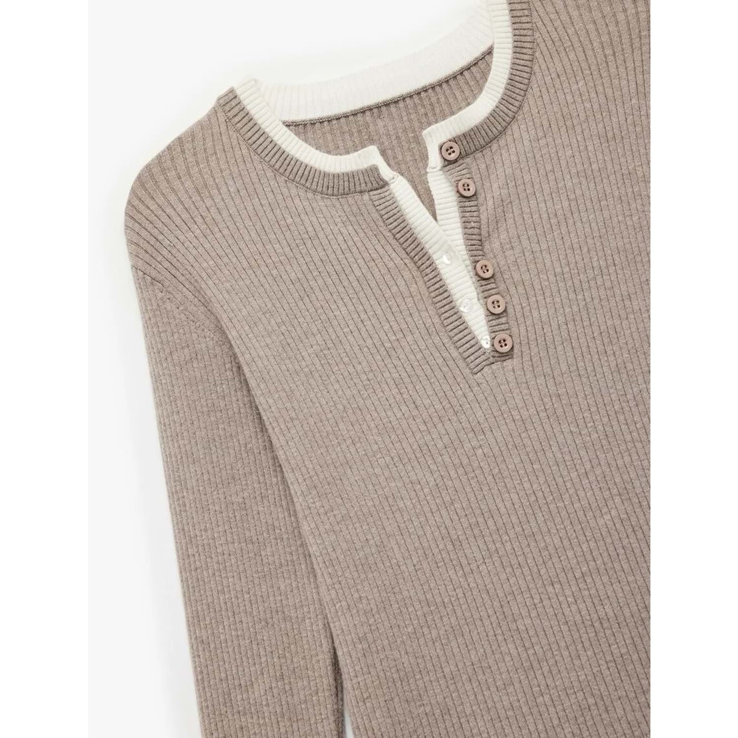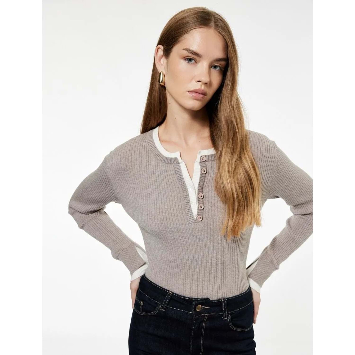 Kadın Giyim Düğmeli Uzun Kollu Bisiklet Yaka Triko Kazak - KOTON - 6WAK90404HT - VİZON - S