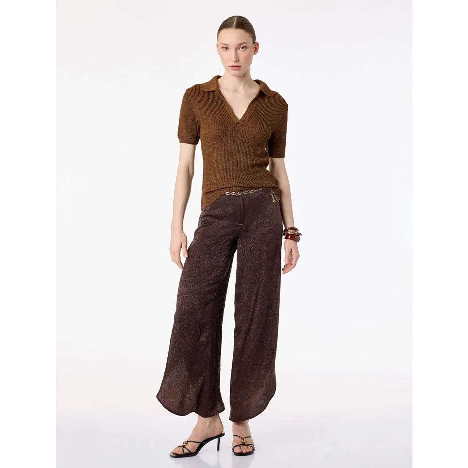 Kadın Giyim Kısa Kollu Polo Yaka Triko Kazak - KOTON - 6SAK90141HT - KAHVERENGİ - L