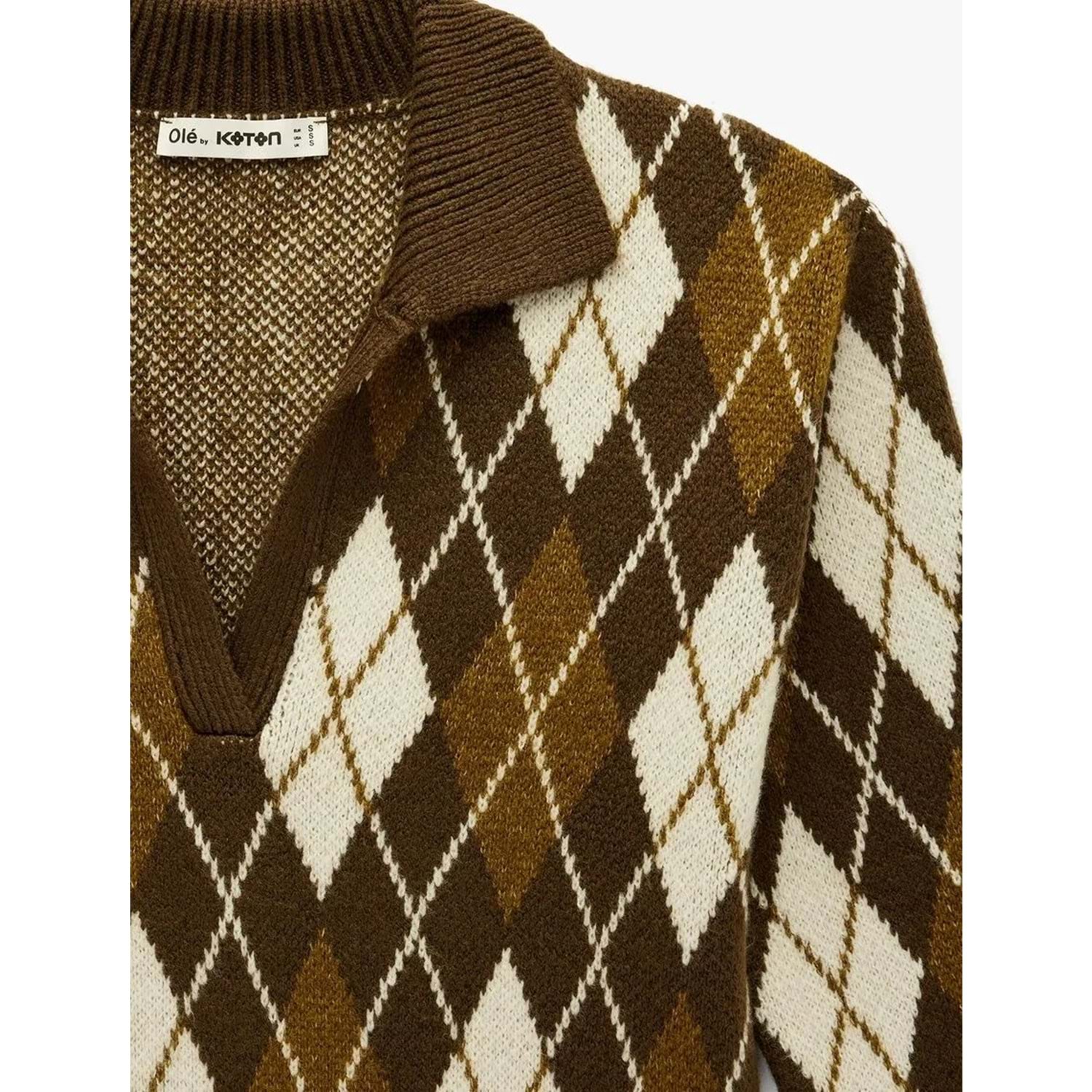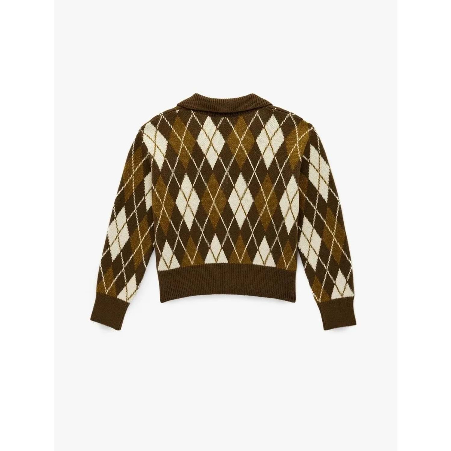 Kadın Giyim Polo Yaka Baklava Desenli Triko Kazak - KOTON - 6WAL90050IT - YEŞİL DESENLİ - S