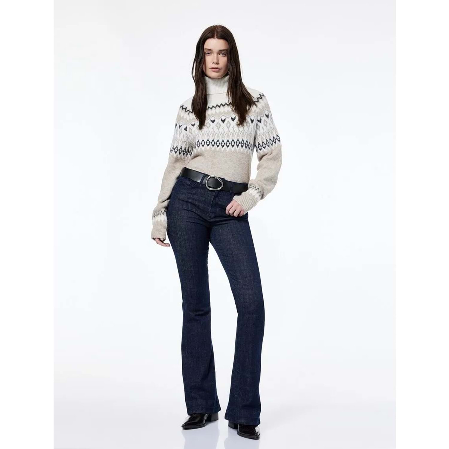Kadın Giyim Uzun Kollu Balıkçı Yaka Desenli Örgü Kazak - KOTON - 6WAK90503HT - BEJ DESENLİ - L