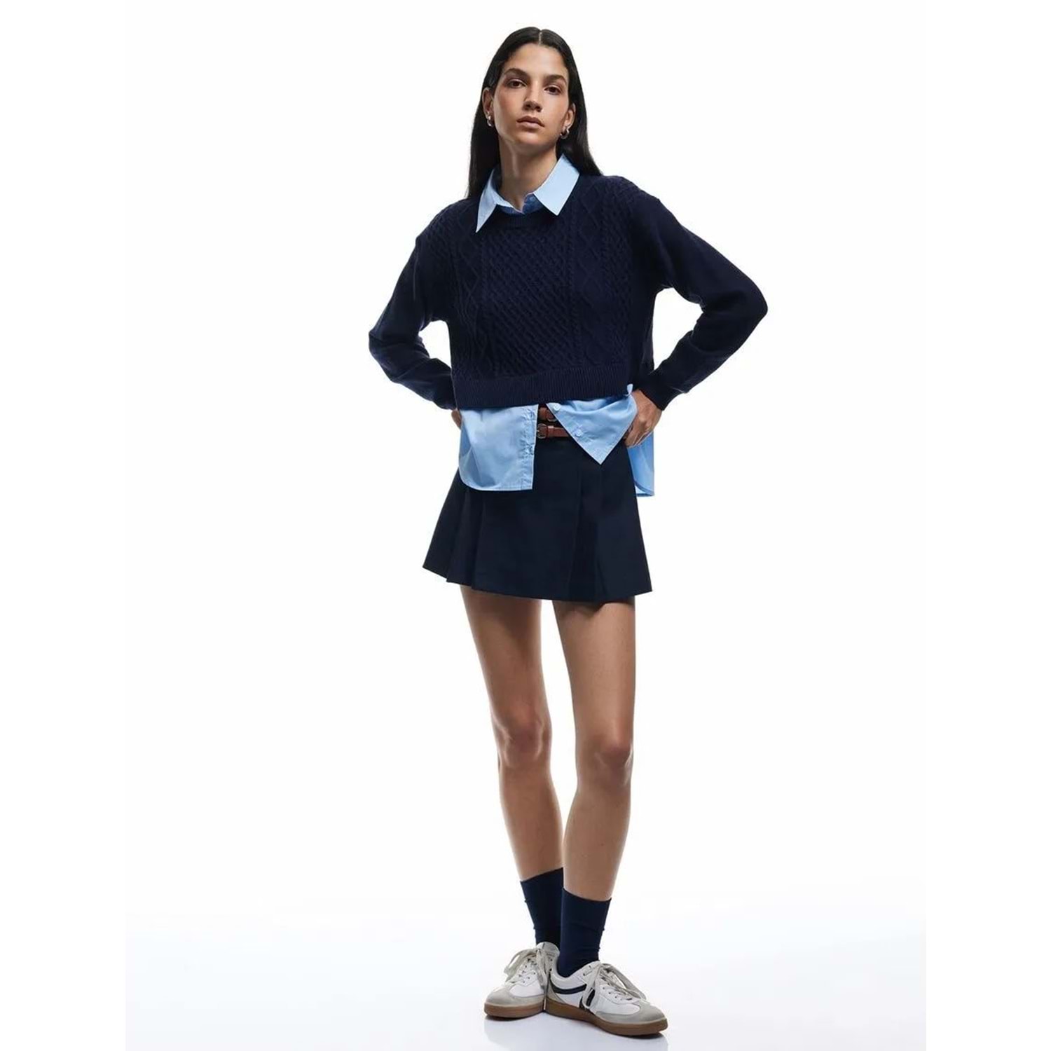 Kadın Giyim Uzun Kollu Gömlek Yaka Saç Örgü Dokulu Viskon Karışımlı Kazak - KOTON - 6WAL90003IT - LACİVERT - M