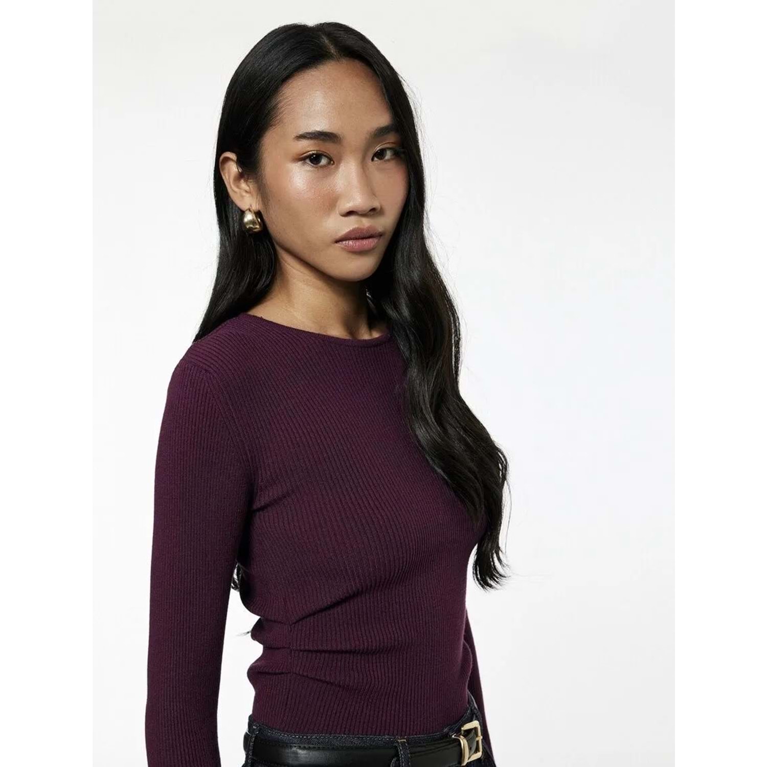 Kadın Giyim Uzun Kollu Yuvarlak Yaka Basic Triko Kazak - KOTON - 6WAK90371HT - BORDO - M