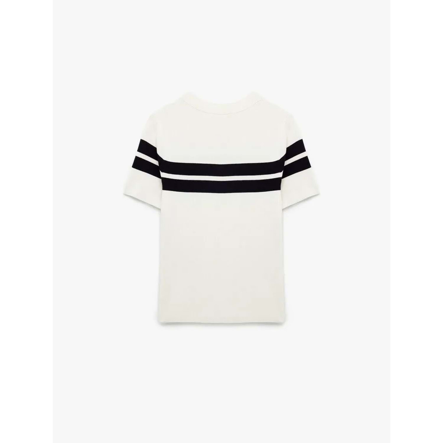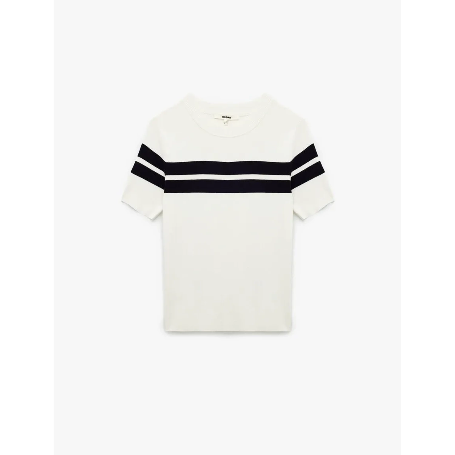 Kadın Giyim Viskon Kumaş Kısa Kollu Bisiklet Yaka Triko Sweatshirt - KOTON - 6WAK90118HT - LACİVERT ÇİZGİLİ - M