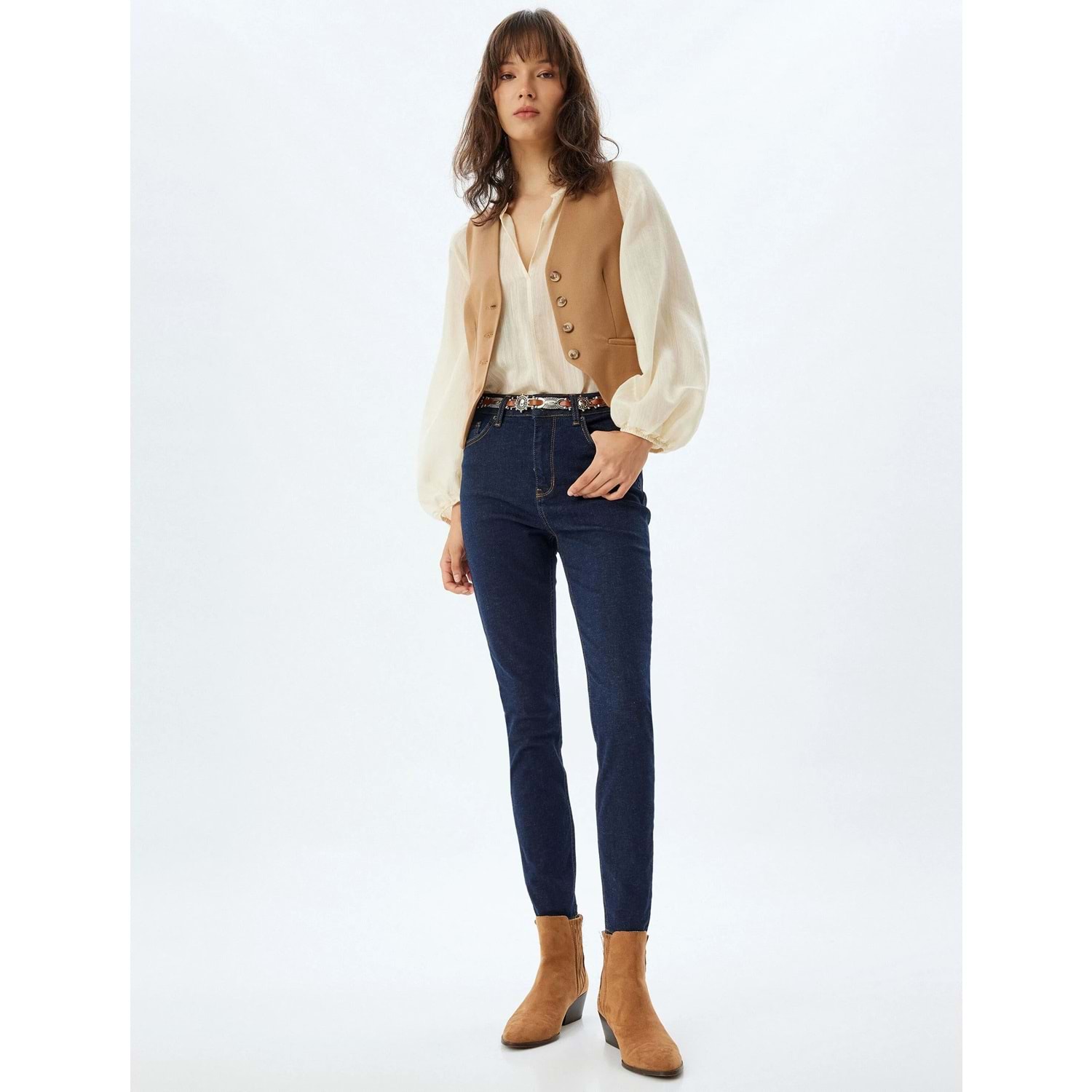 Yüksek Bel Kot Pantolon Düğmeli Dar Kalıp 5WAL40204MD - KOTON - KOYU İNDİGO - 27/32