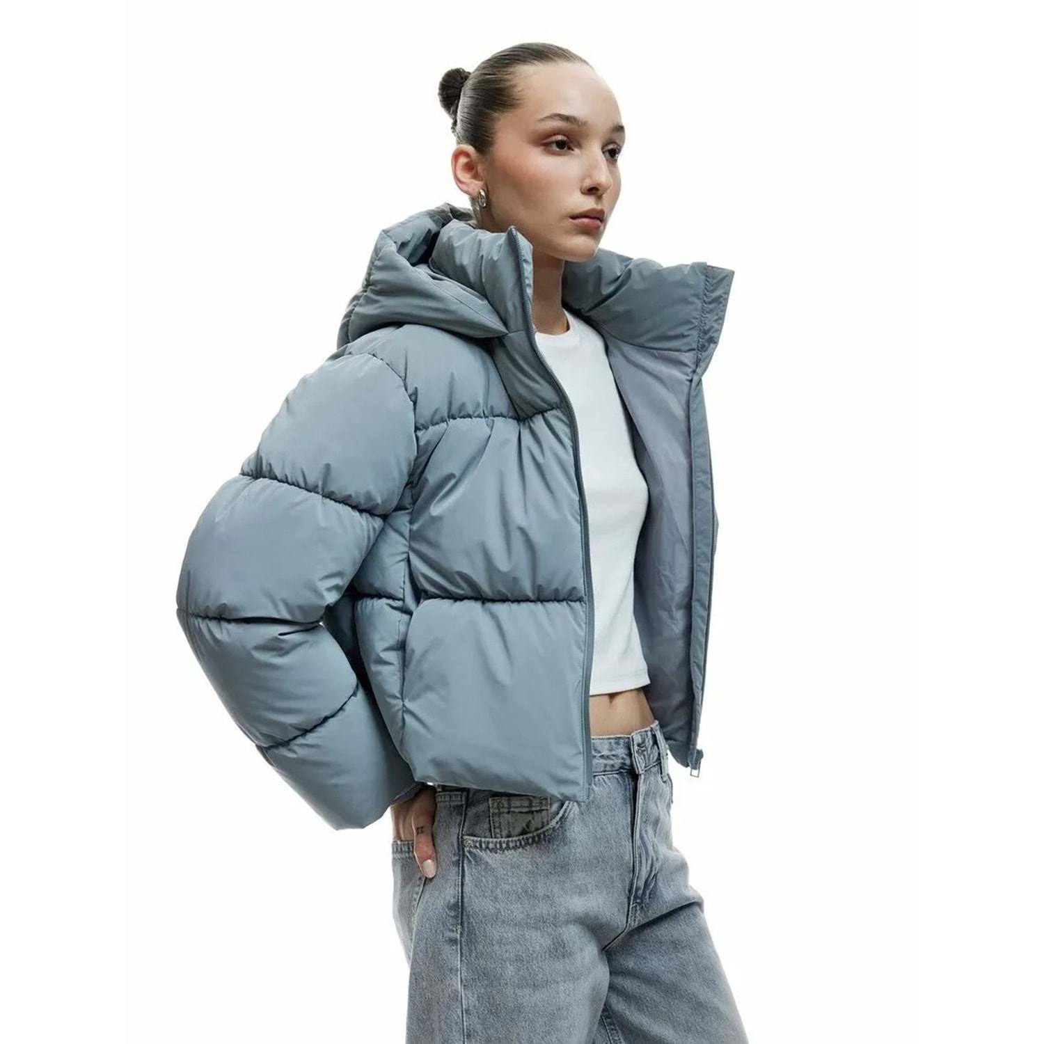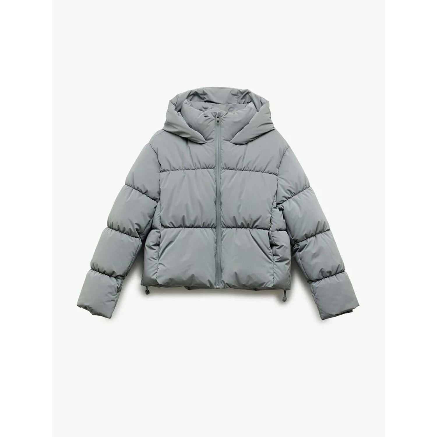 Kadın Giyim Cep Detaylı Fermuarlı Kapitone Su İtici Şişme Mont - KOTON - 6WAL20023IW - GRİ - 42