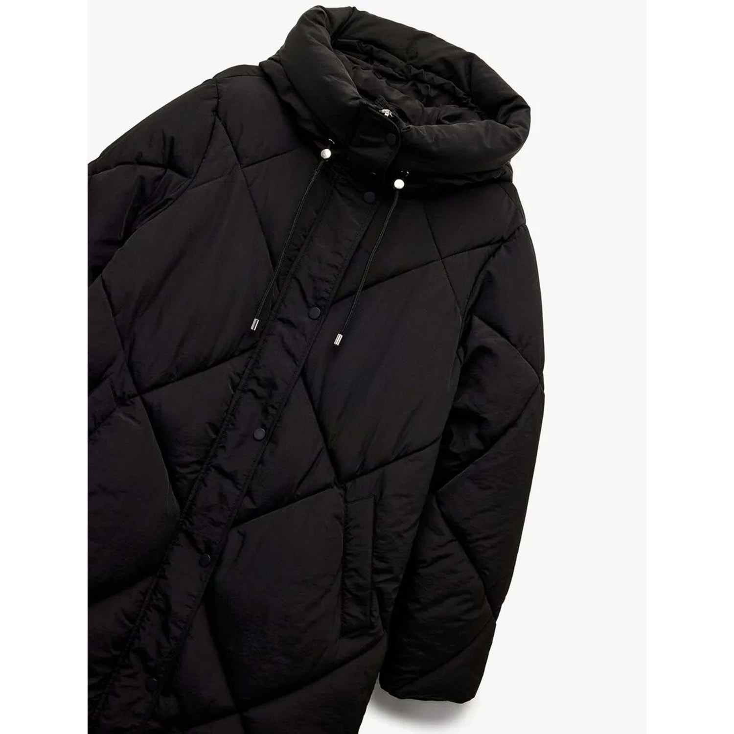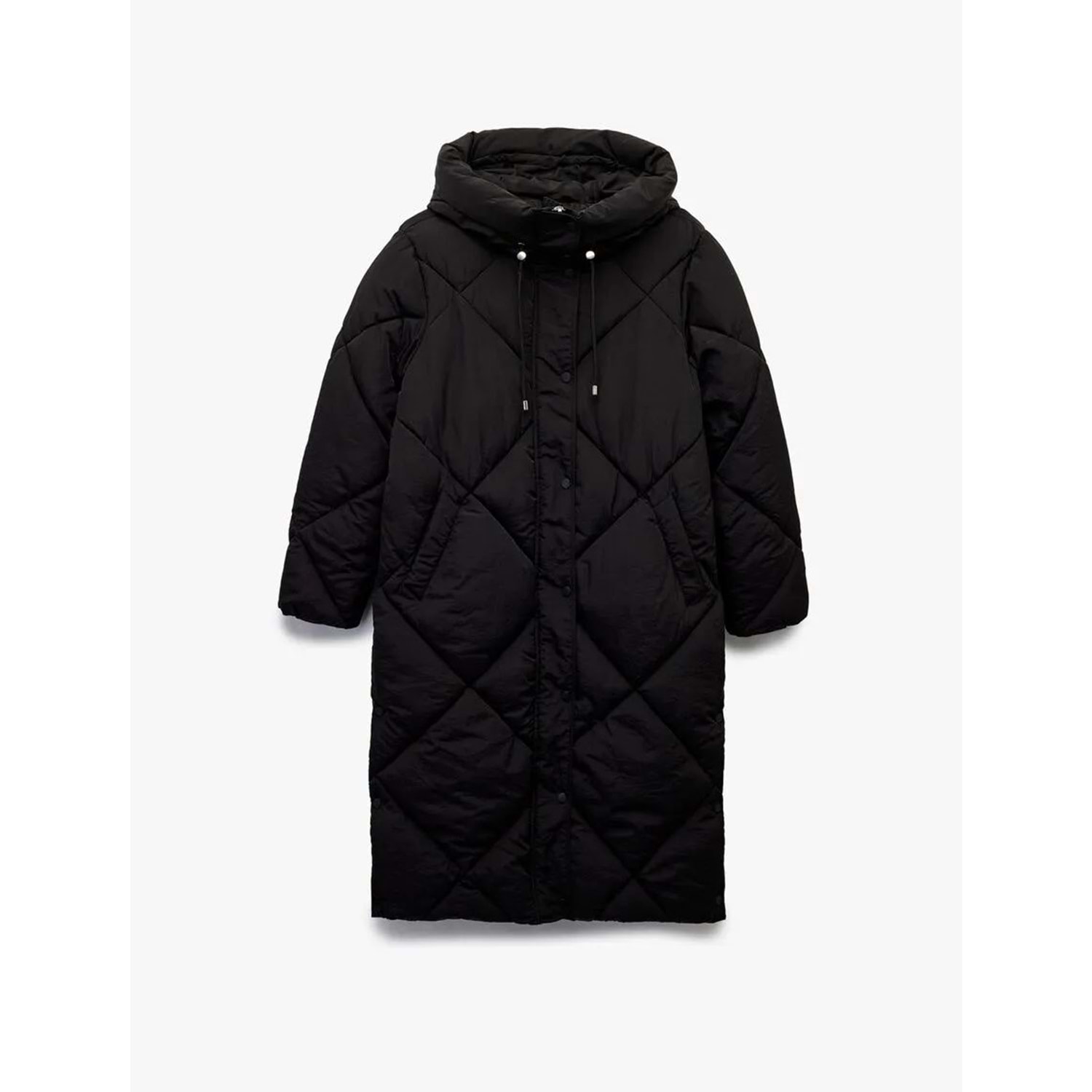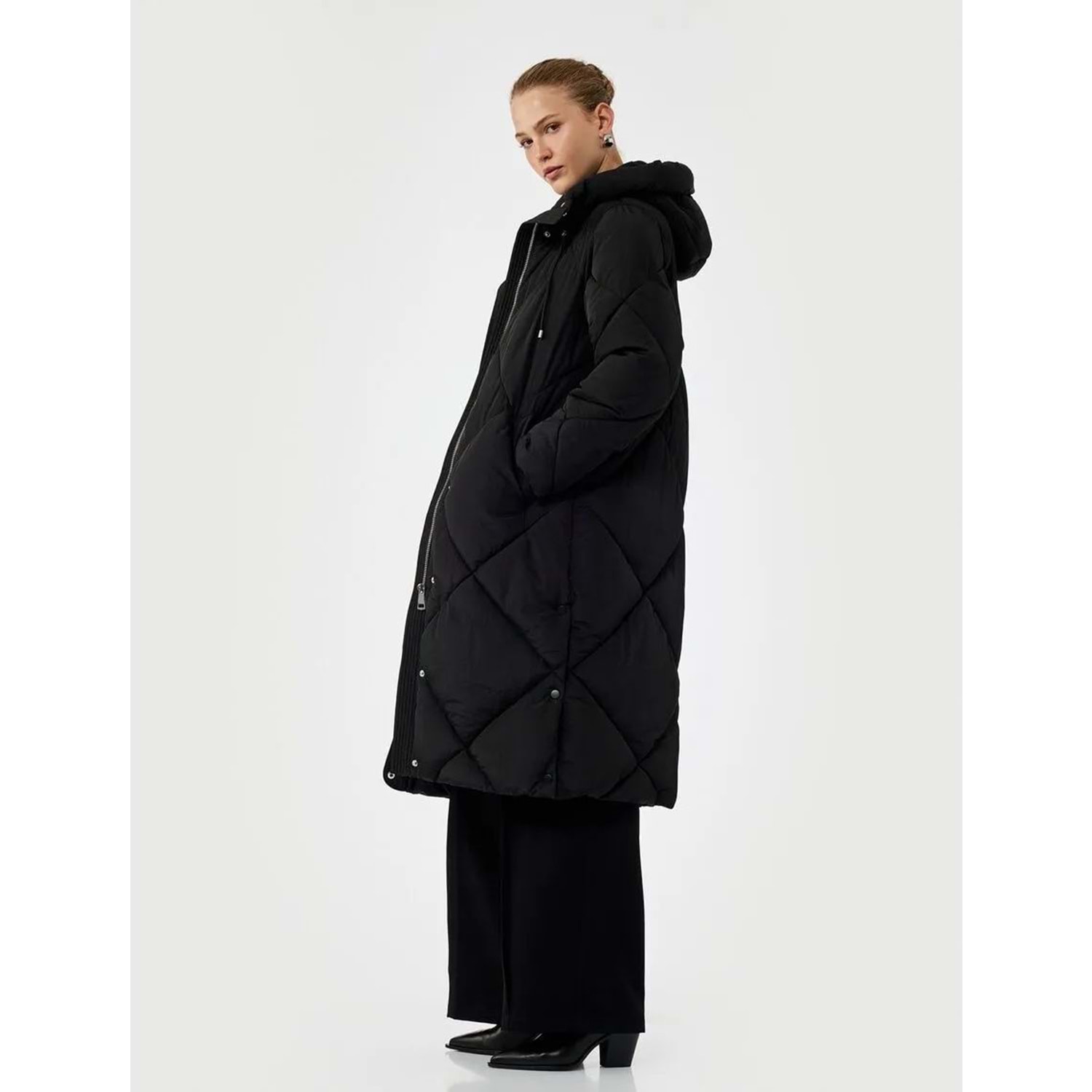 Kadın Giyim Kapüşonlu Fermuarlı Uzun Kollu Su İtici Ekstra Uzun Kapitone Oversize Şişme Anorak Mont - KOTON - 6WAK00011EW - SİYAH - 34