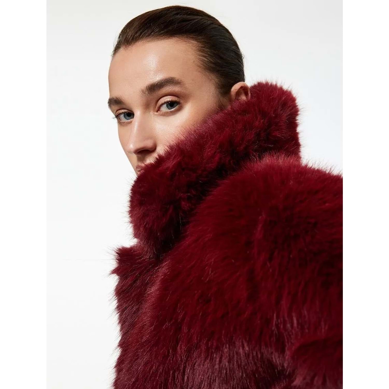 Kadın Giyim Suni Kürk Mont Uzun Kollu Crop - KOTON - 6WAK00005EW - BORDO - 36