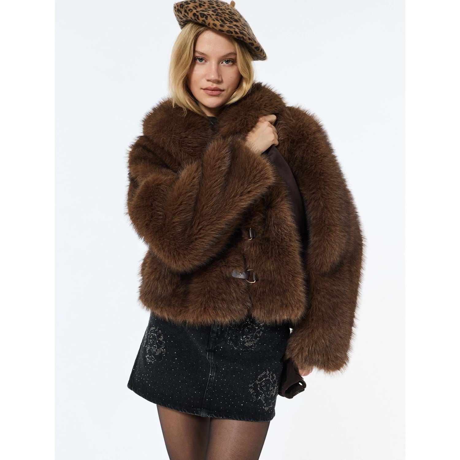 Kadın Giyim Suni Kürk Mont Uzun Kollu Kruvaze Crop - KOTON - 6WAK20254EW - KAHVERENGİ - 38