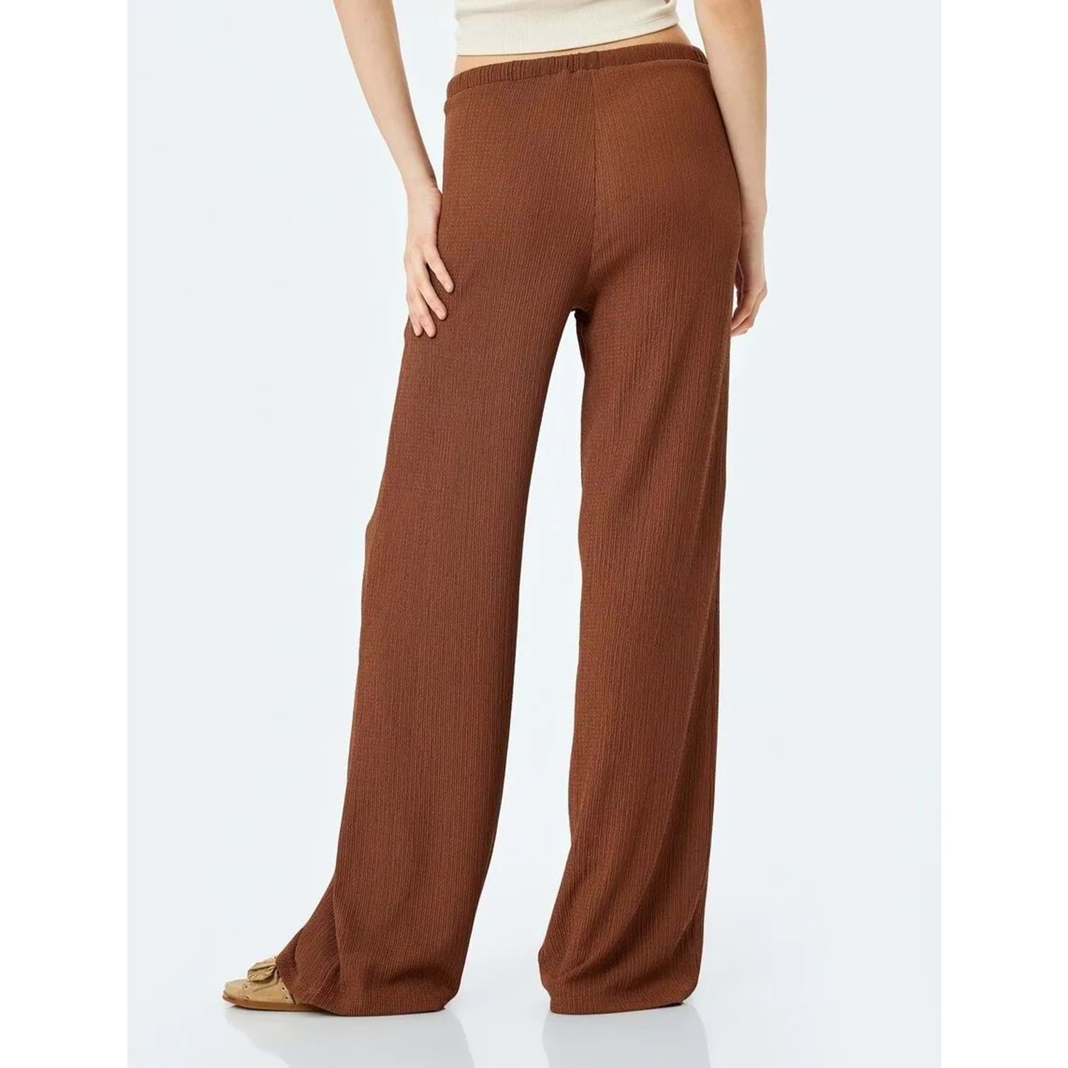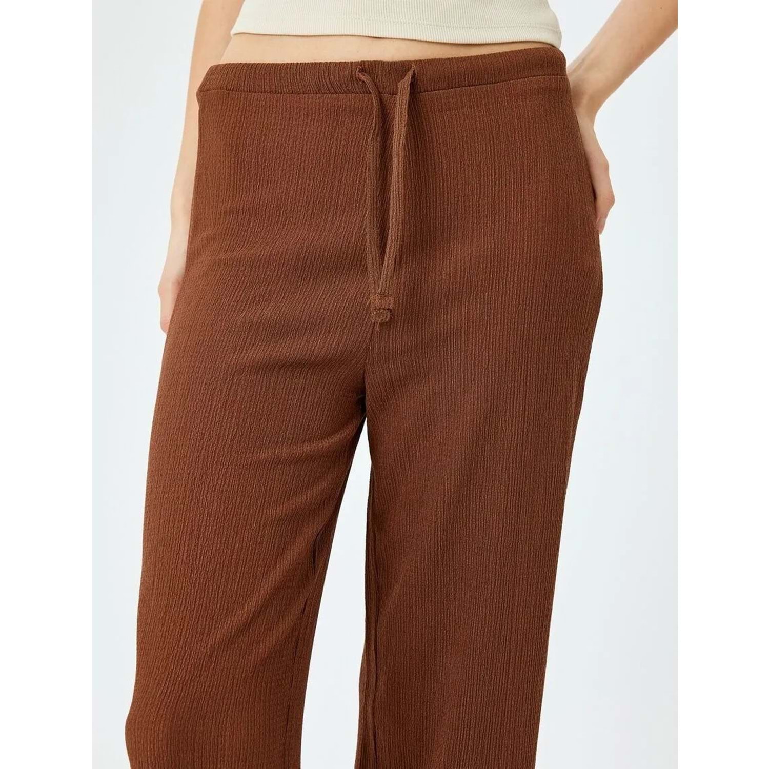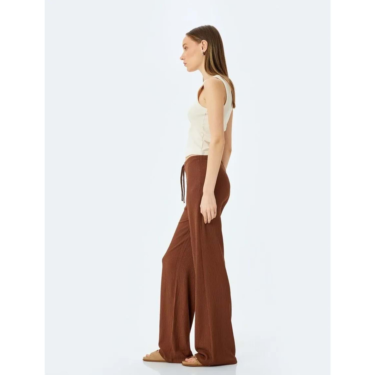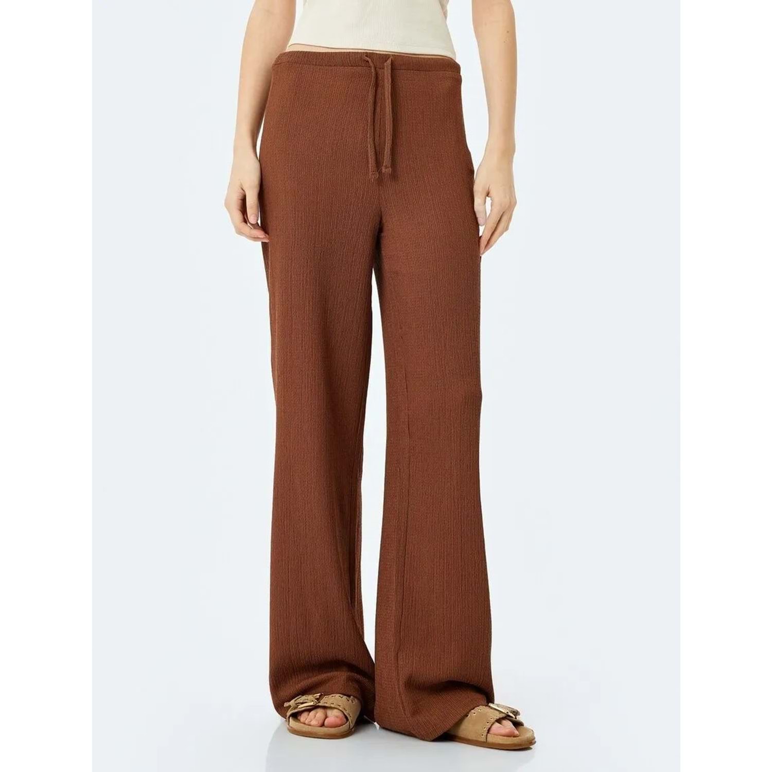 Beli Bağcıklı Yüksek Bel Bol Paça Pantolon 5SAL40050IK - KOTON - KAHVERENGİ - S