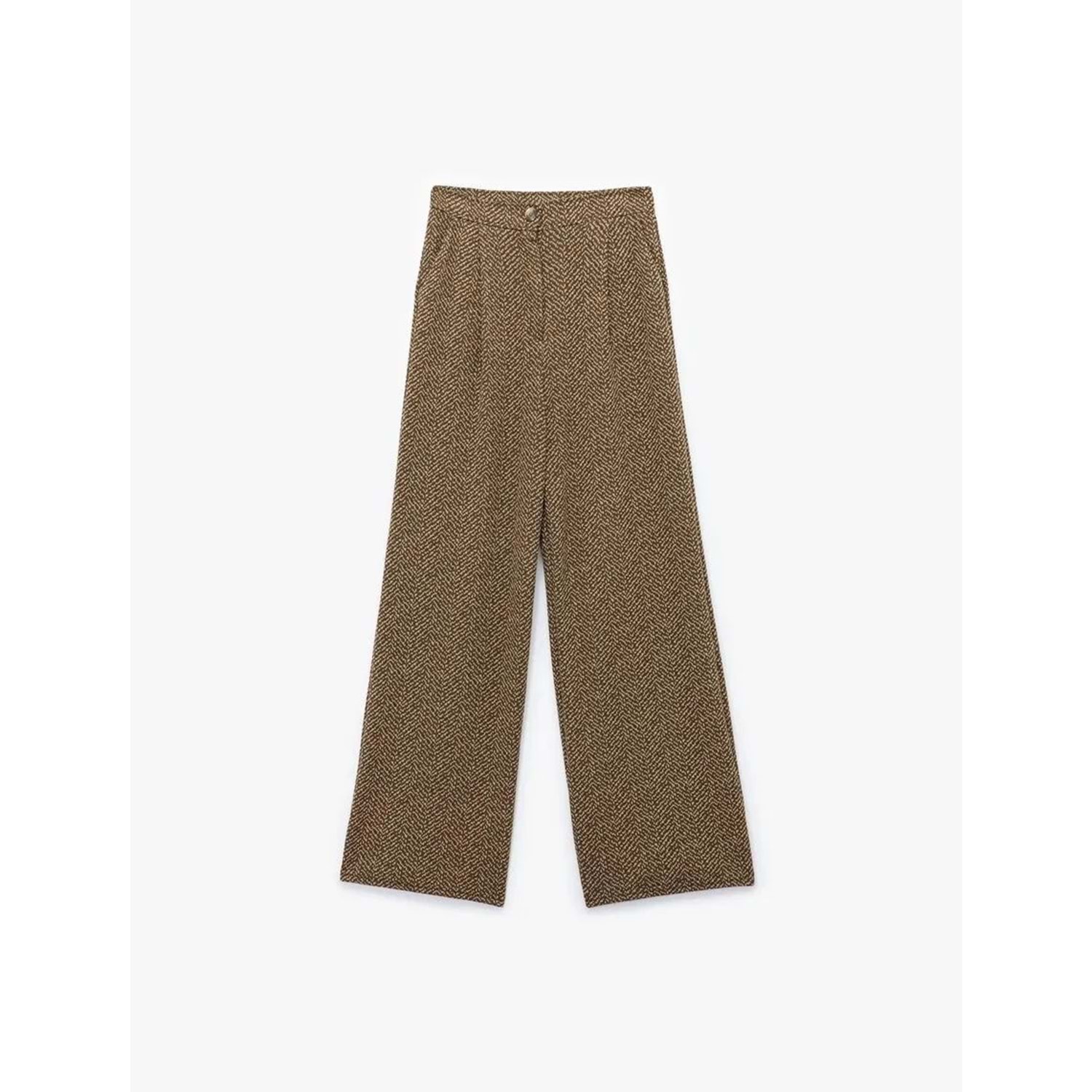Kadın Giyim Cepli Pile Detaylı Desenli Geniş Paça Palazzo Pantolon - KOTON - 6WAK40004EK - KAHVERENGİ DESENLİ - L