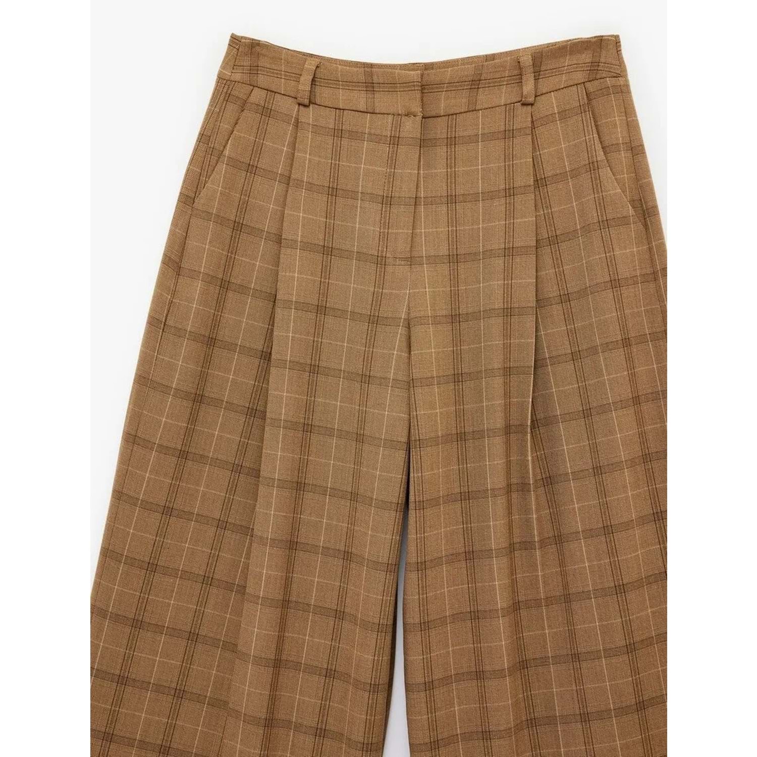 KadıN Giyim Cepli Pile Detaylı Geniş Paça Ekose Pantolon - KOTON - 6SAK40131PW - KAHVERENGİ EKOSE - 34