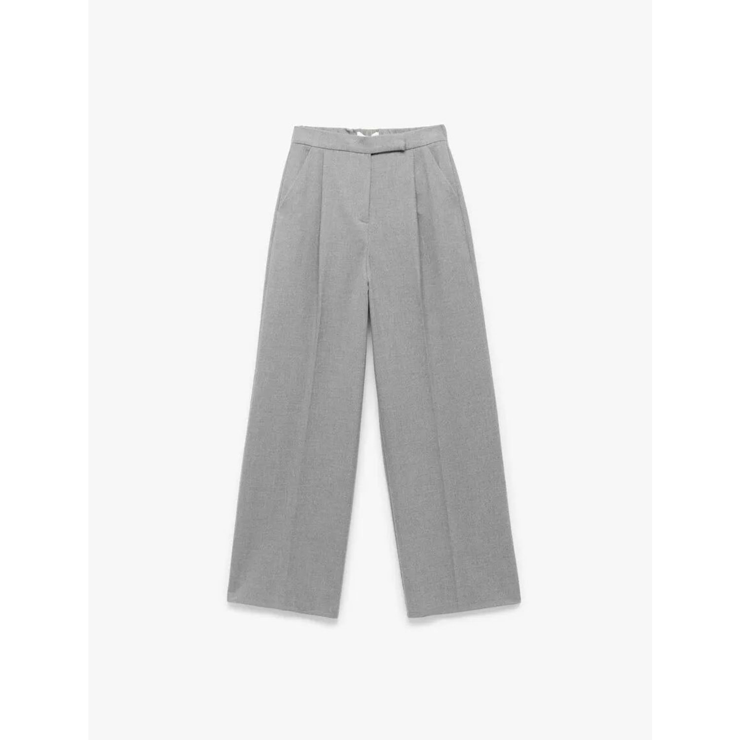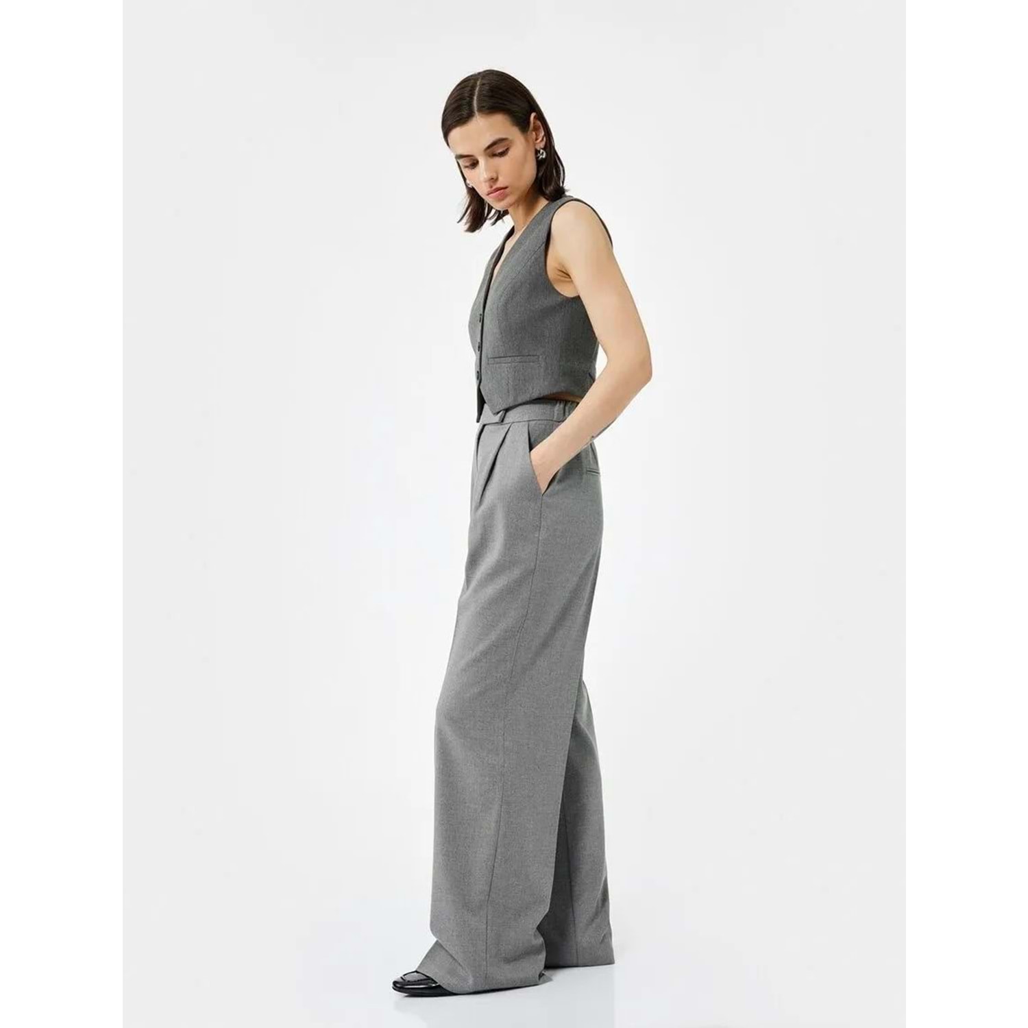 Kadın Giyim Cepli Pile Detaylı Yüksek Bel Geniş Paça Baggy Kumaş Pantolon - KOTON - 6WAK40033UW - GRİ - 34