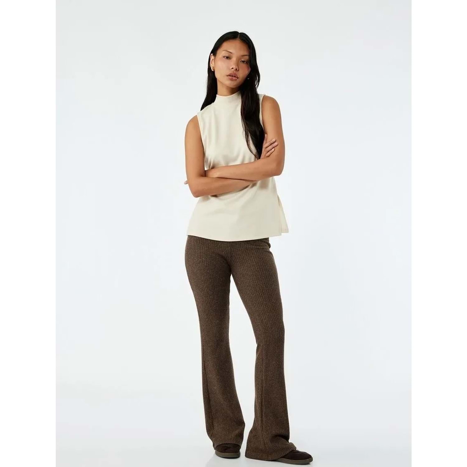 Kadın Giyim Kaşkorse Kumaş Viskon Karışımlı İspanyol Paça Yüksek Bel Pantolon - KOTON - 6WAL40030IK - KAHVERENGİ - S