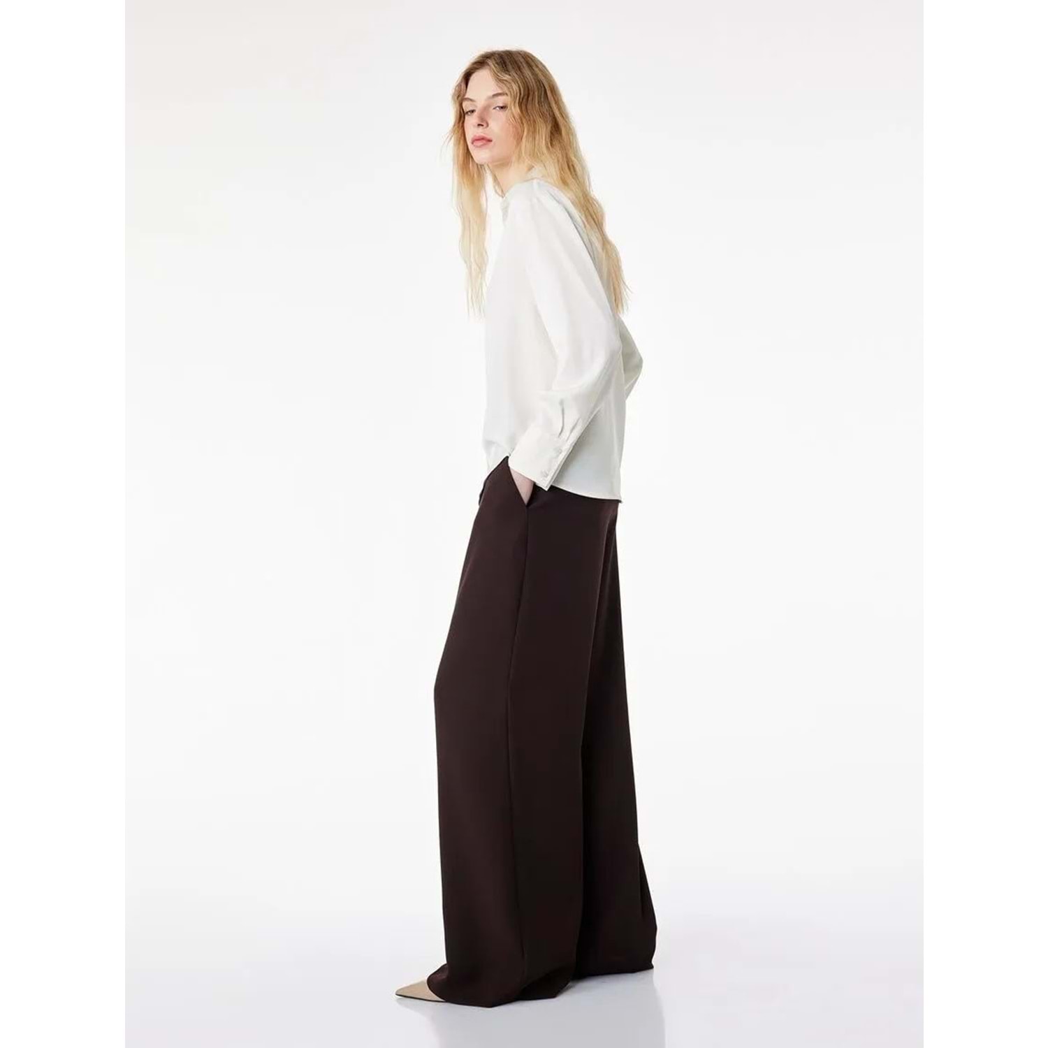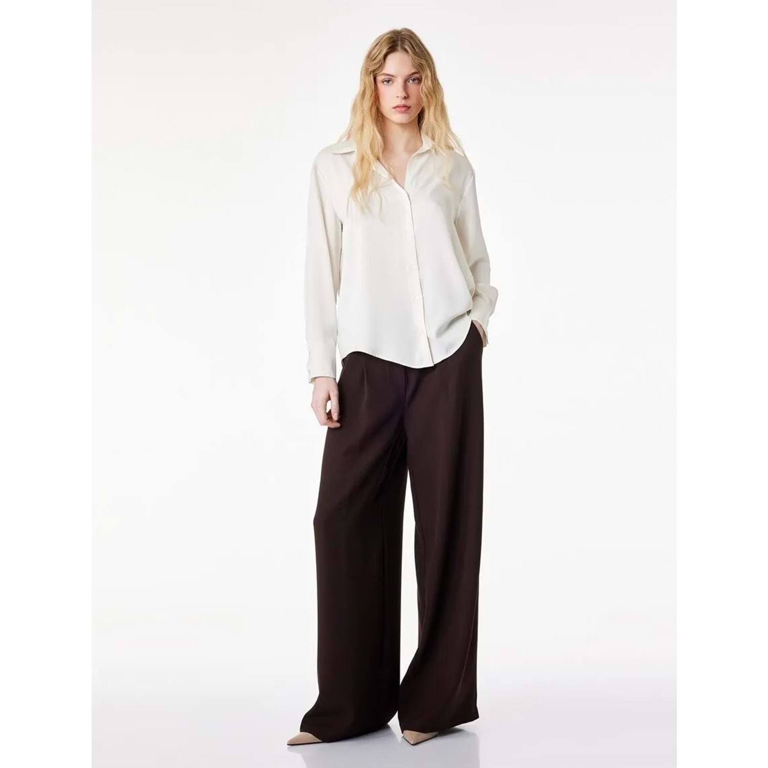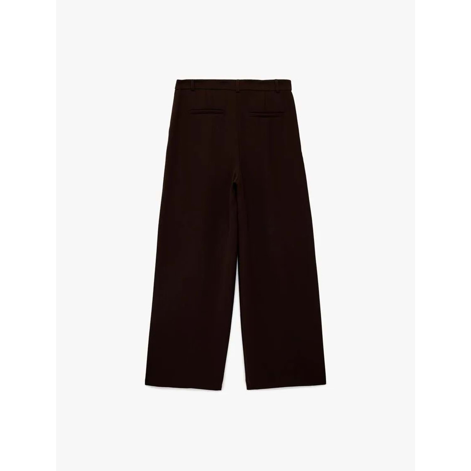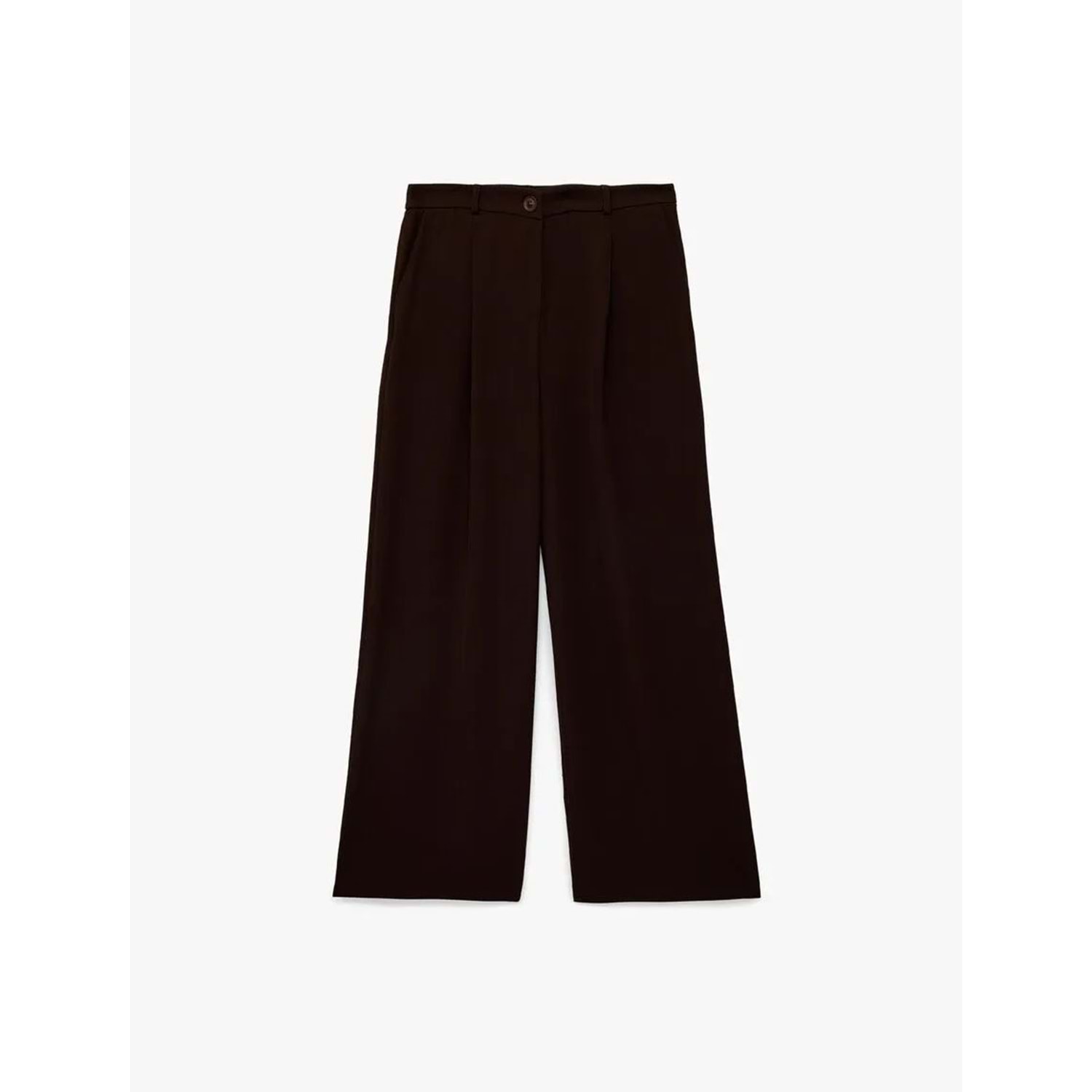 Kadın Giyim Krep Kumaş Pile Detaylı Cepli Yüksek Bel Palazzo Pantolon - KOTON - 6SAK40183UW - KAHVERENGİ - 38
