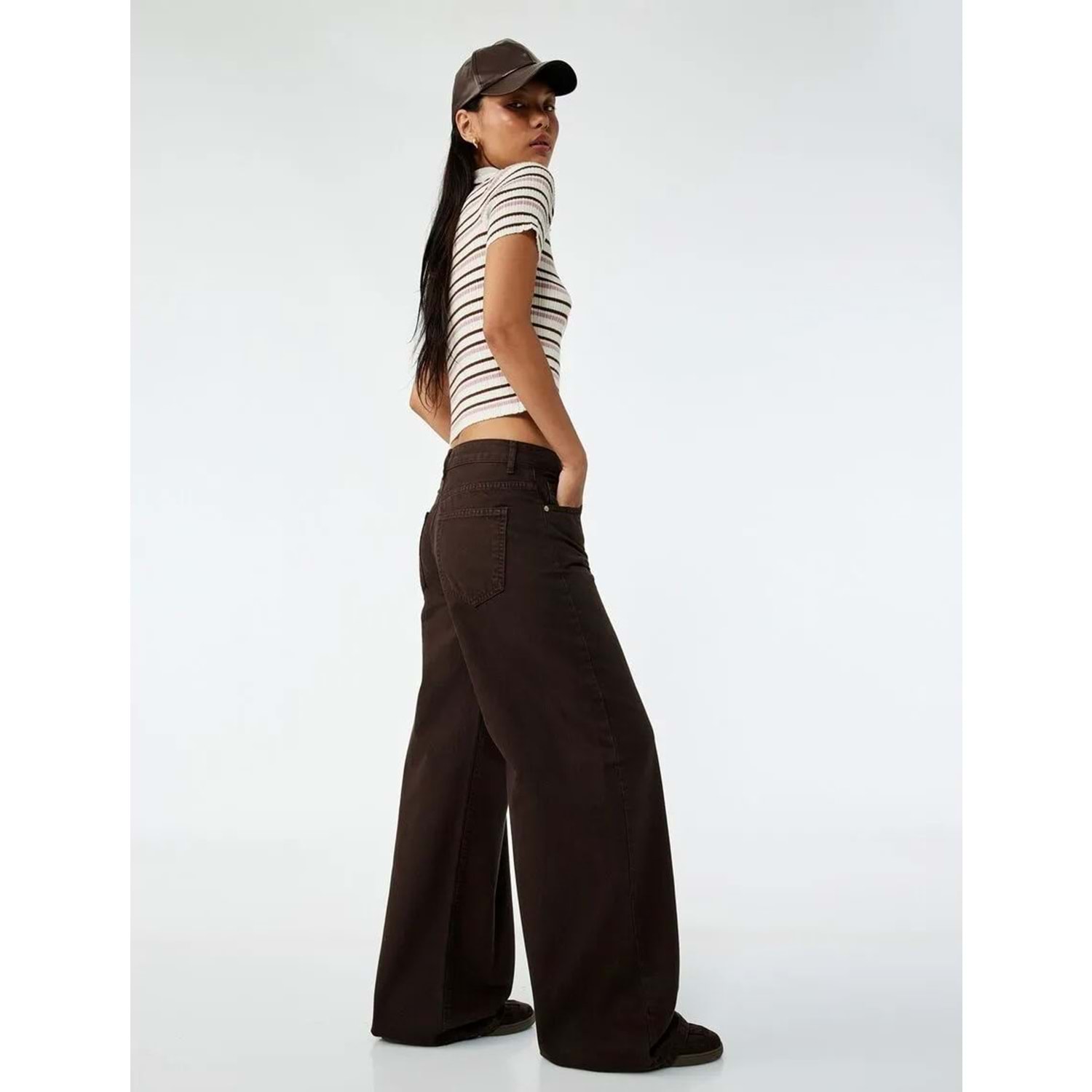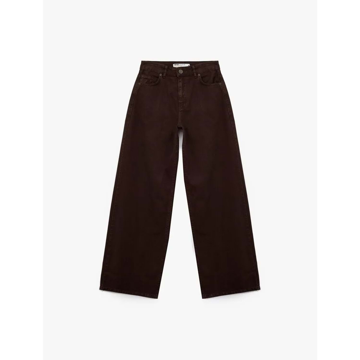Kadın Giyim Pamuklu Bol Kesim Geniş Paça Jean Pantolon - Loose Straight Fit Jean - KOTON - 6WAL40016MW - KAHVERENGİ - 36
