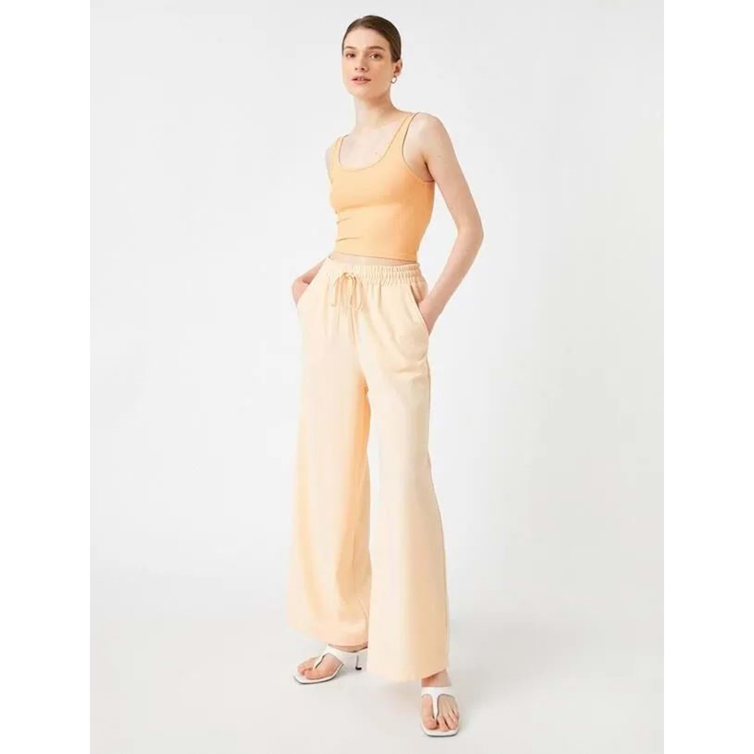 Kadın Giyim Pantolon Bol Paça Cepli Beli Bağlamalı 2SAK40073CW Turuncu
