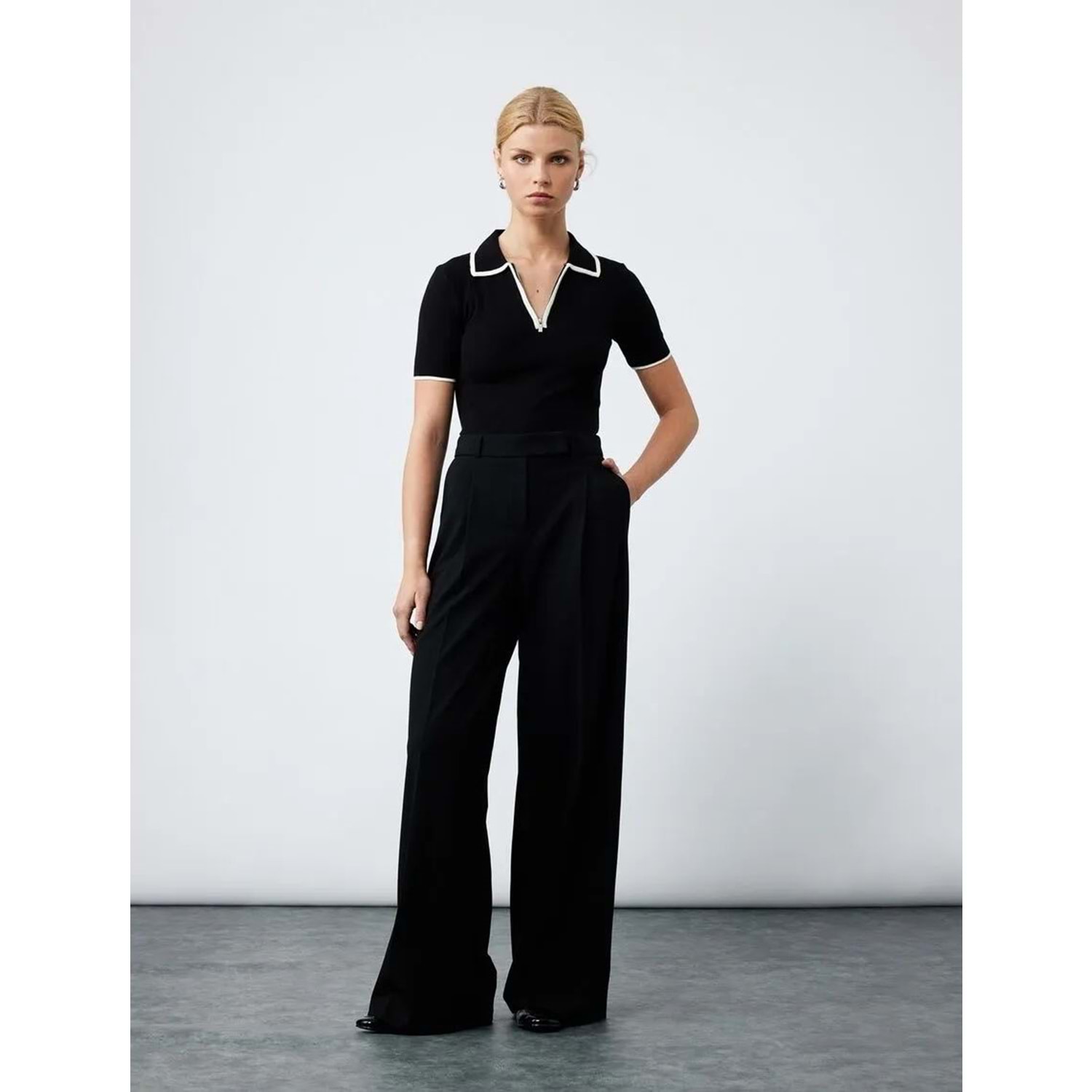 Kadın Giyim Pile Detaylı Cepli Yüksek Bel Palazzo Pantolon - KOTON - 6WAK40055UW - SİYAH - 40