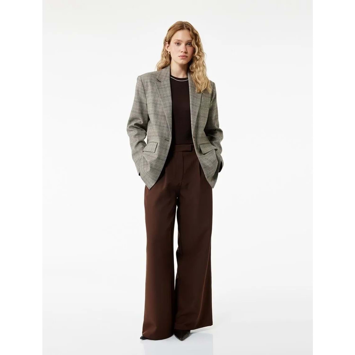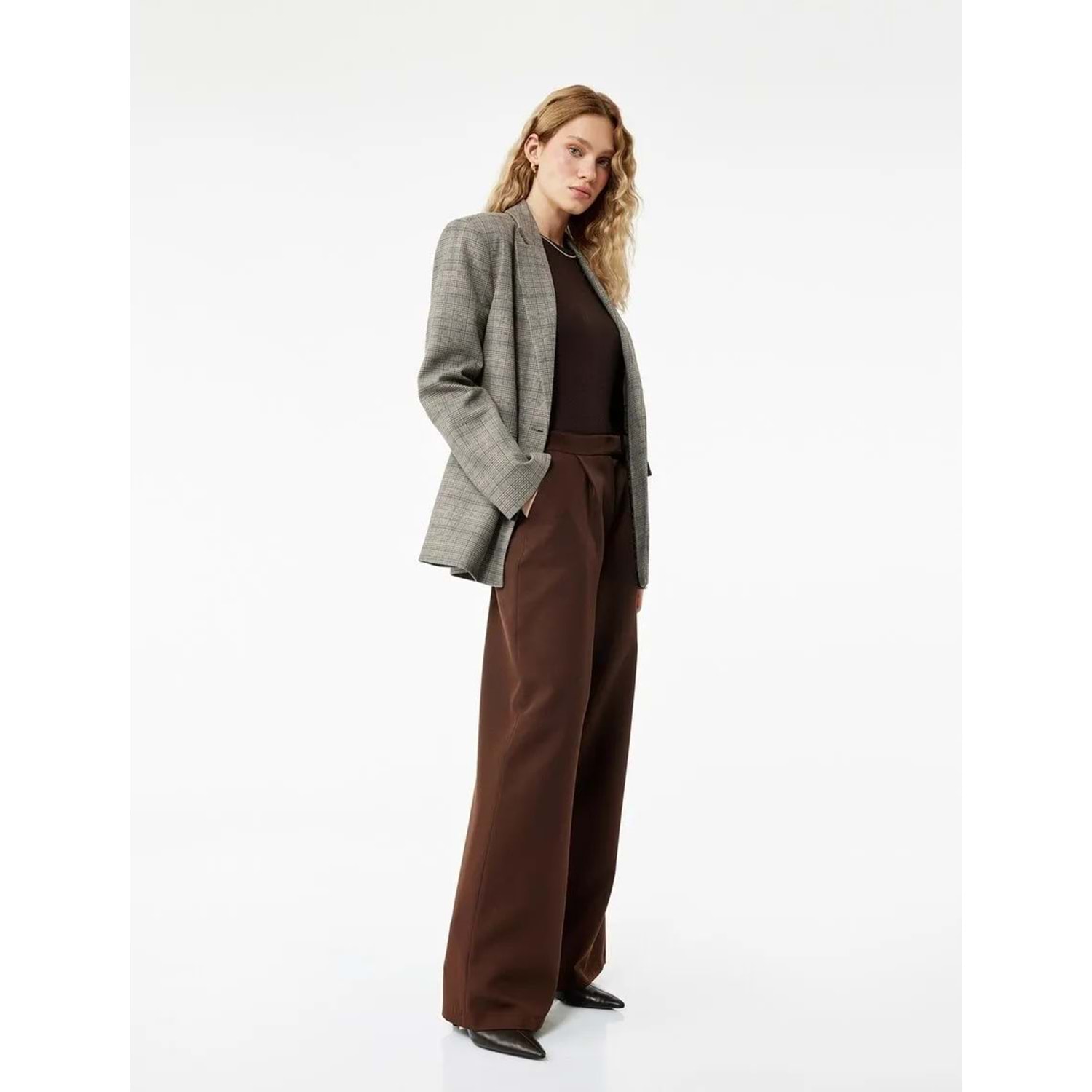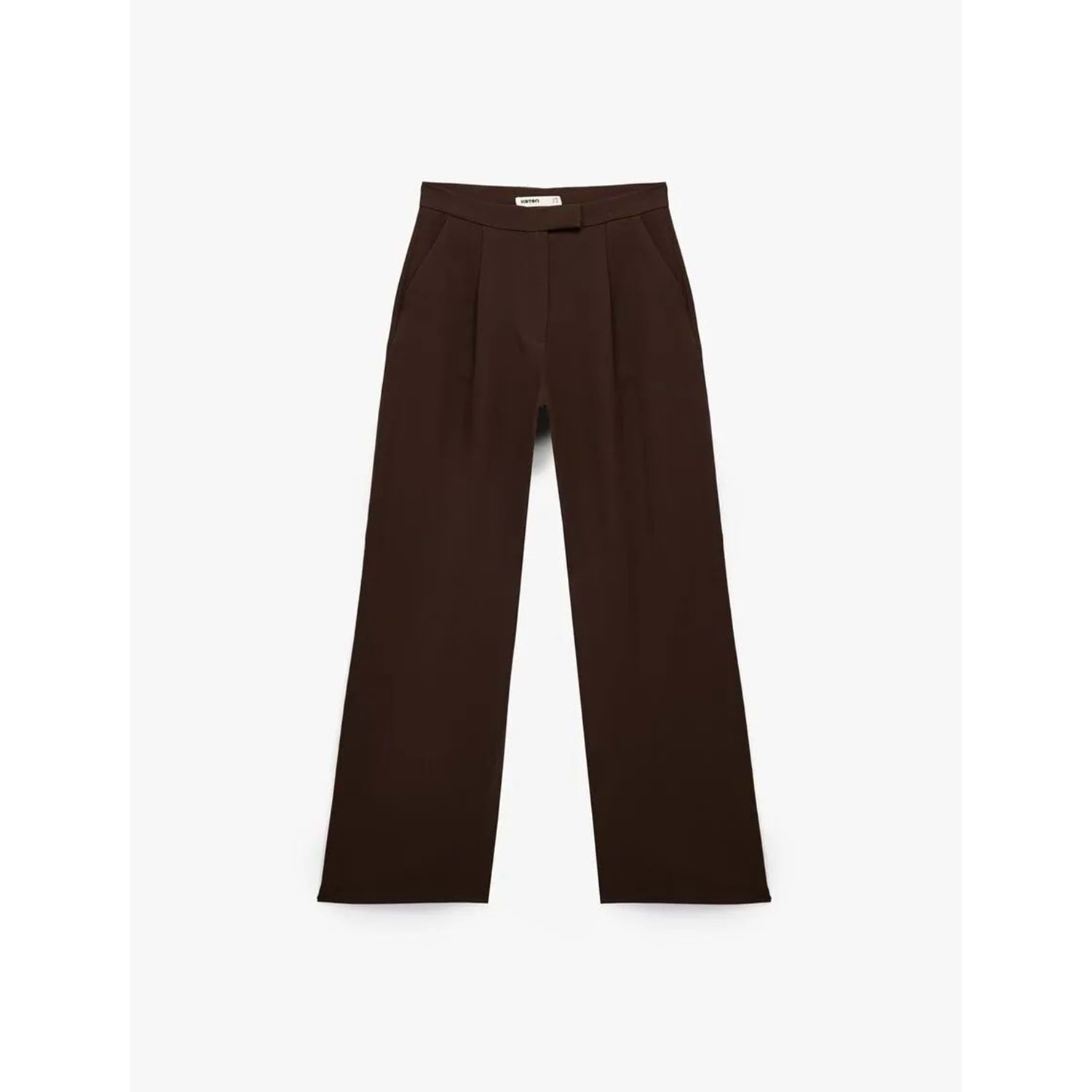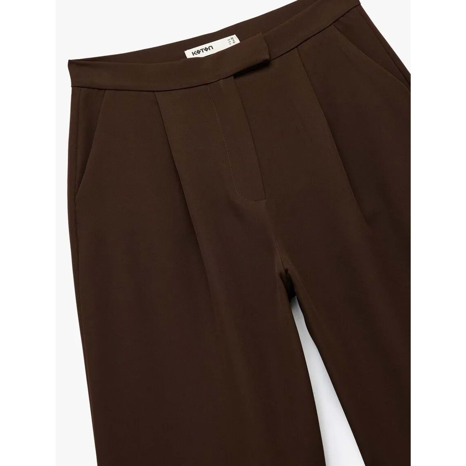 Kadın Giyim Pileli Cepli Uzun Geniş Paça Palazzo Pantolon - KOTON - 6WAK40155PW - KAHVERENGİ - 38