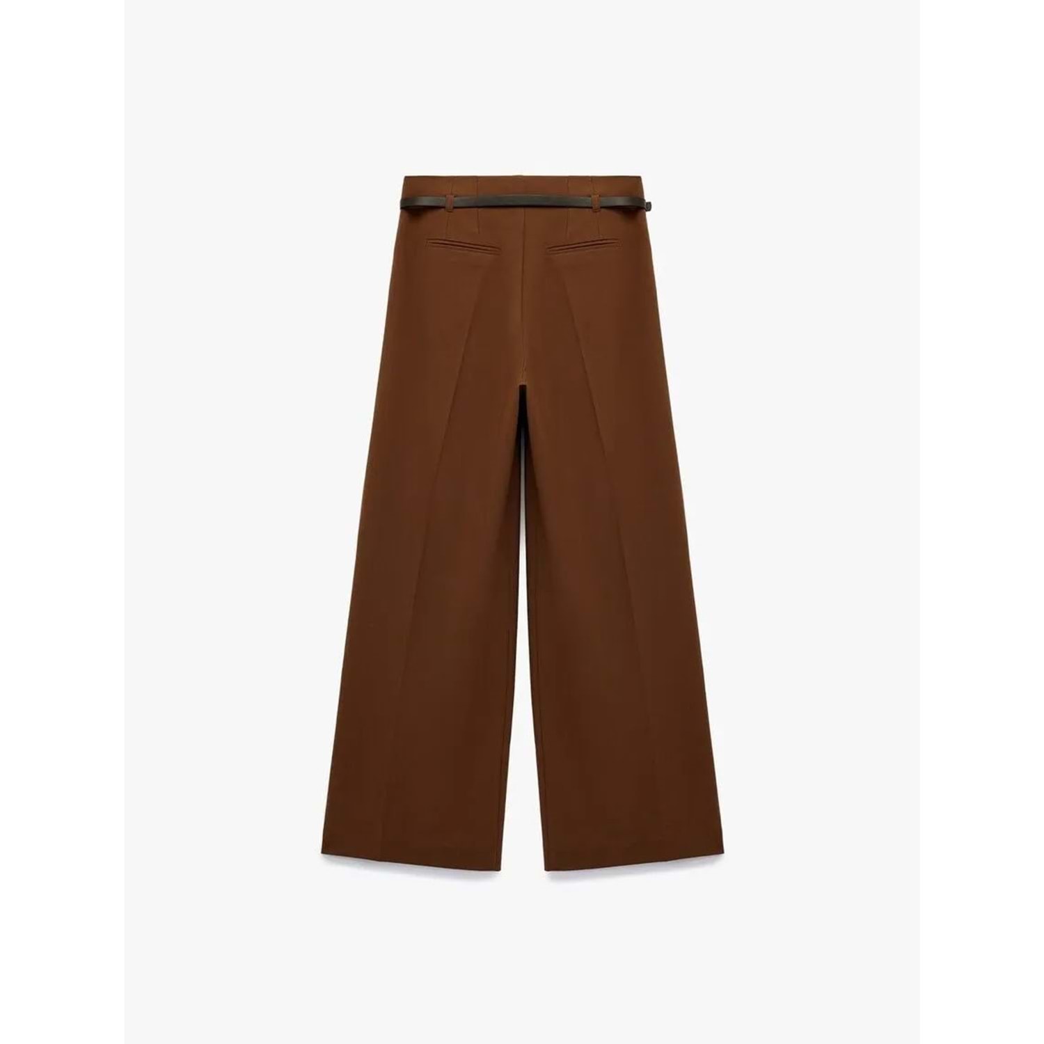 Kadın Giyim Pileli Kemerli Geniş Paça Palazzo Kumaş Pantolon - KOTON - 6WAK40090PW - DEVE TÜYÜ - 36