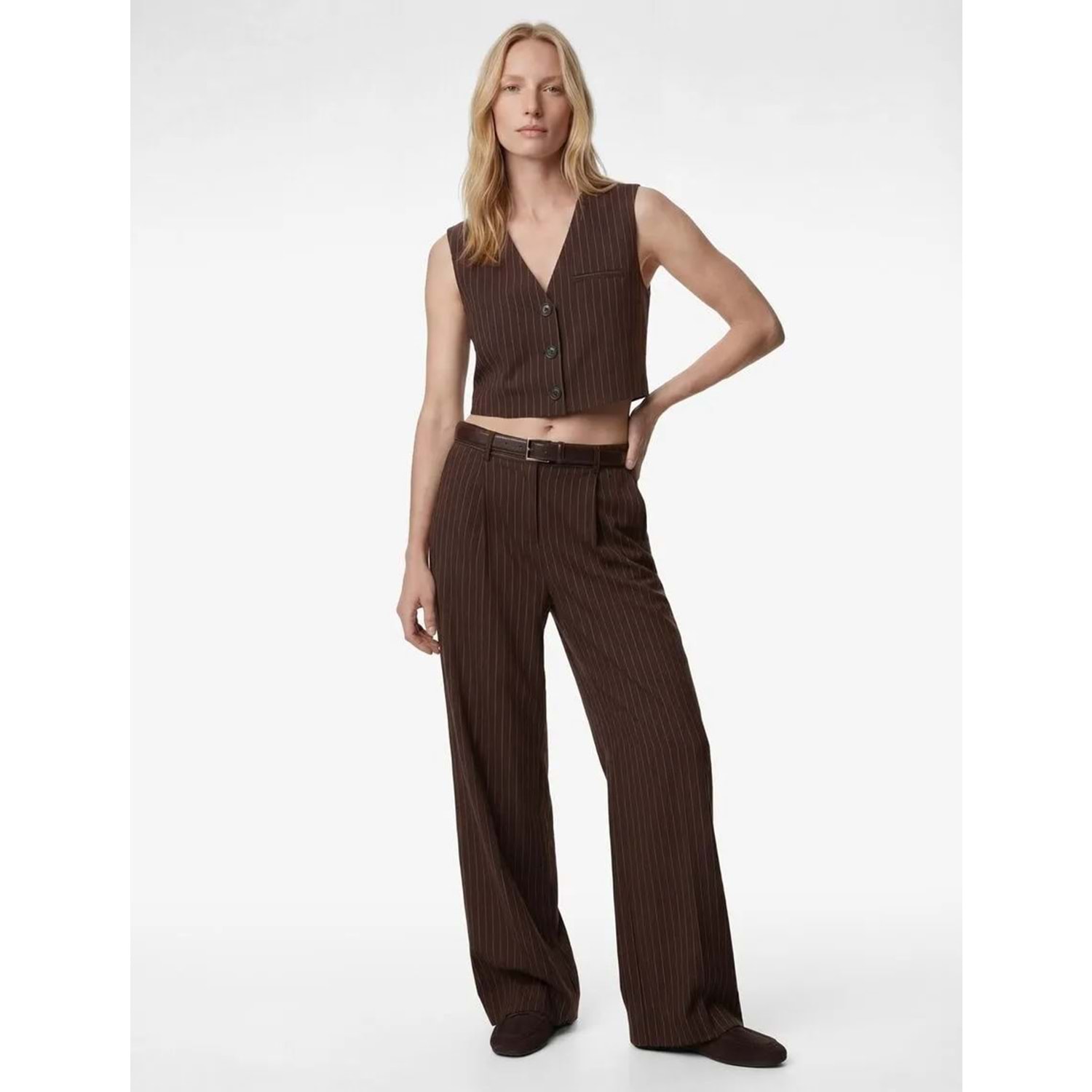Kadın Giyim Pileli Viskon Karışımlı Geniş Paça Çizgili Pantolon - KOTON - 6SAK40129PW - KAHVERENGİ ÇİZGİLİ - 40