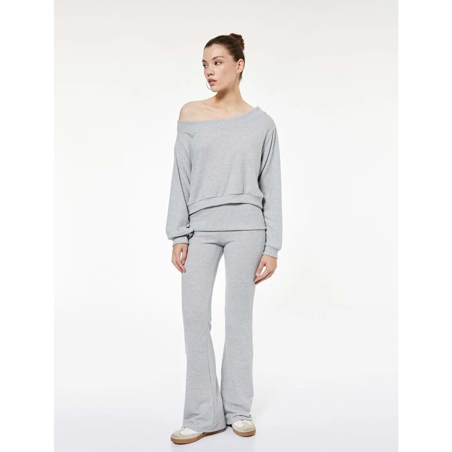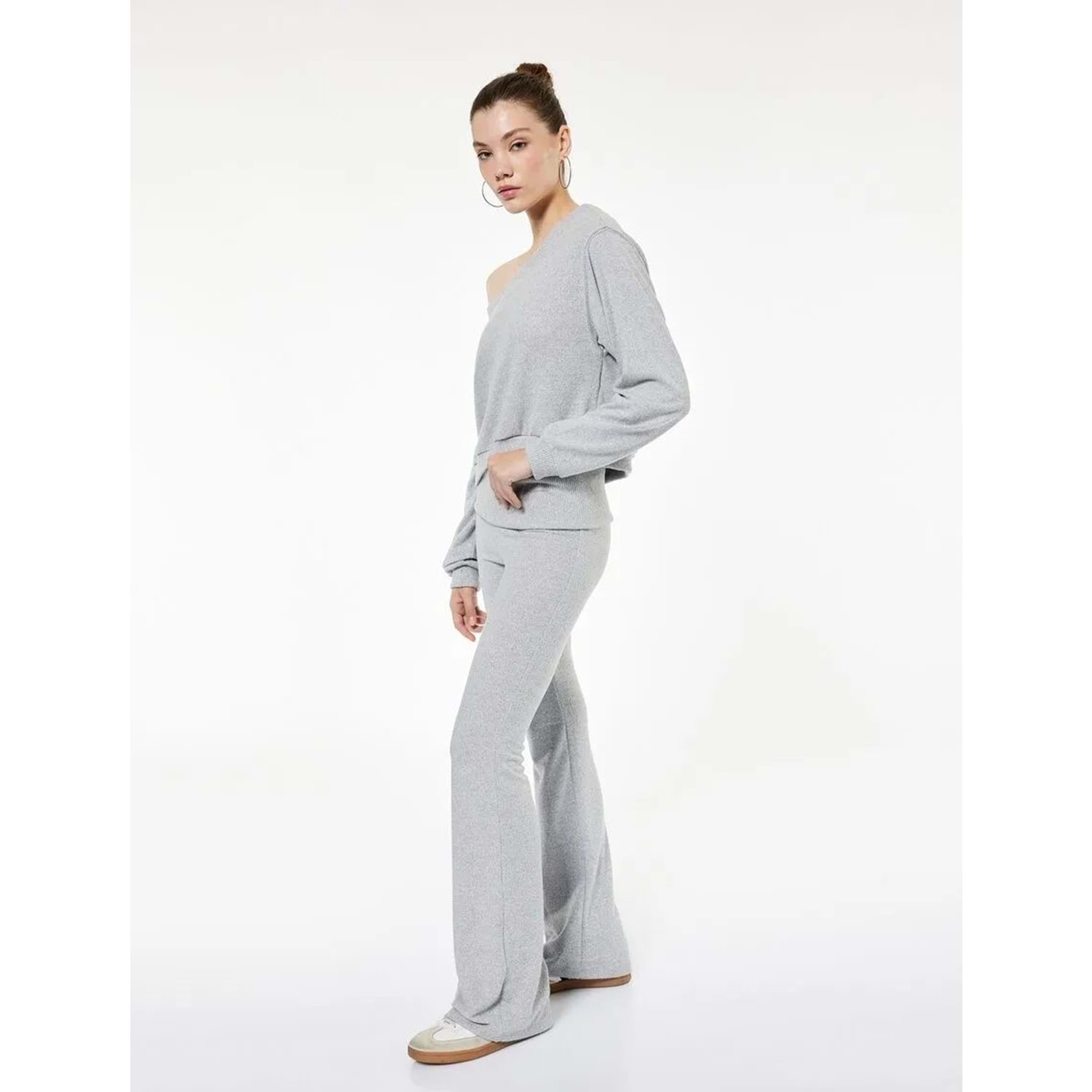 Kadın Giyim Viskon Karışımlı Yüksek Bel İspanyol Paça Tayt Pantolon - KOTON - 6WAL40029IK - GRİ - L