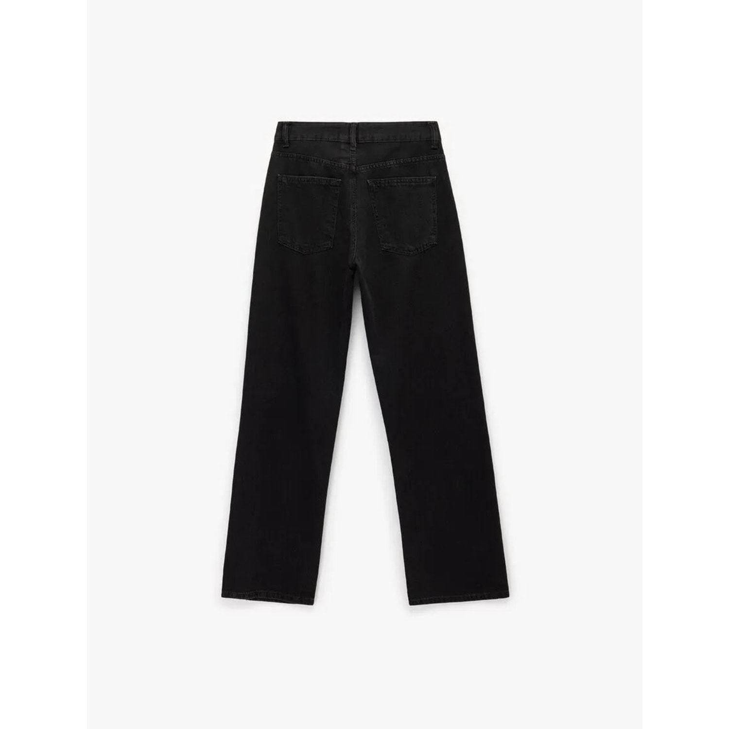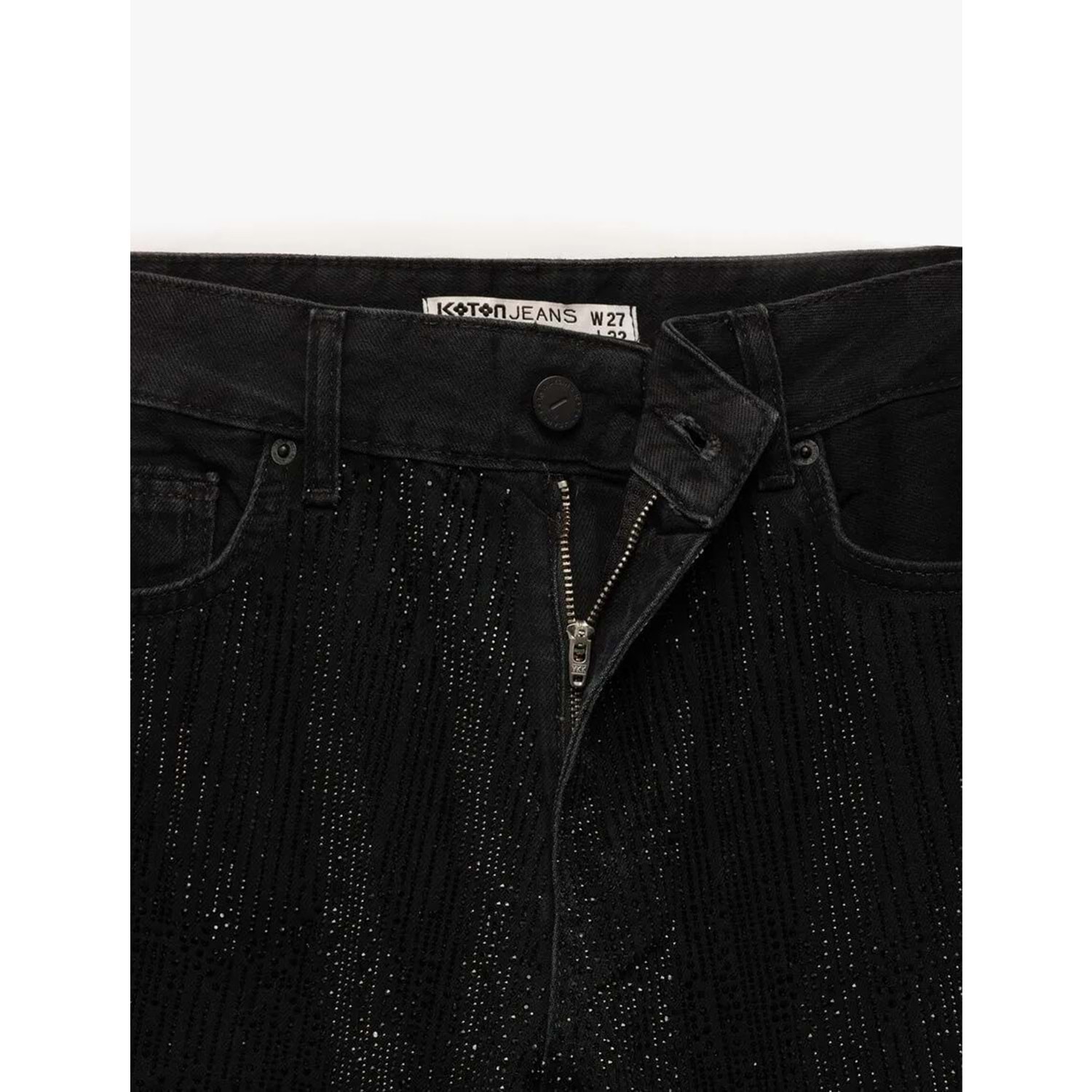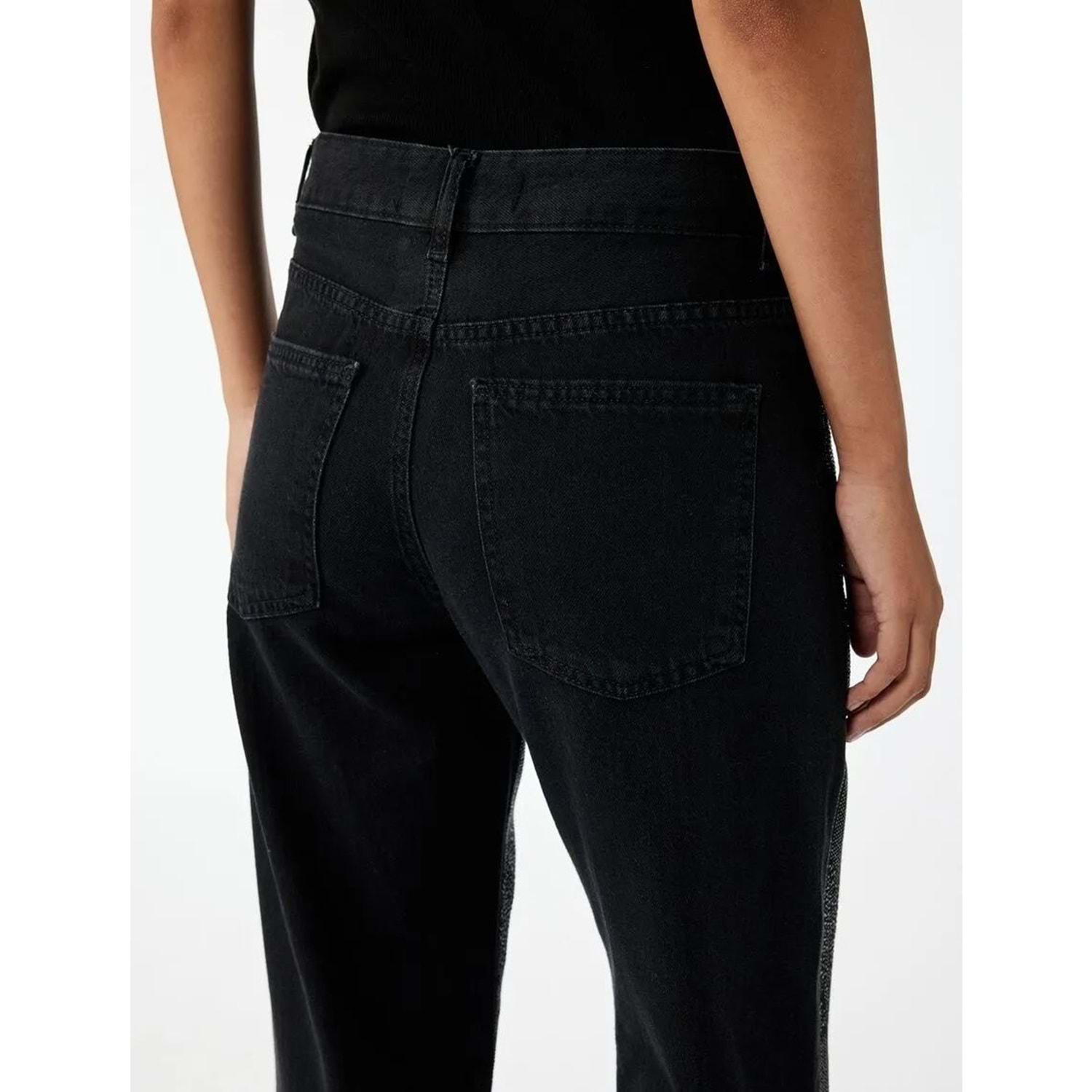 Kadın Giyim Yüksek Bel Taş Detaylı Düz Paça Jean Pantolon - Straight Fit Jean - KOTON - 6WAL40020MD - SİYAH - 26/32