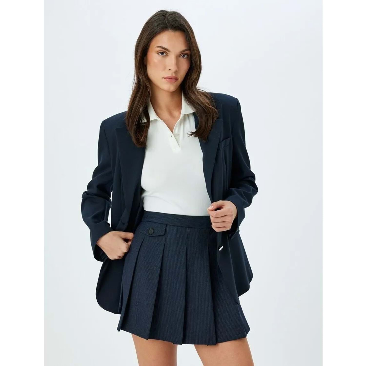 Pileli Yüksek Bel Mini Şort Etek 5SAK70020UW - KOTON - LACİVERT - 34