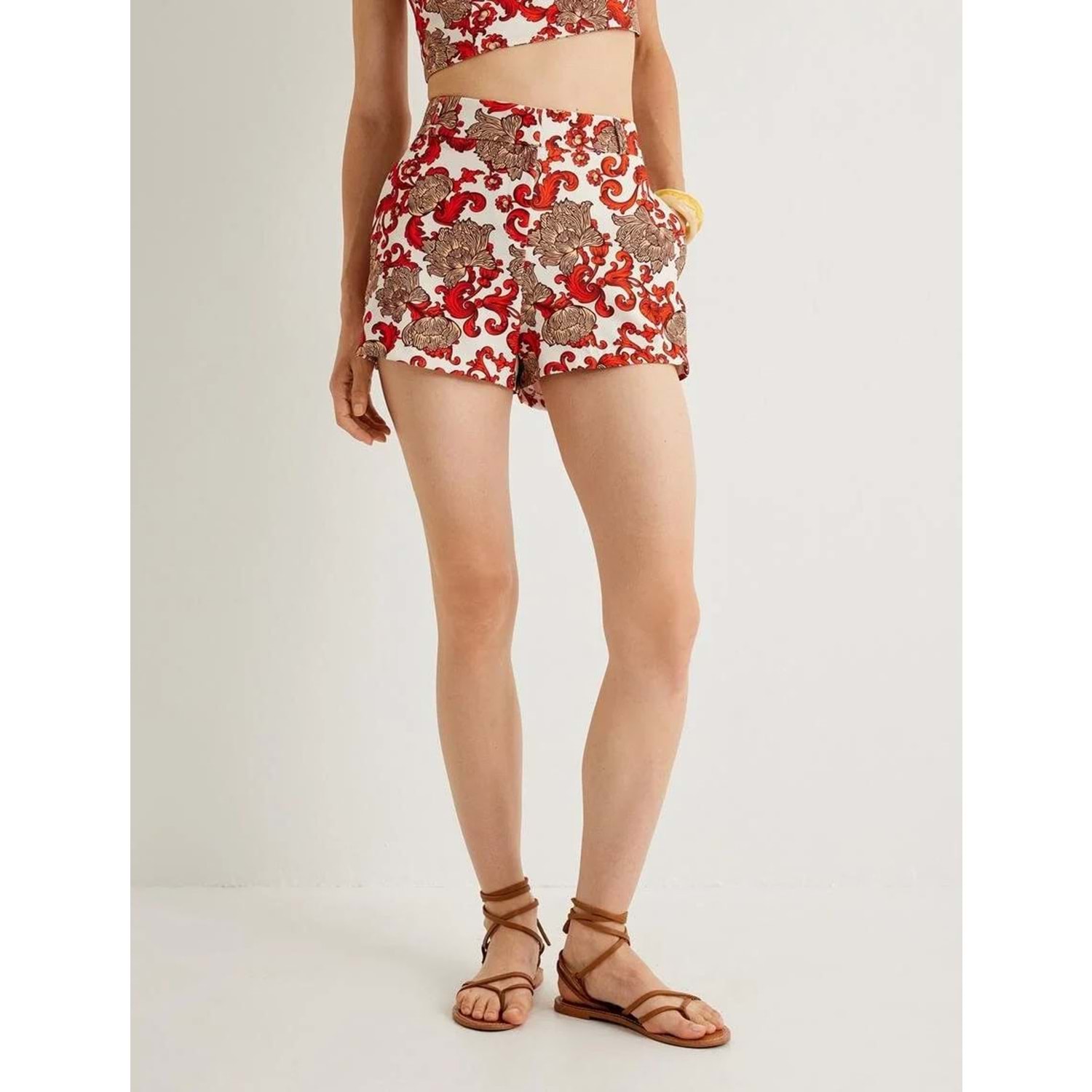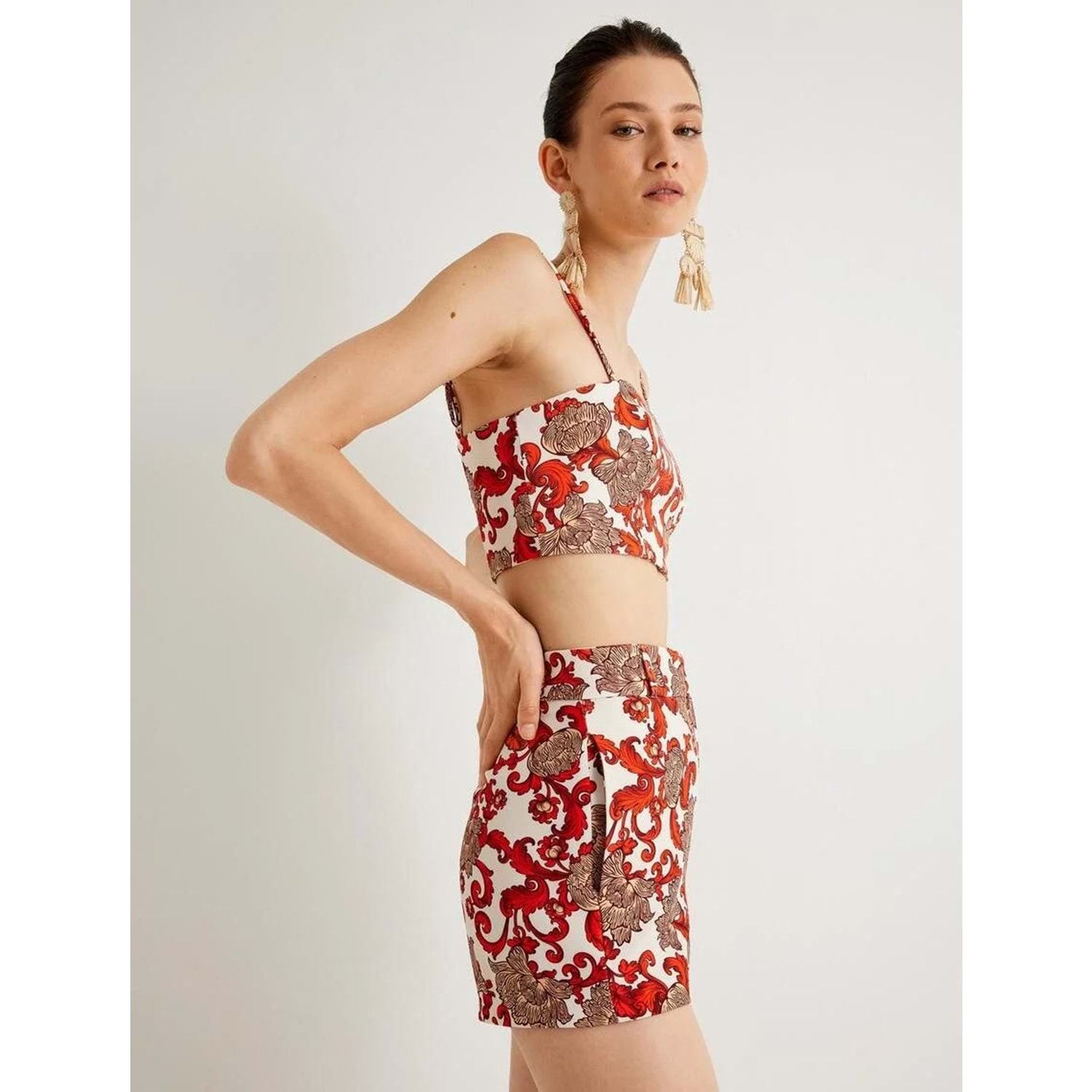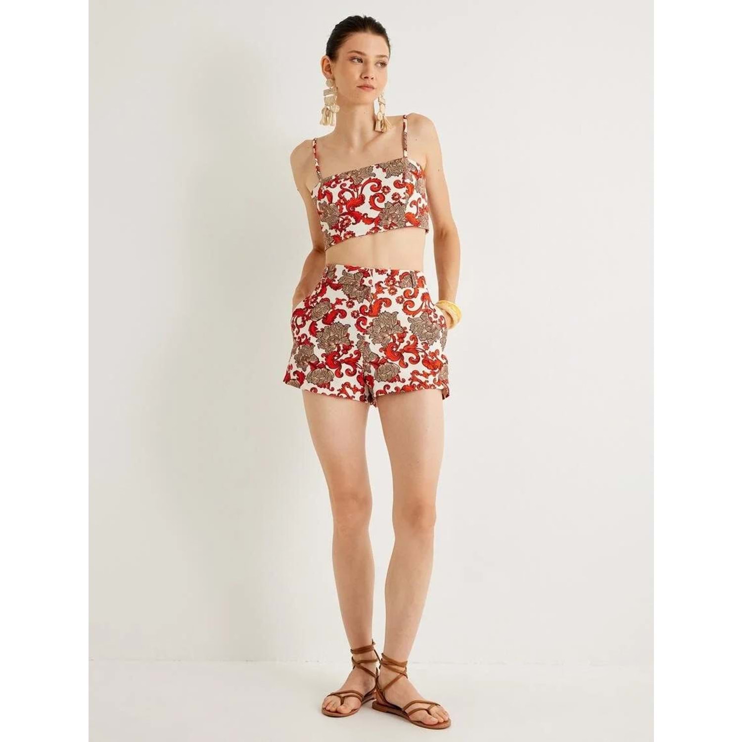 Koton X Melis Ağazat - Çiçekli Mini Şort Yüksek Bel Cepli - KOTON - 4SAK40180EW - TURUNCU DESENLİ - 42