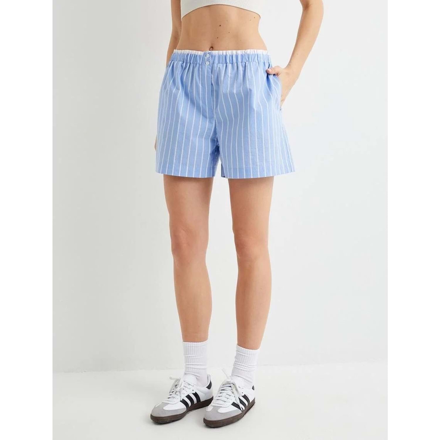 Mini Şort Cepli Beli Çift Lastik Detaylı - KOTON - 4SAK40068EW - MAVİ ÇİZGİLİ - 36