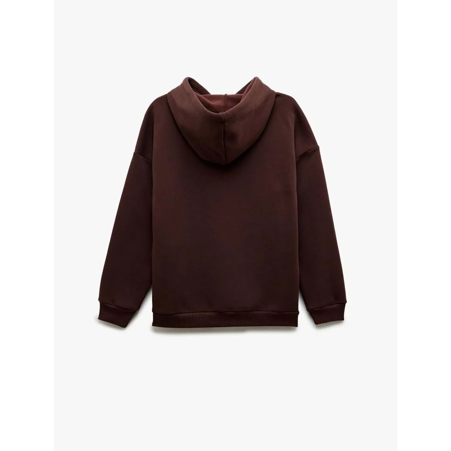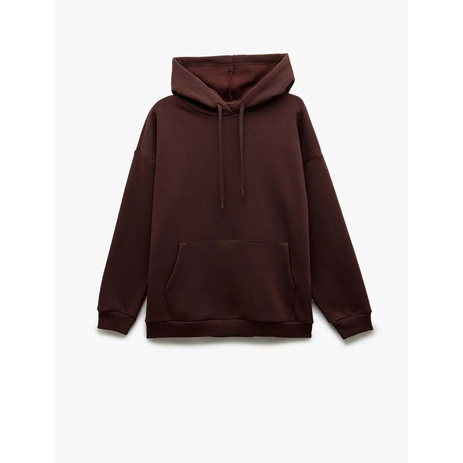 Kadın Giyim Üç İplik Şardonlu Kanguru Cepli Basic Kapüşonlu Sweatshirt - KOTON - 6WAL10224IK - KAHVERENGİ - S