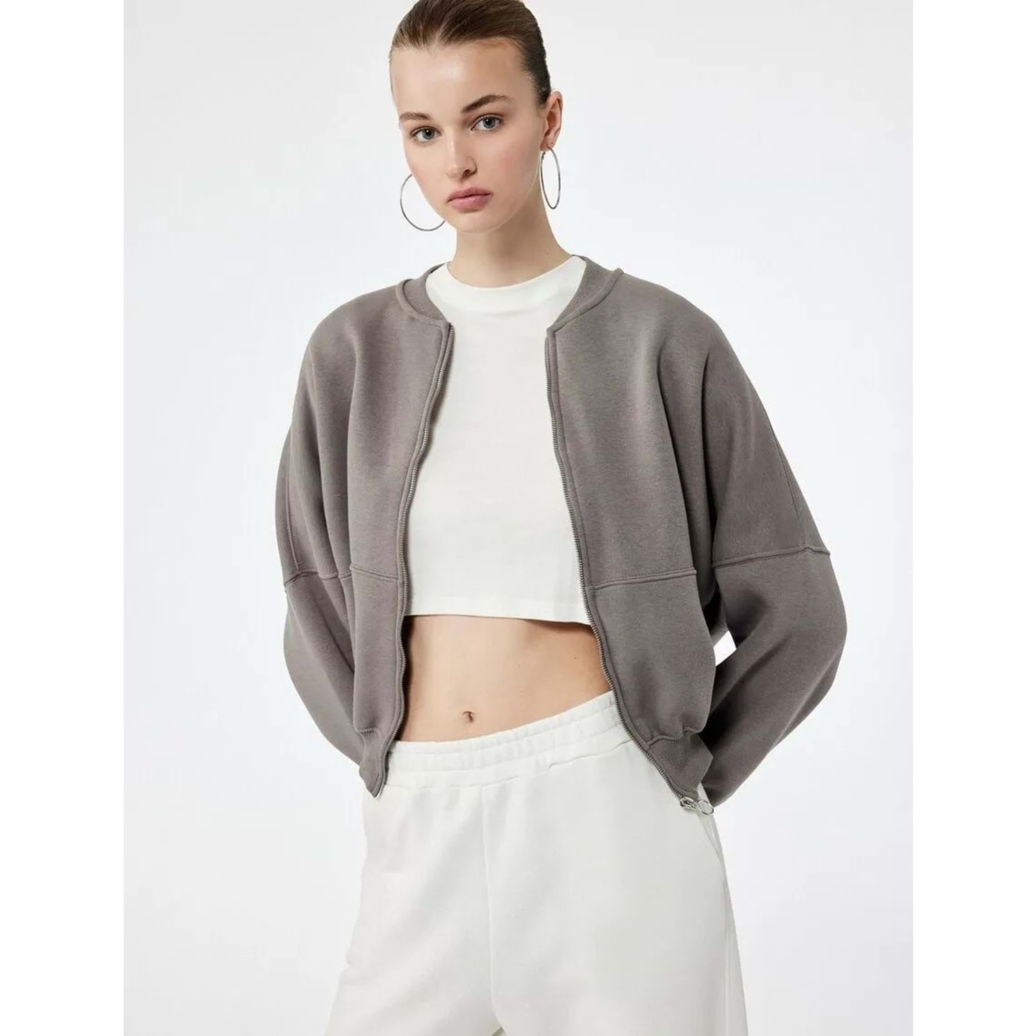 Kadın Giyim Üç İplik Şardonlu Uzun Kollu Fermuarlı Bomber Yaka Sweatshirt - KOTON - 6WAL10126IK - GRİ - M
