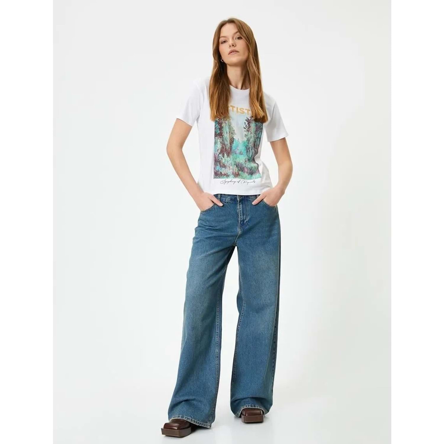 Baskılı Tişört Bisiklet Yaka Kısa Kollu Pamuklu - KOTON - 4SAK50081EK - BEYAZ - XL