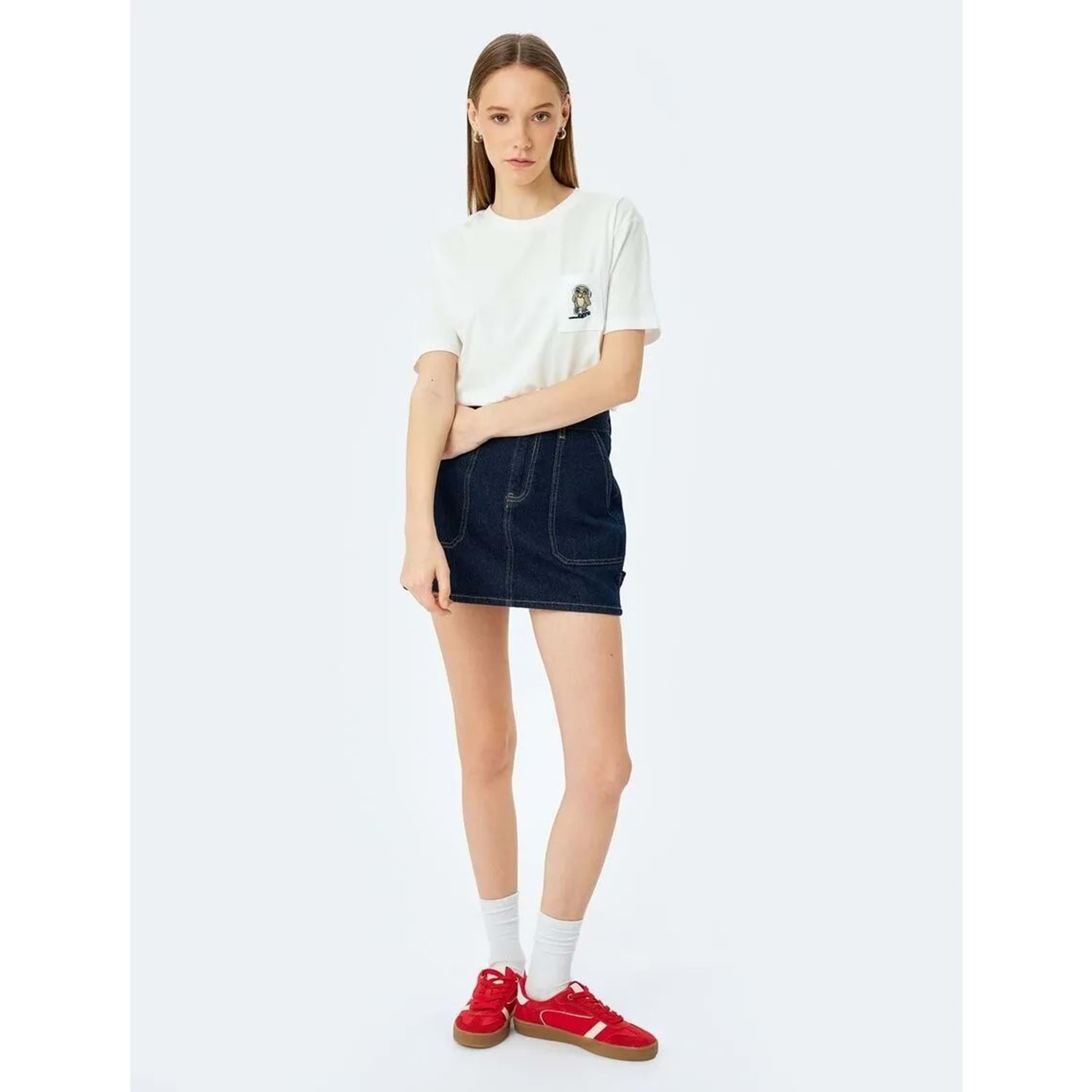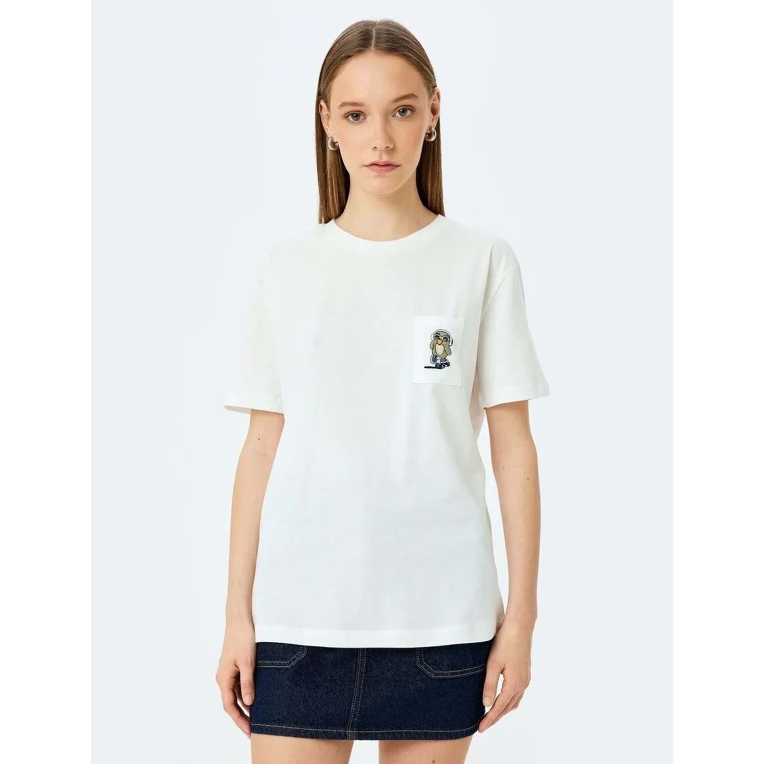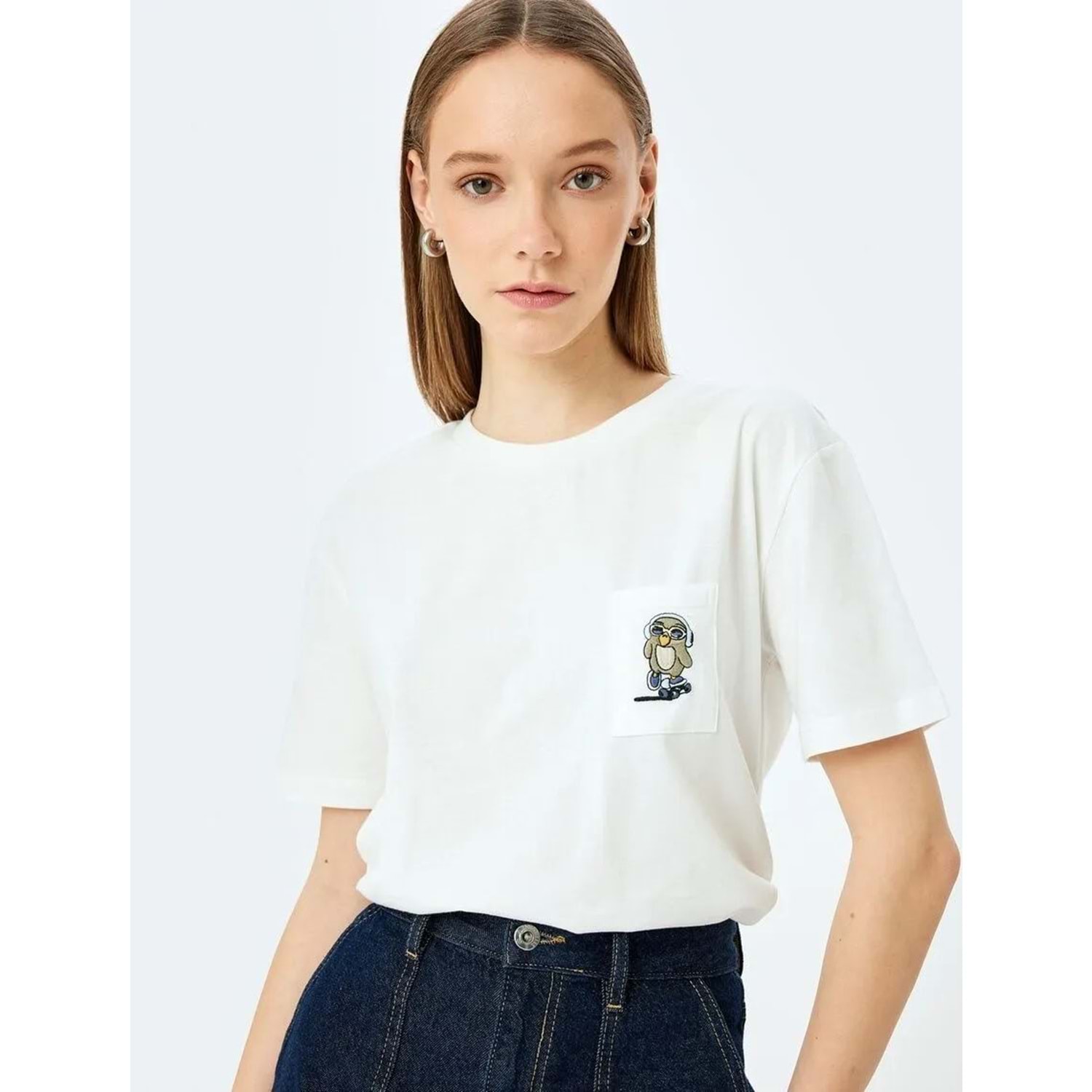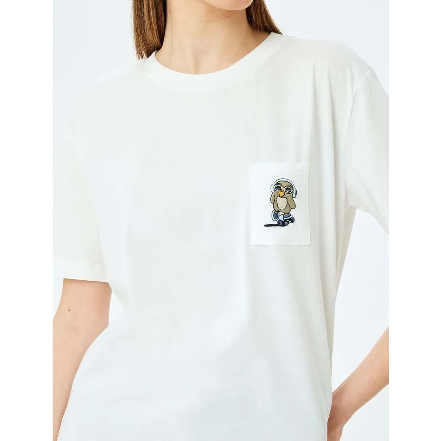 Cep Detaylı Nakışlı Kısa Kollu Bisiklet Yaka Tişört 5SAL10232IK