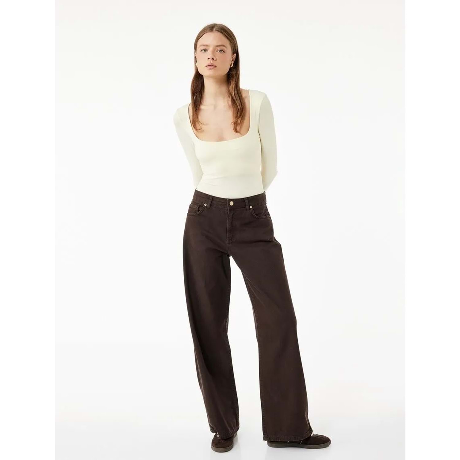 Kadın Giyim Kare Yaka Uzun Kollu Slim Fit Çıtçıtlı Body - KOTON - 6WAL10267IK - SARI - S