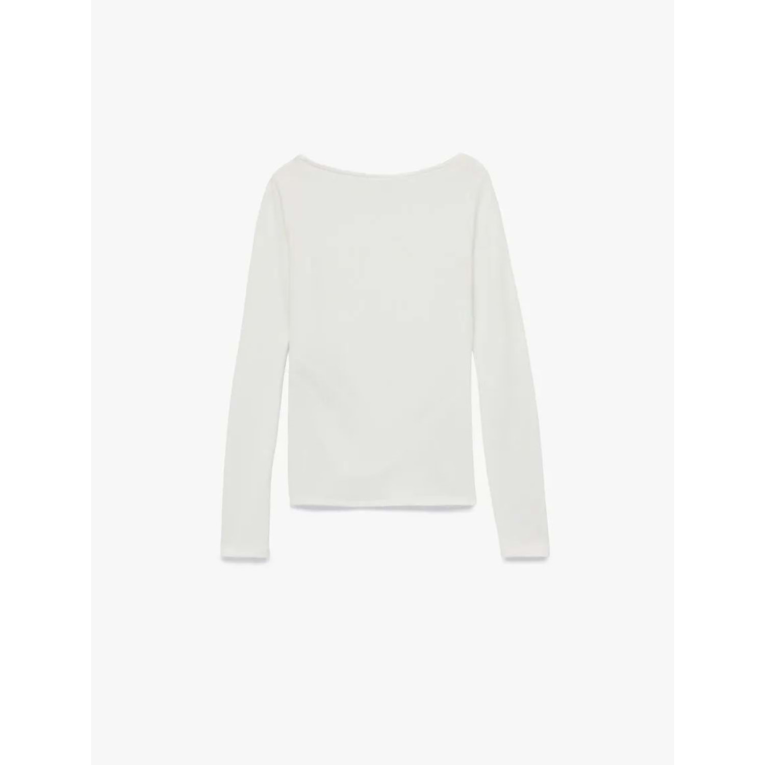 Kadın Giyim Kayık Yaka Drapeli Slim Fit Viskon Karışımlı Yırtmaçlı Uzun Kollu Tişört - KOTON - 6WAL10216IK - EKRU - M