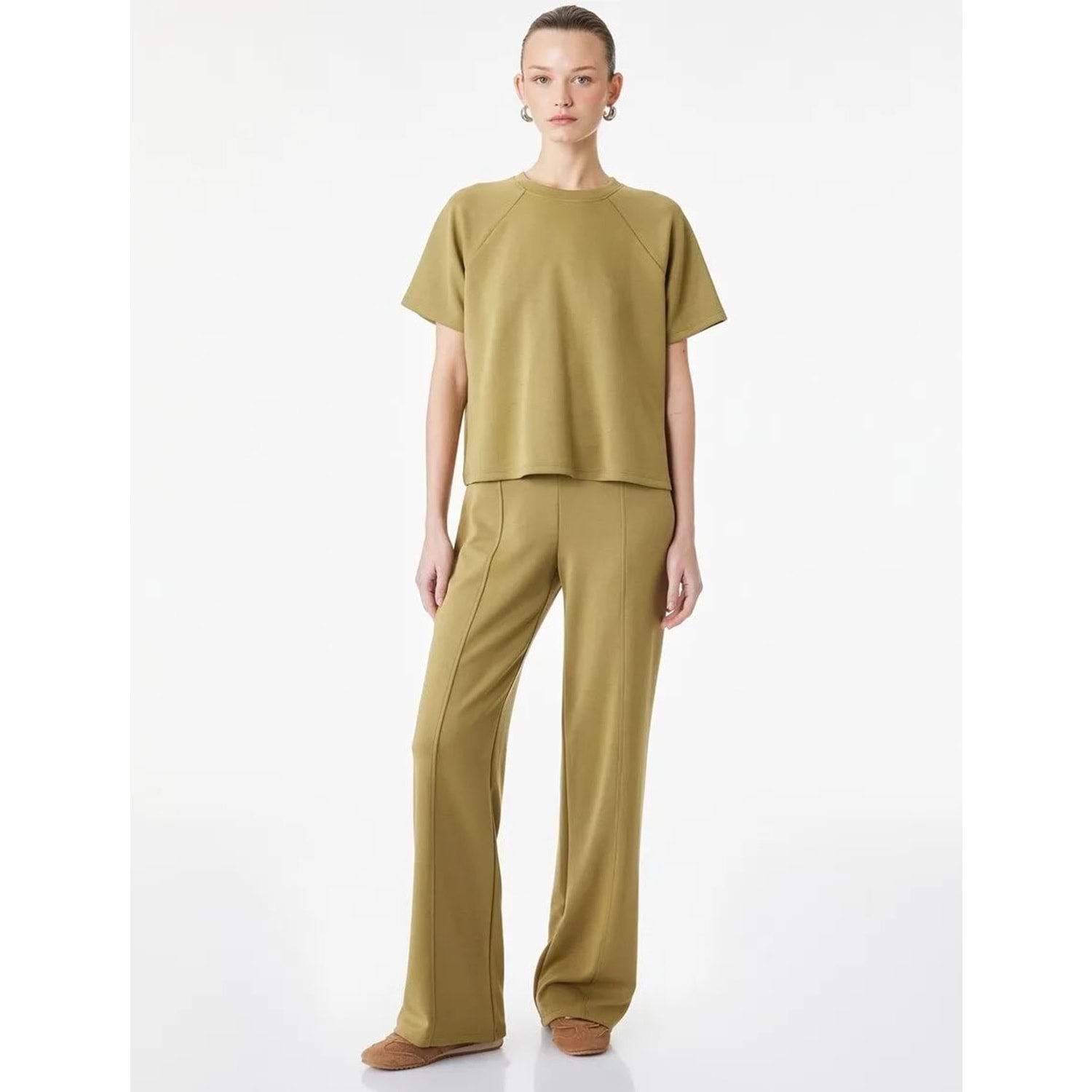 Kadın Giyim Modal Kumaş Kısa Kollu Bisiklet Yaka Tişört - KOTON - 6SAK50243EK - YEŞİL - M