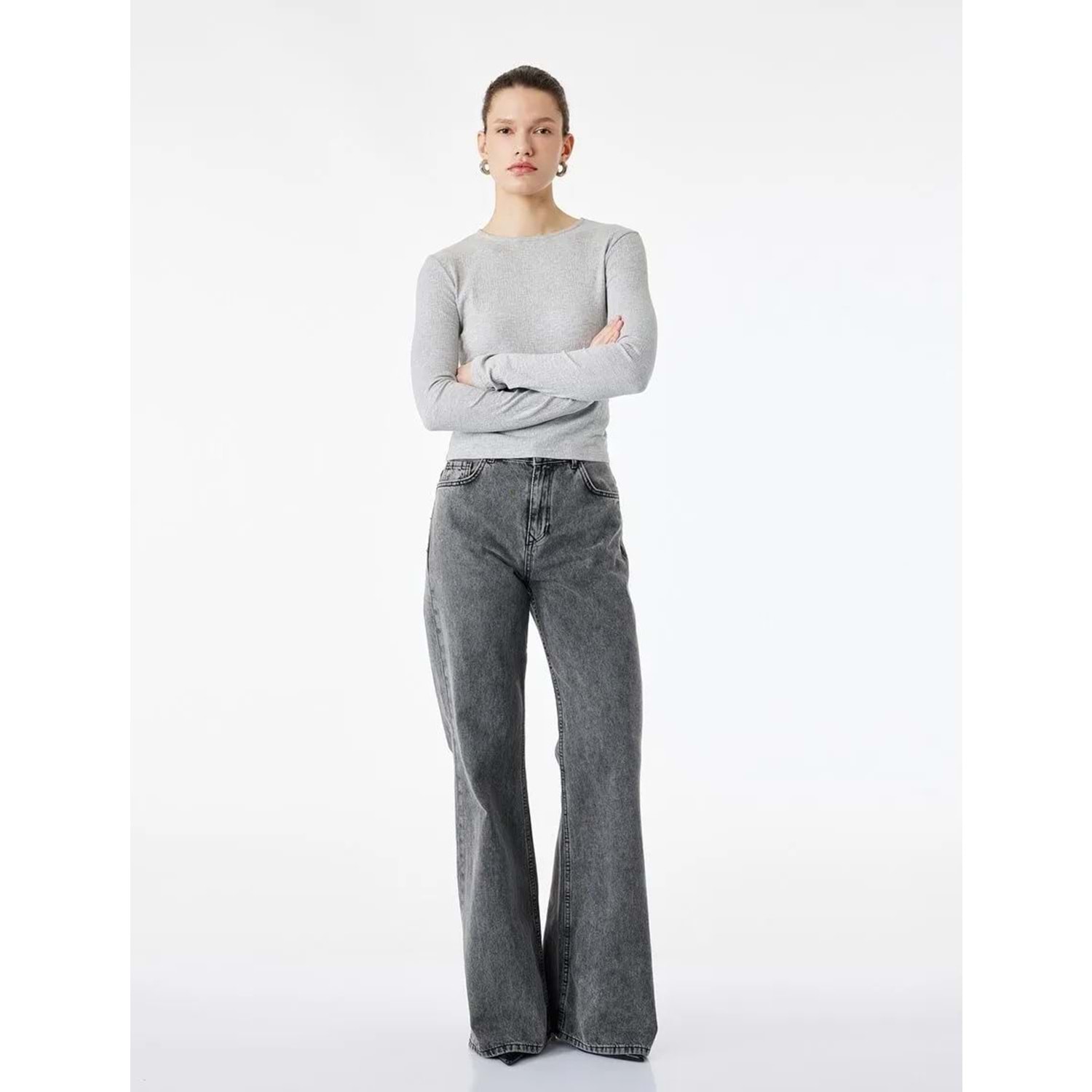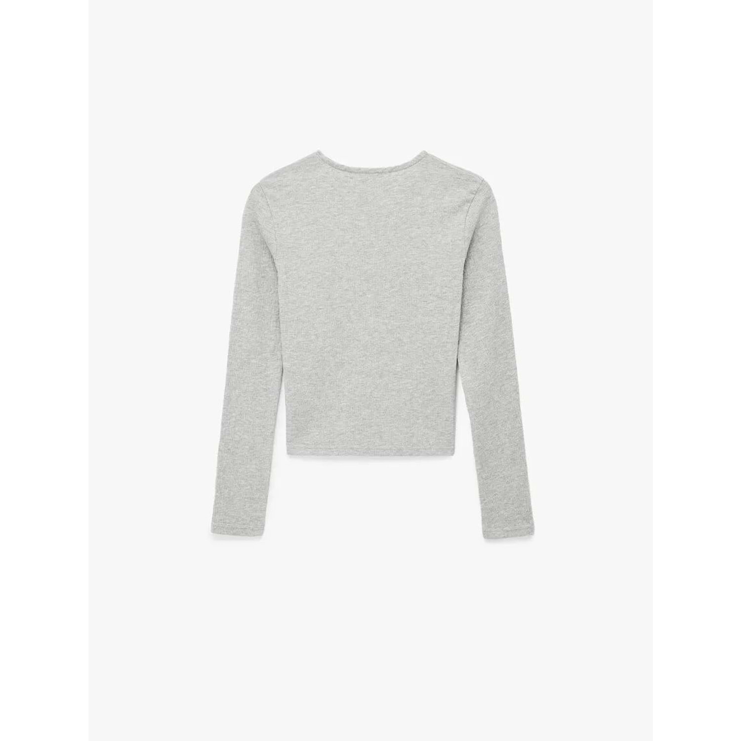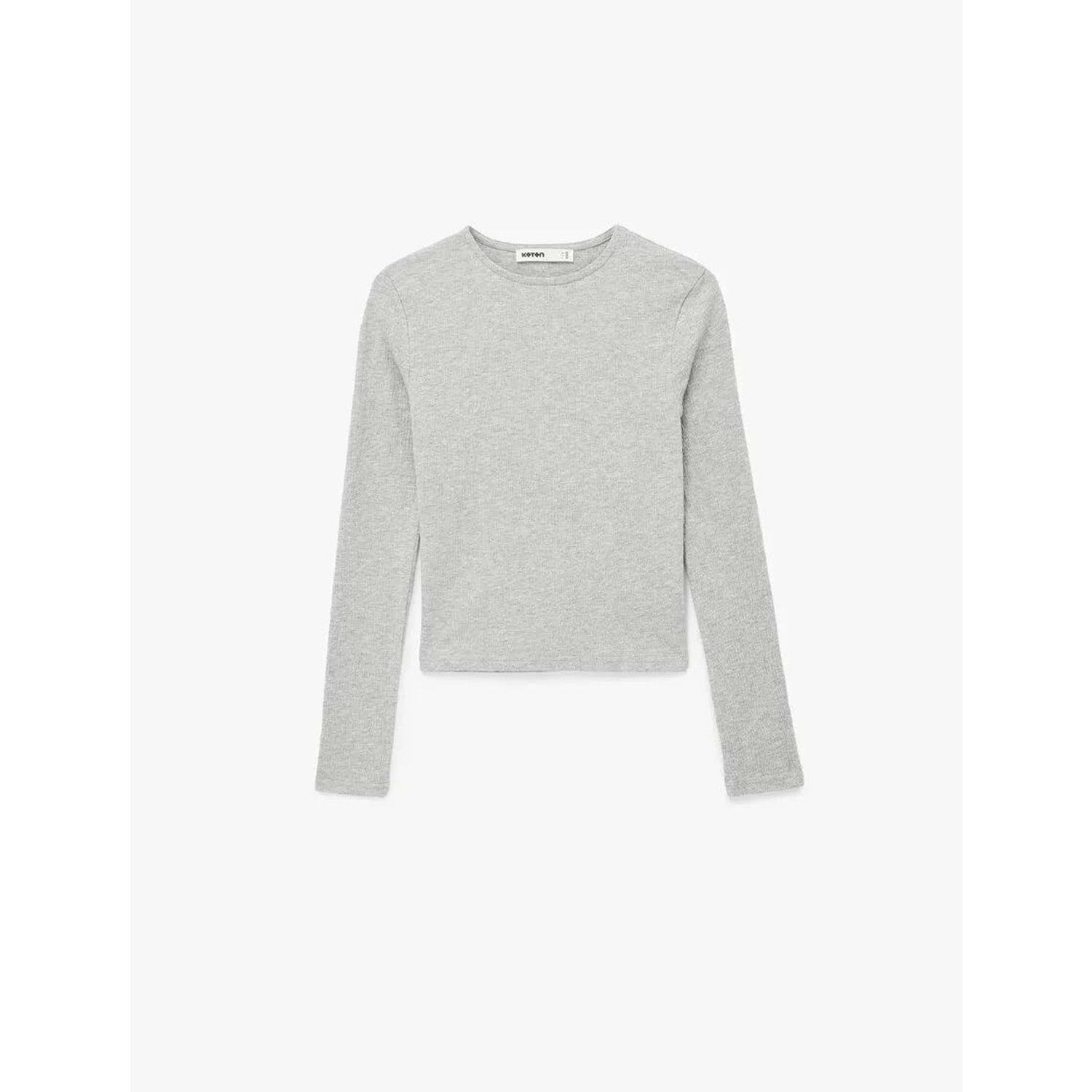 Kadın Giyim Slim Fit Uzun Kollu Bisiklet Yaka Basic Tişört - KOTON - 6SAK50342EK - GRİ - M