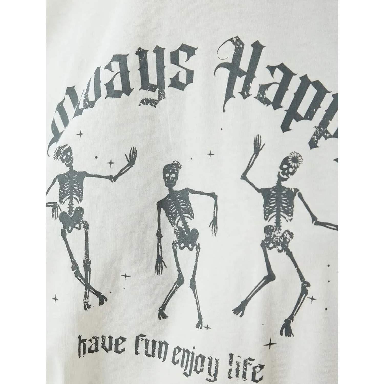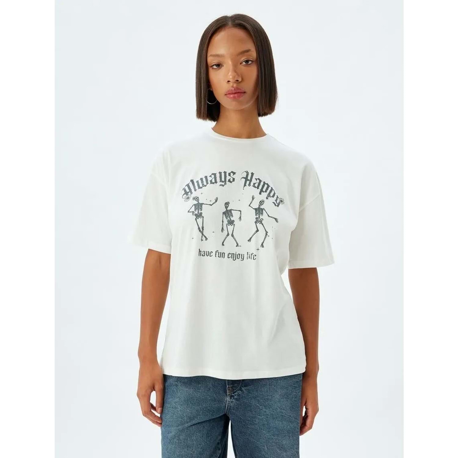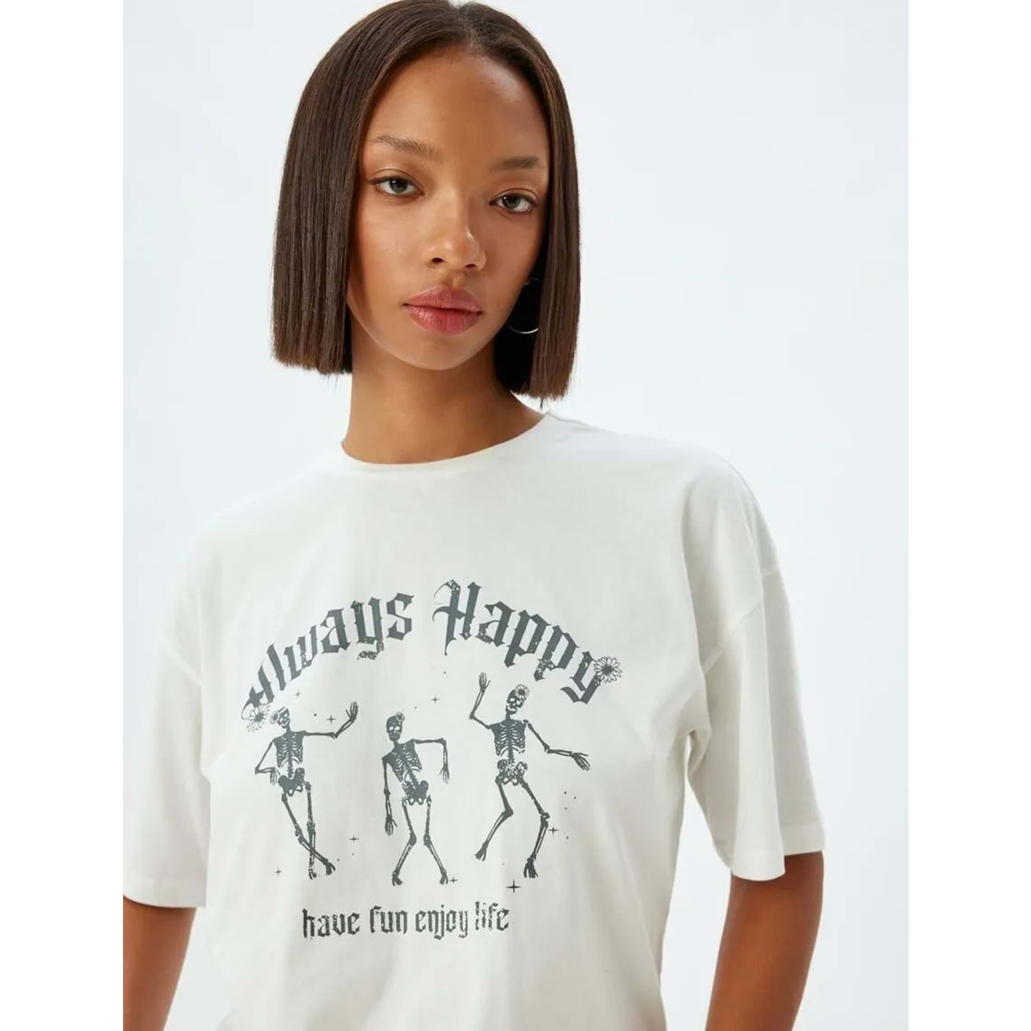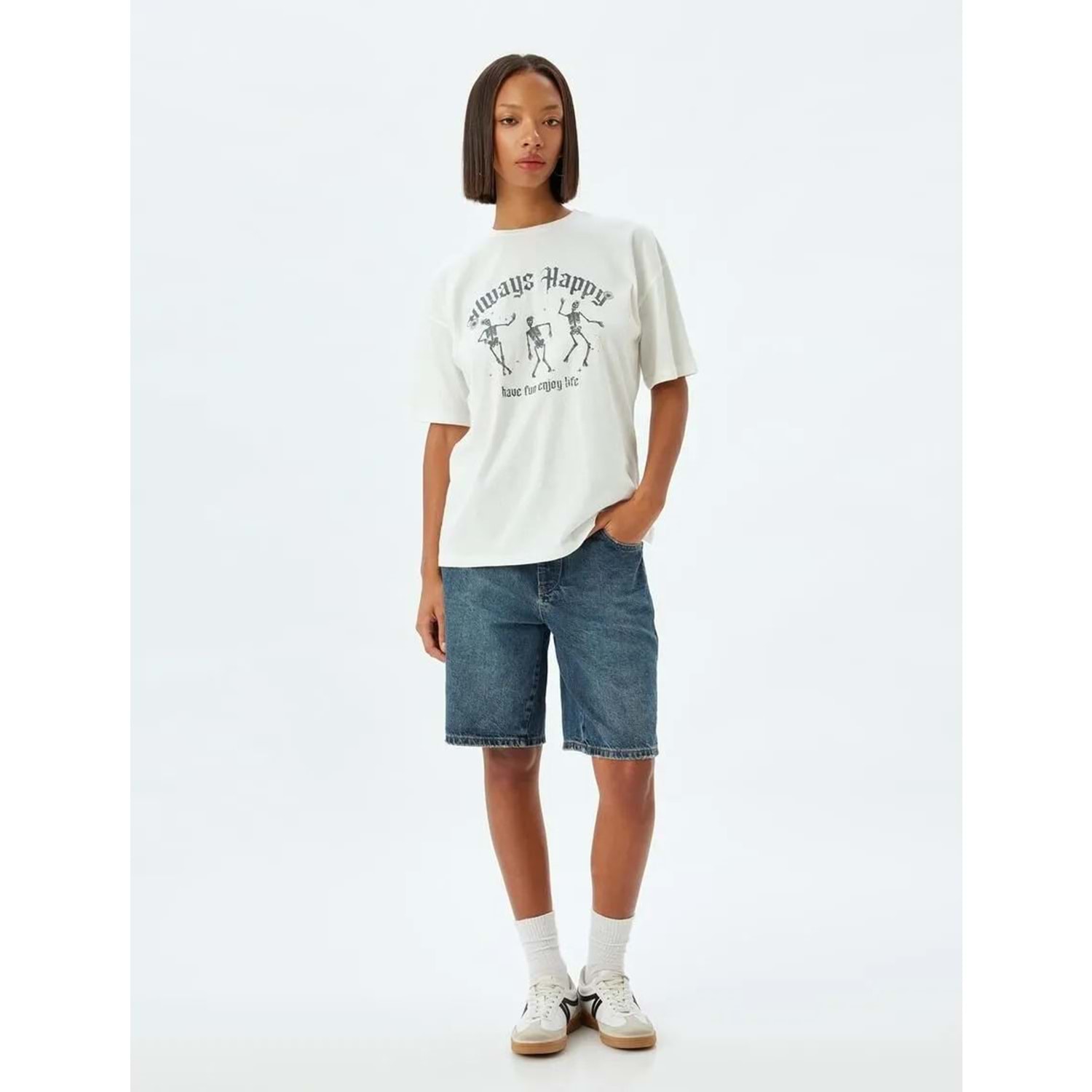 Oversize Tişört Slogan Baskılı Bisiklet Yaka Kısa Kollu Pamuklu 5SAL10234IK
