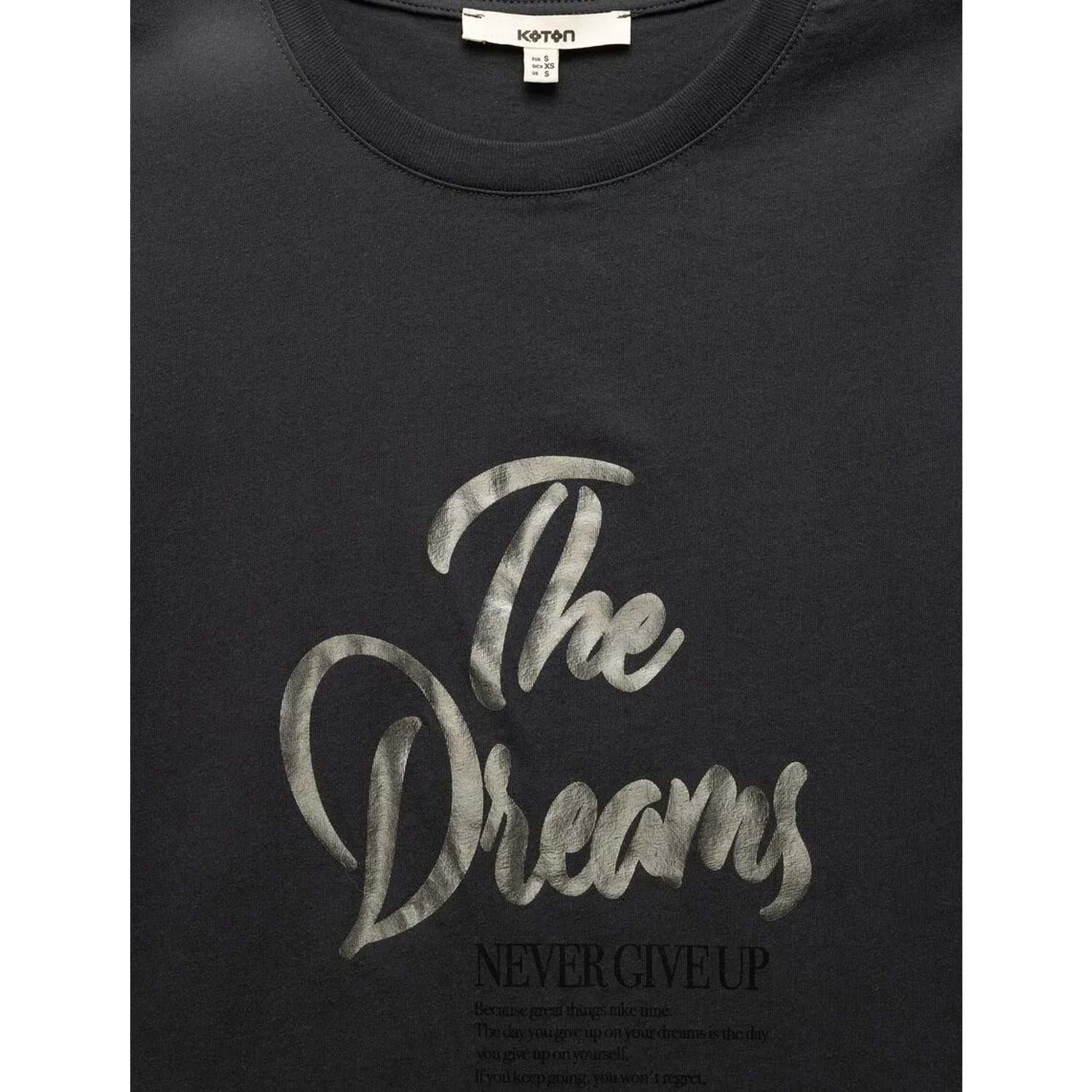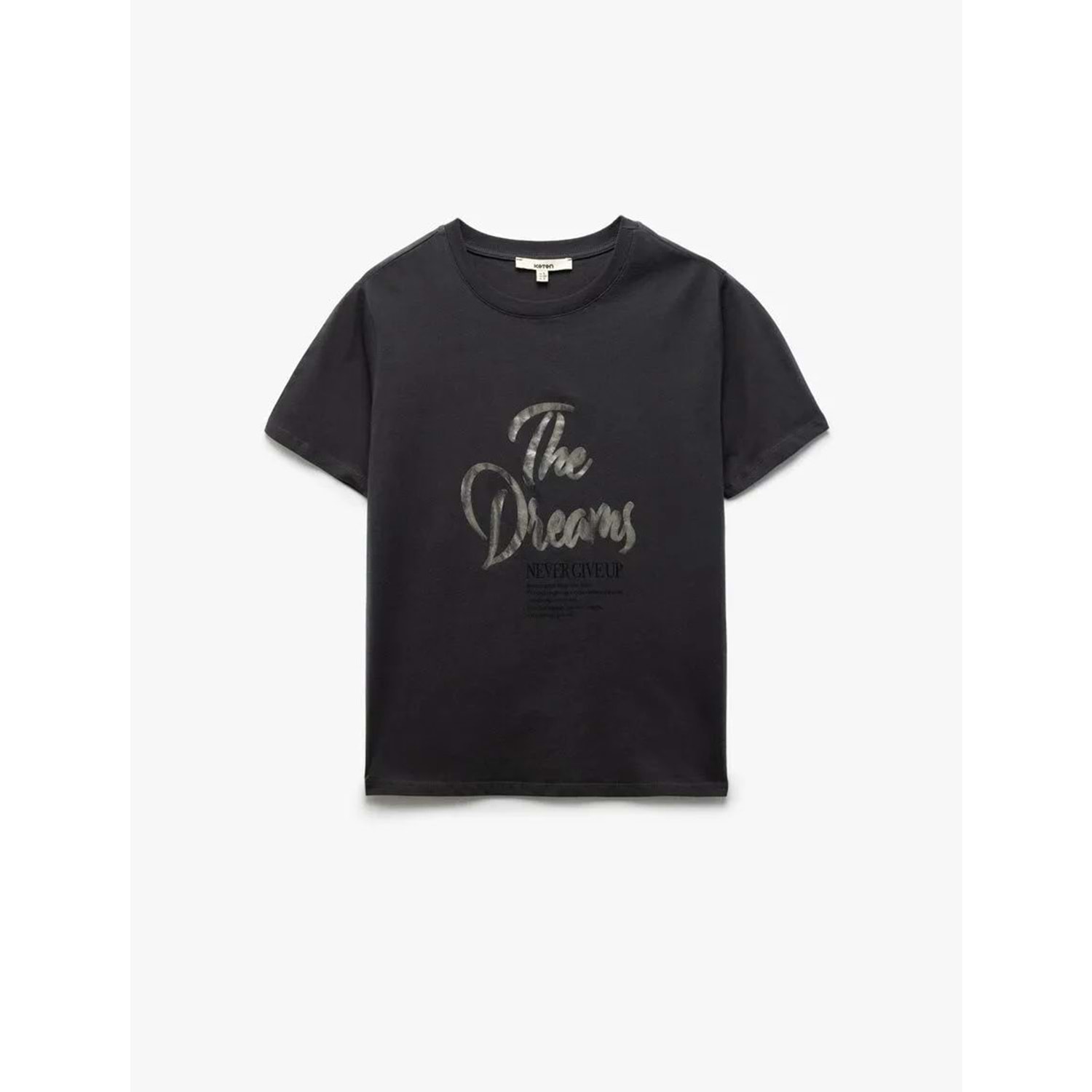 Pamuklu Kısa Kollu Bisiklet Yaka Baskılı Kadın Tişört 5SAK50121EK