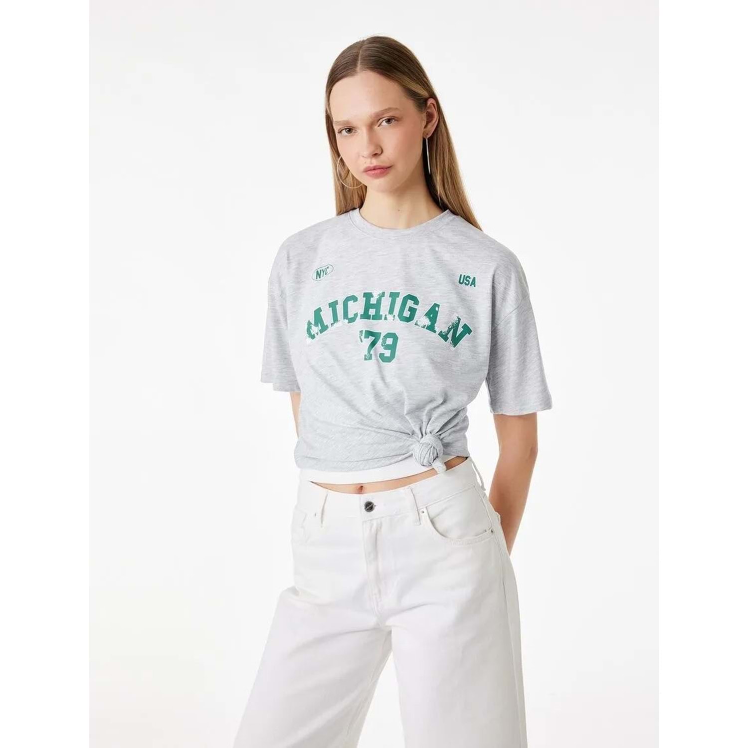 Rahat Kalıp Kısa Kollu Bisiklet Yaka Baskılı Tişört 6SAL10664IK - KOTON - KAR MELANJ - M