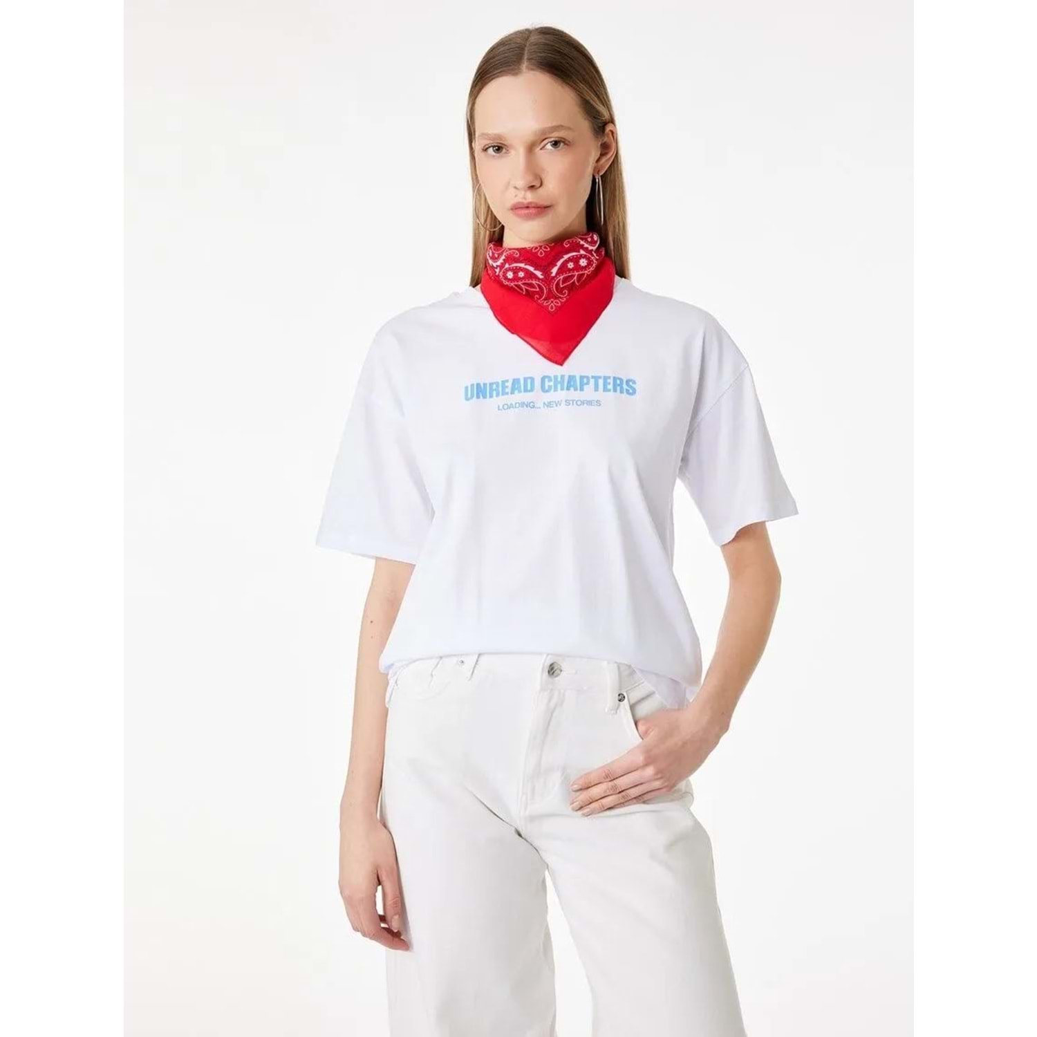 Rahat Kesim Kısa Kollu Bisiklet Yaka Baskılı Tişört 6SAL10671IK - KOTON - EKRU - M